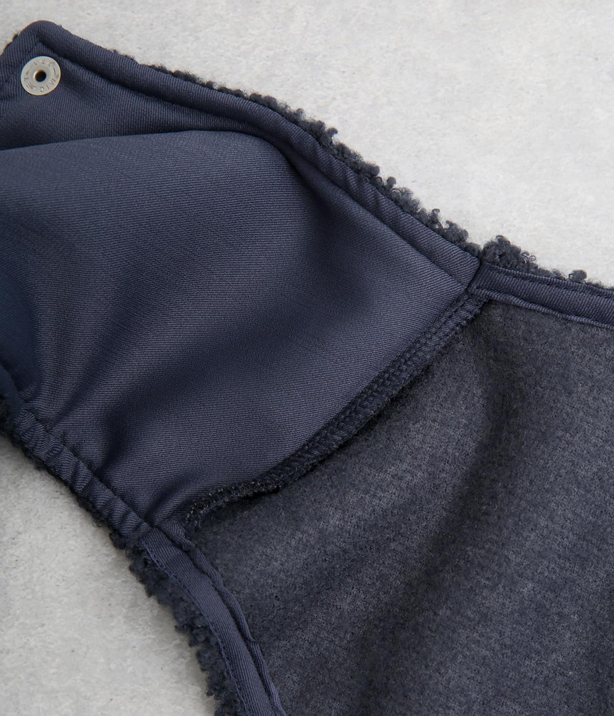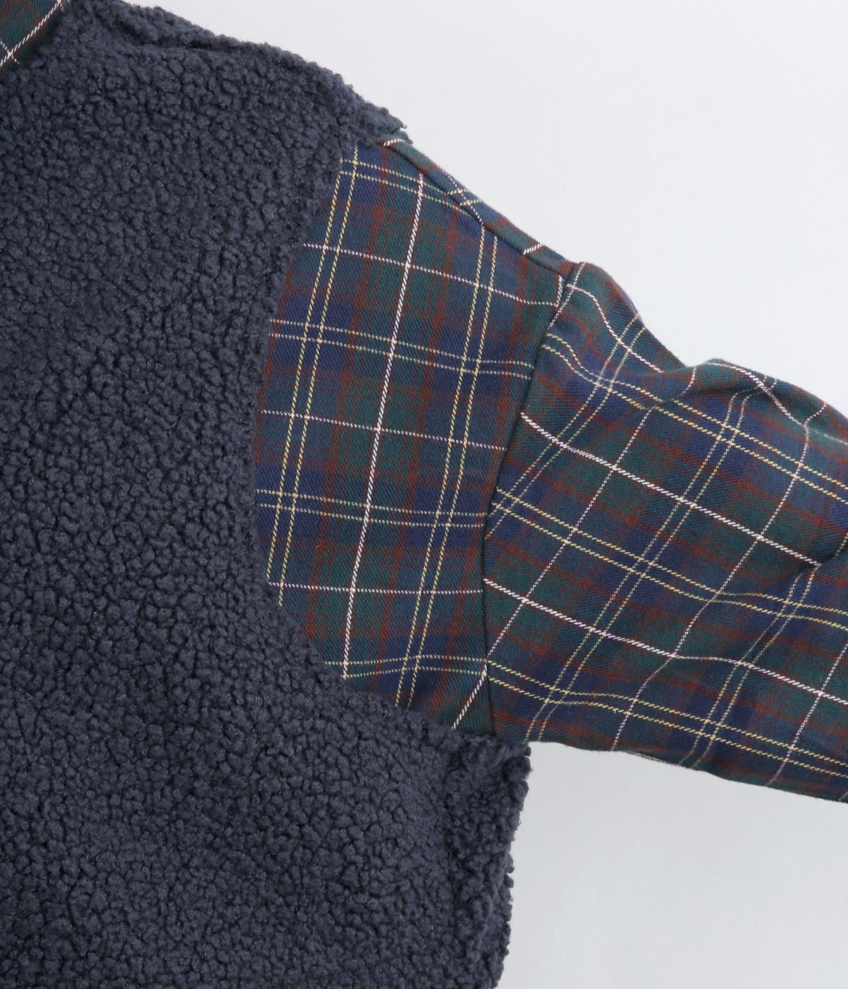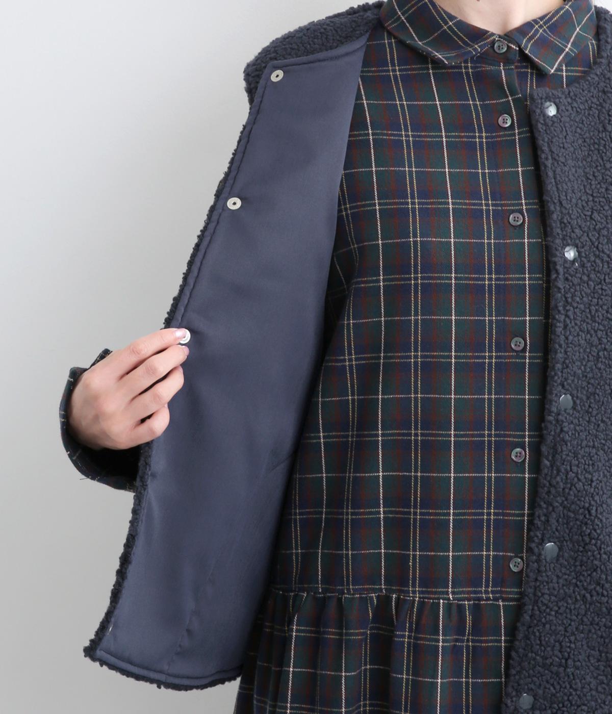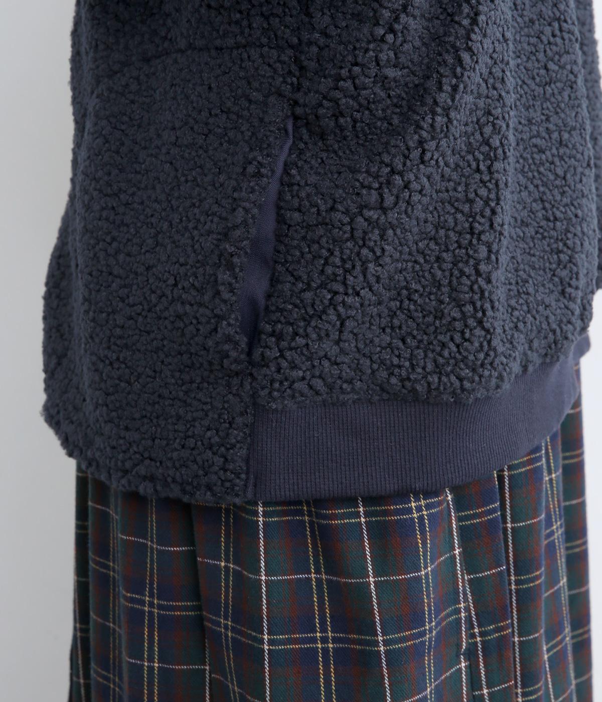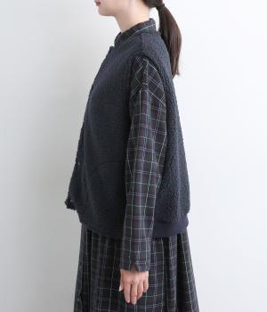 プードルのようにモコモコとした愛らしい表面感が特徴のボア素材です。軽くてやわらかく空気をたっぷりと含んだ生地が、あたたかで快適な着心地を叶えてくれます。背中裏面は起毛がかっており、前身頃裏はさらりとした裏地つきです。