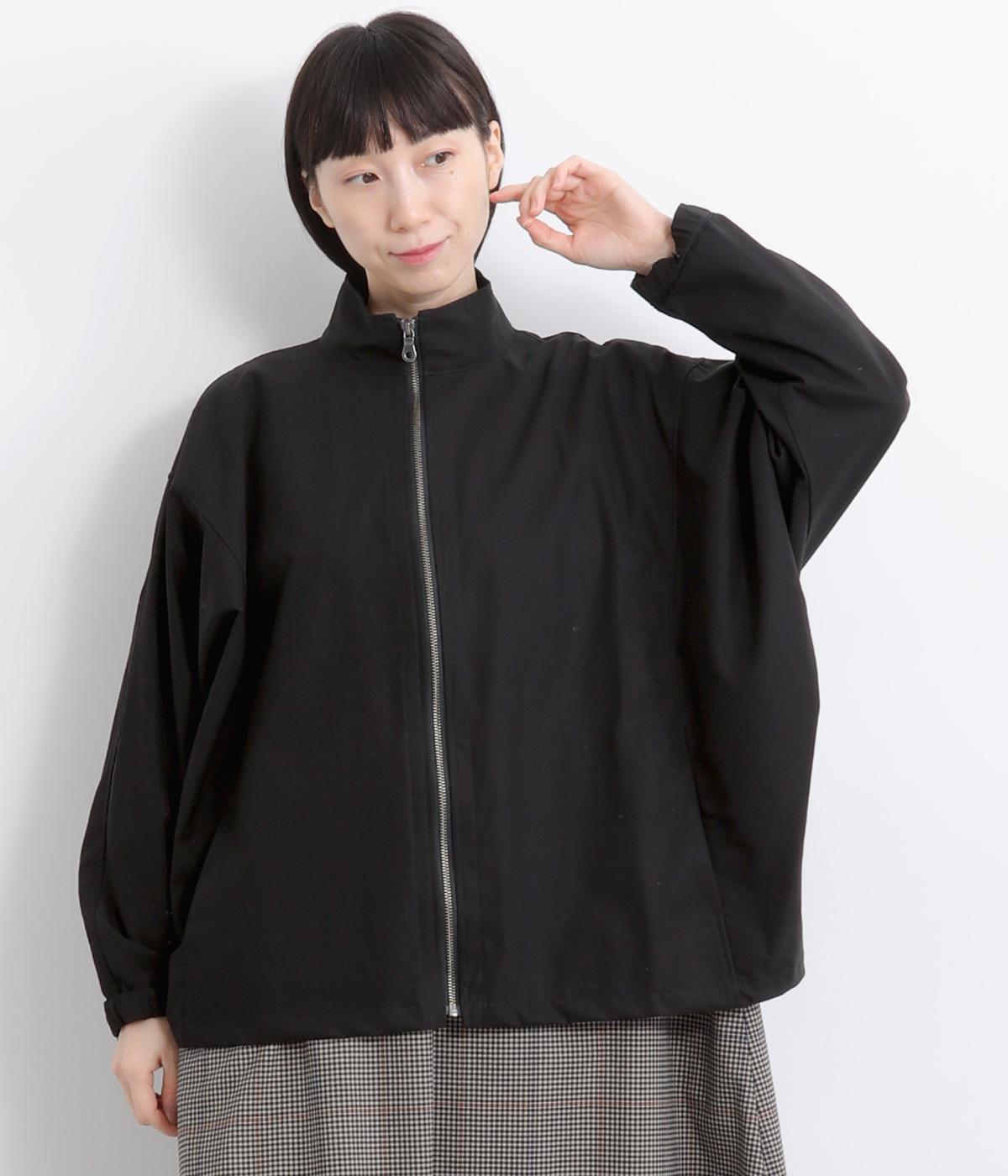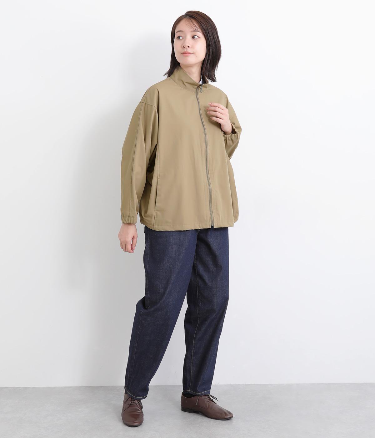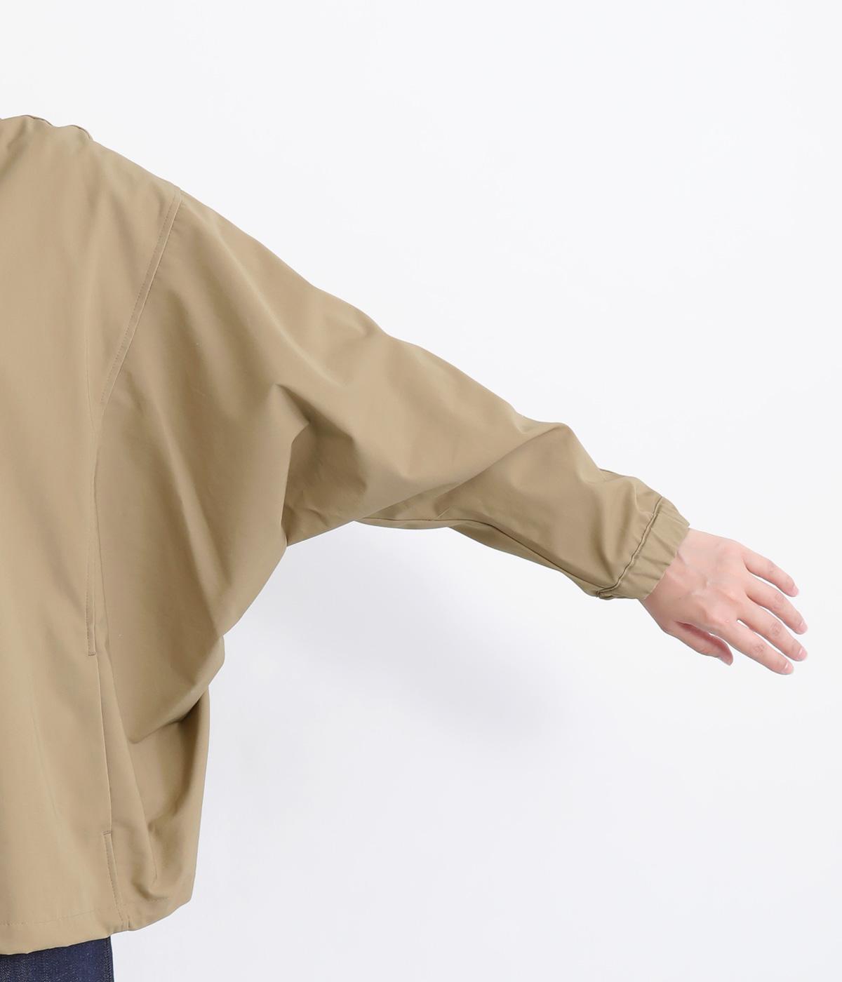 軽量でラフに羽織りやすいジャケットは、ドルマンスリーブの下を背中側で縫い止めたきれいめなシルエットが特徴。袖口はゆるくゴムを入れているのですきま風防止になり、たくし上げのアレンジもおすすめ。ハイネックもクールな印象です。