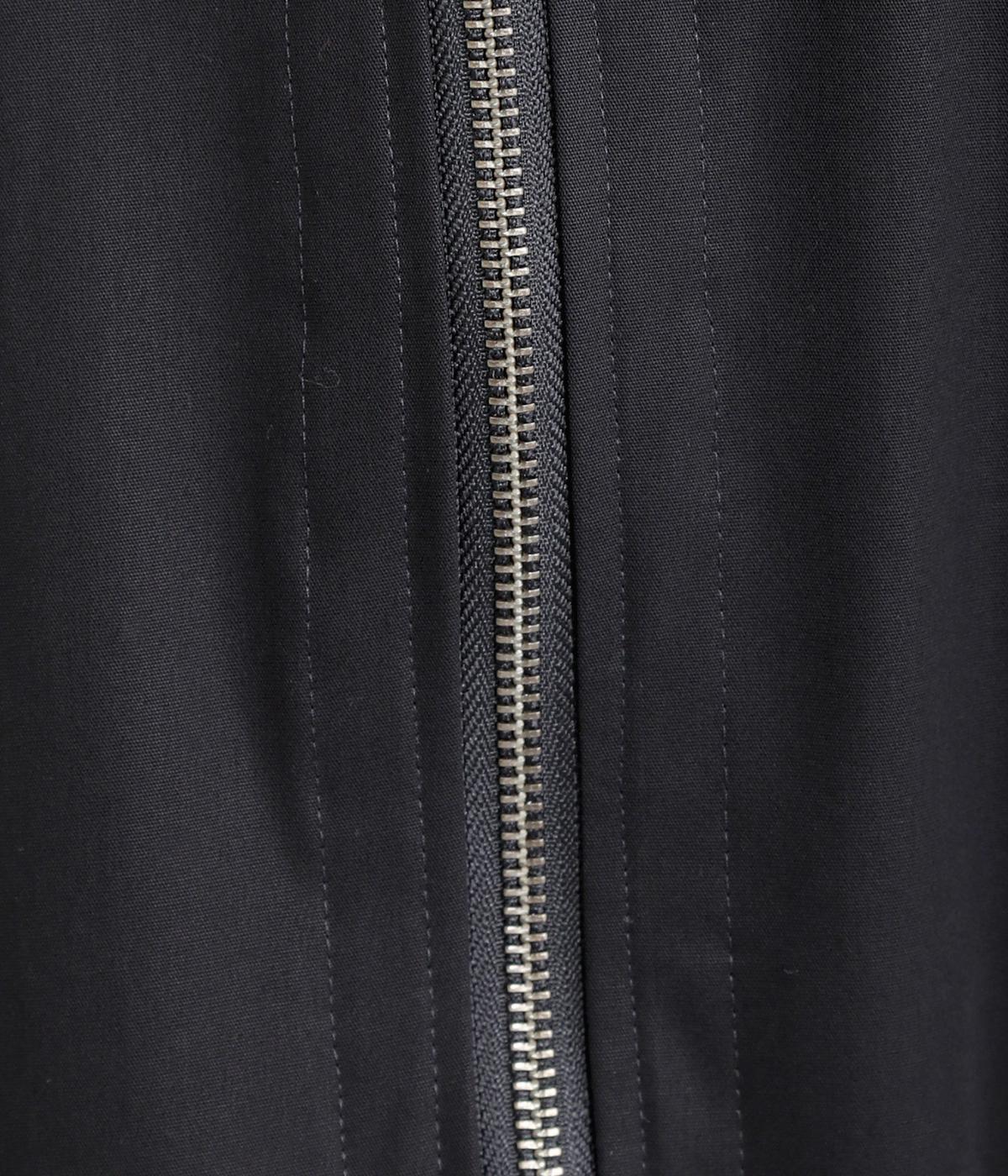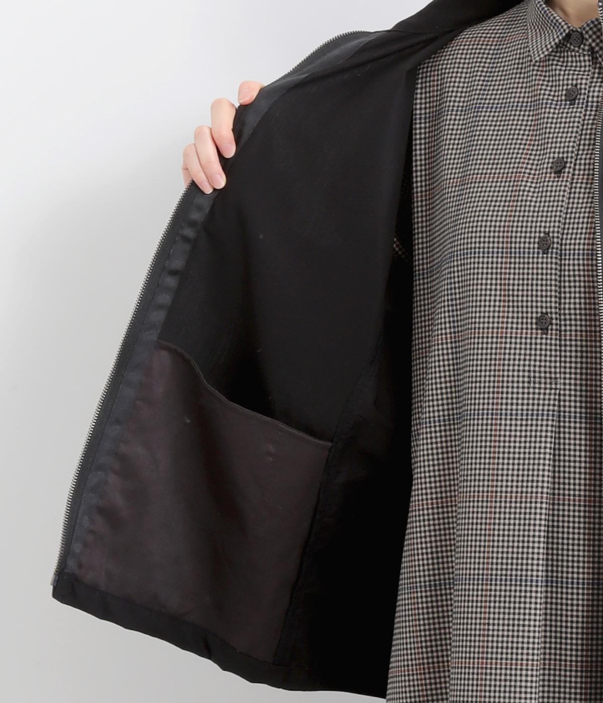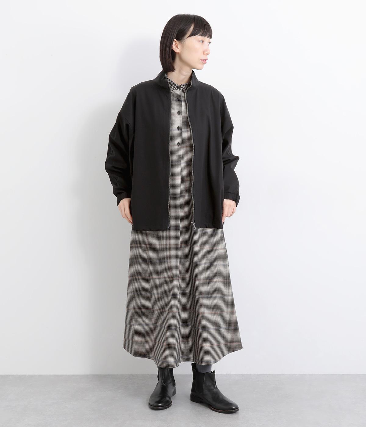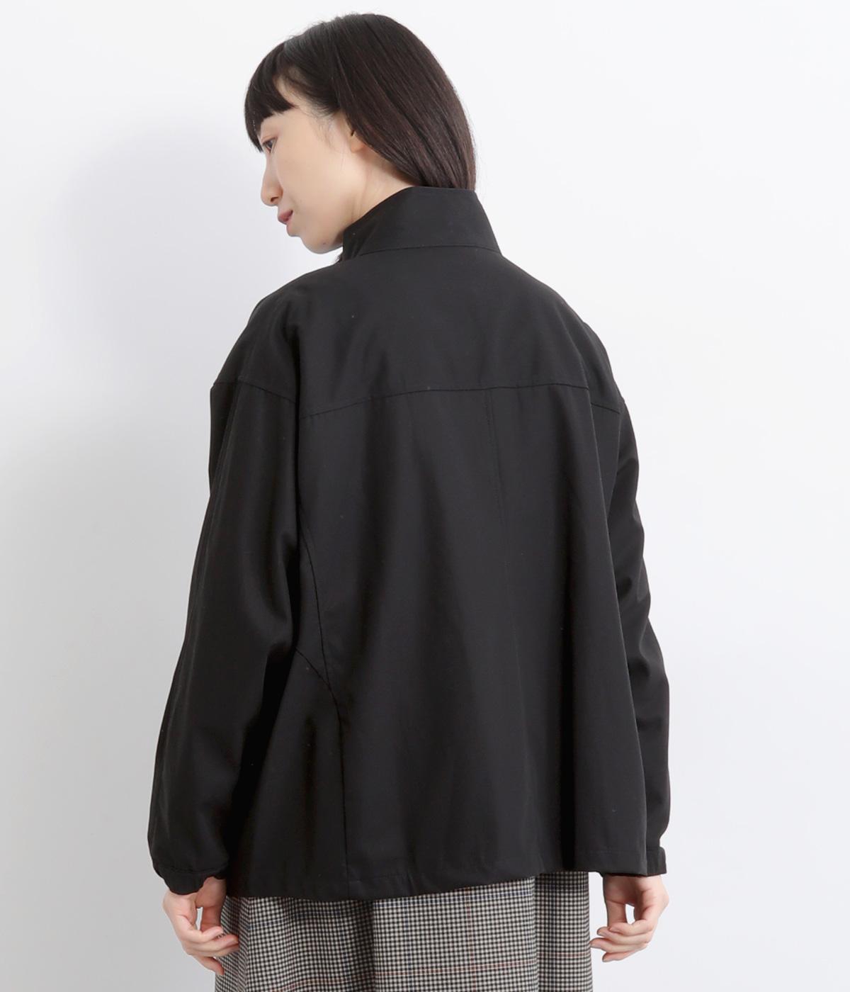 軽量でラフに羽織りやすいジャケットは、ドルマンスリーブの下を背中側で縫い止めたきれいめなシルエットが特徴。袖口はゆるくゴムを入れているのですきま風防止になり、たくし上げのアレンジもおすすめ。ハイネックもクールな印象です。