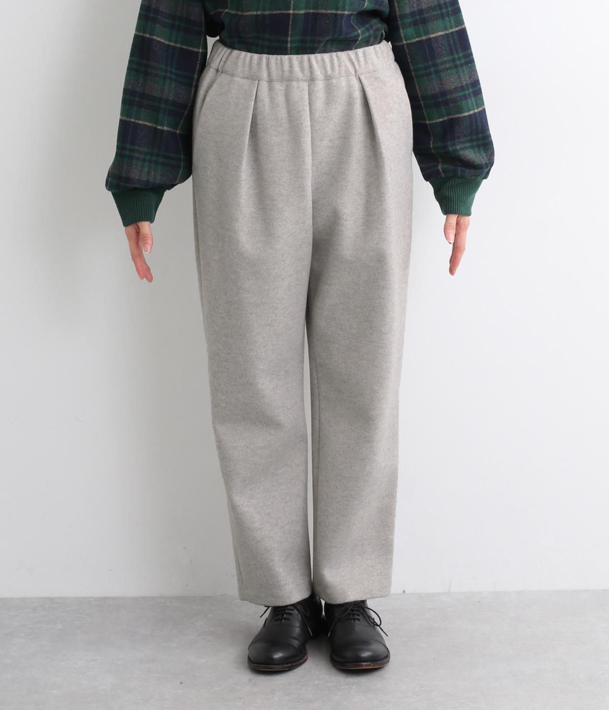 腰まわりにゆとりを持たせつつ、すっきり見えを叶えるテーパードシルエット。ウエストは内ひもを備えた総ゴムでフィット感も抜群です。きれいめなムードの生地を活かし、シンプルに仕立てているので幅広いシーンで活躍します。
