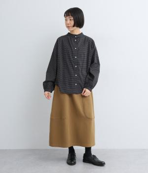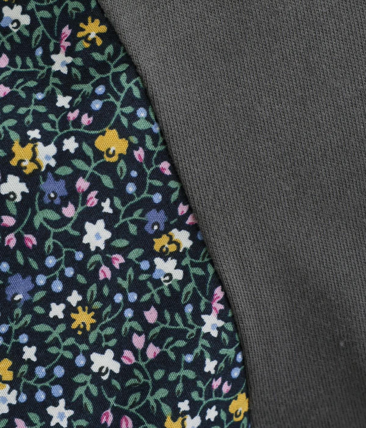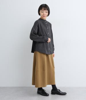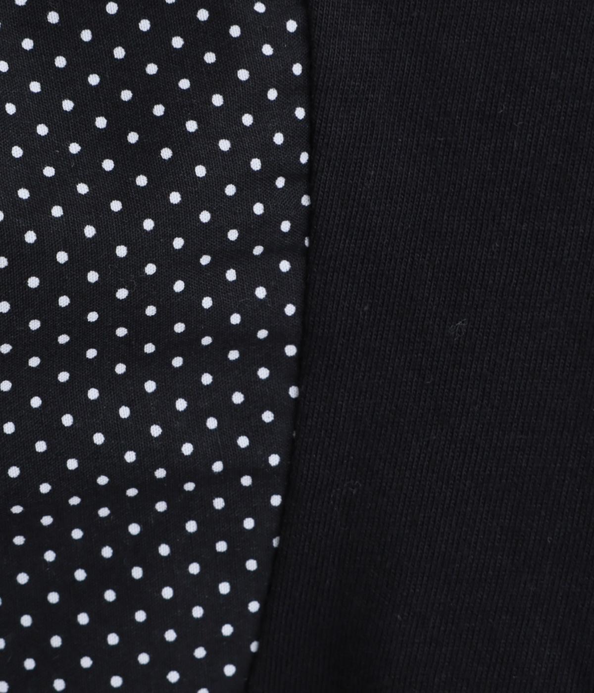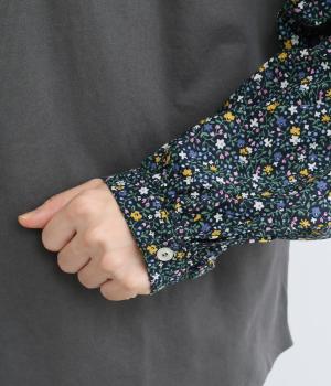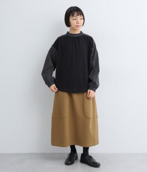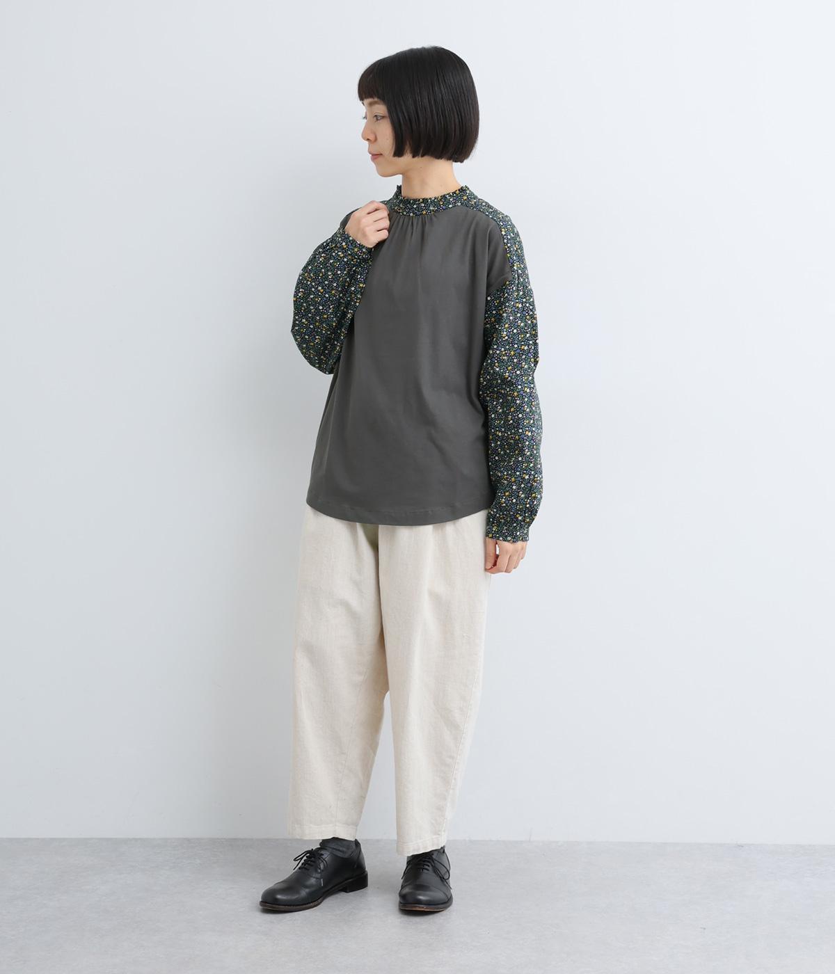 さらりとしたややハリのあるコットンの布帛生地に、同じくコットンを使用したやわらかな心地よい肌触りのカットソー生地を組み合わせました。