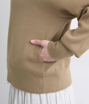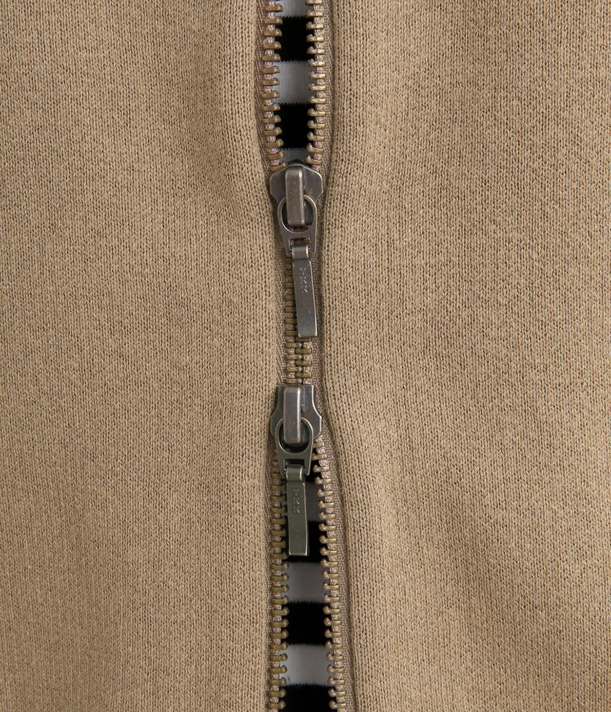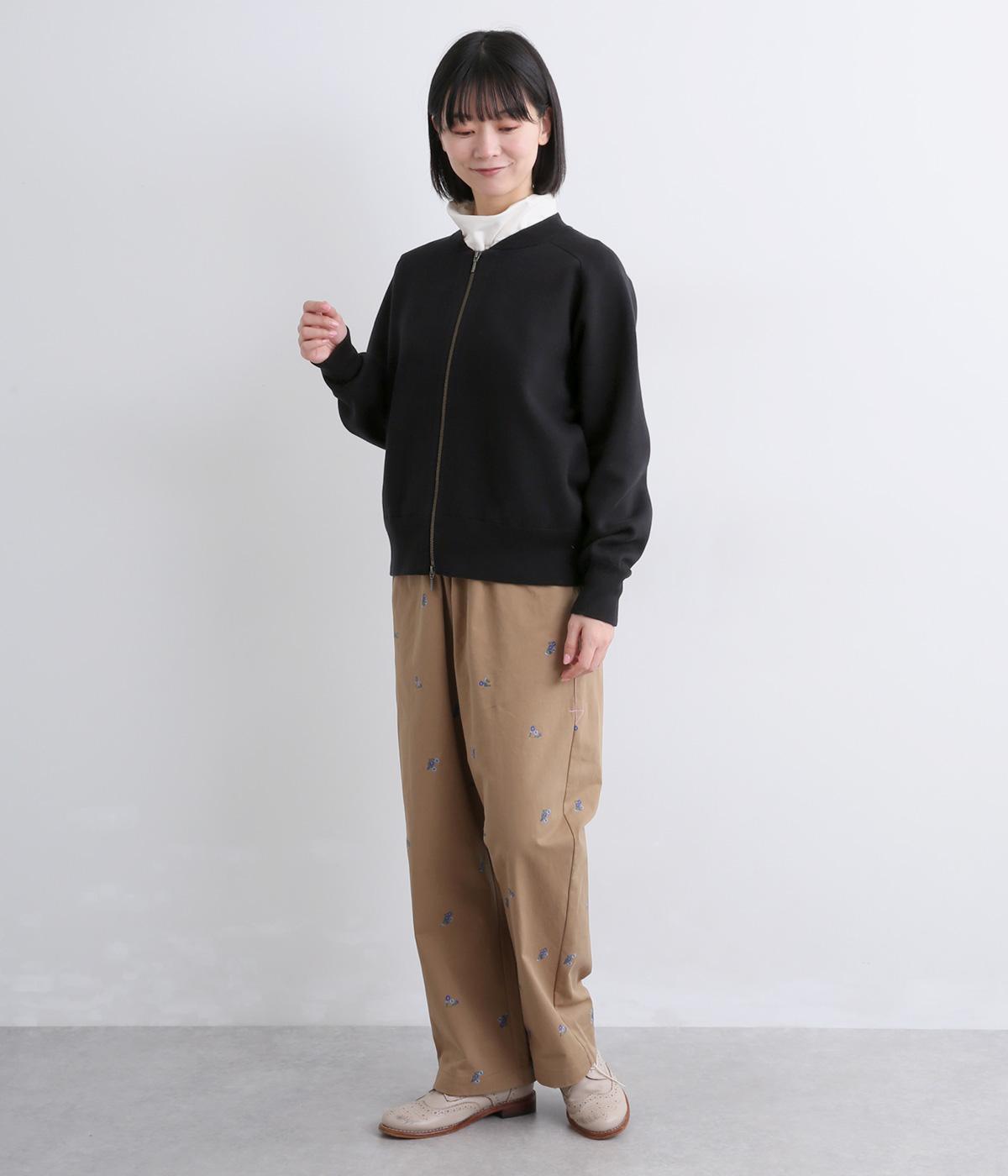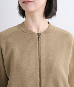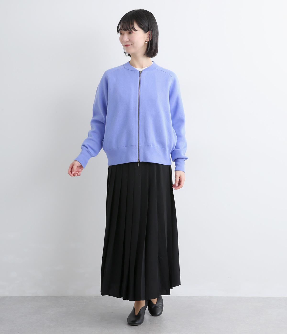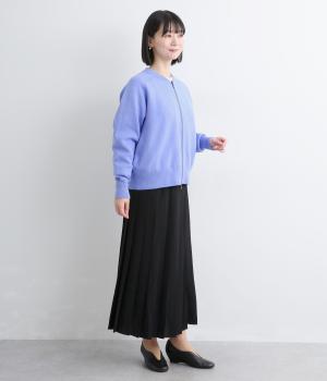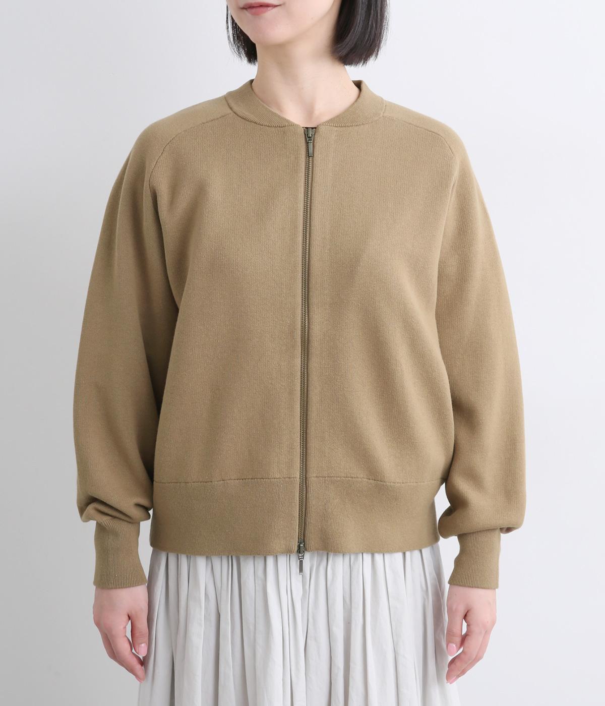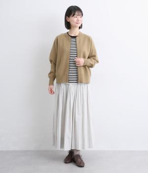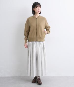 カーディガンとしてはもちろん、ブルゾン感覚でも着用できる一枚です。ダブルファスナー仕様で、開き具合によってさまざまなバランスを楽しめるのもポイント。フェミニンなスタイリングに合わせるとほどよい抜け感が生まれ、幅広く着まわせます。