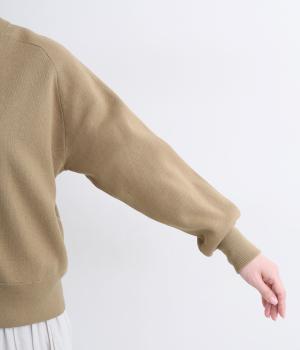 コットンとナイロンのミックス生地でふっくらとほどよい立体感に仕立てました。伸縮性があり心地いい着用感です。お家で手洗いでき、デイリーに取り入れやすい素材感です。
