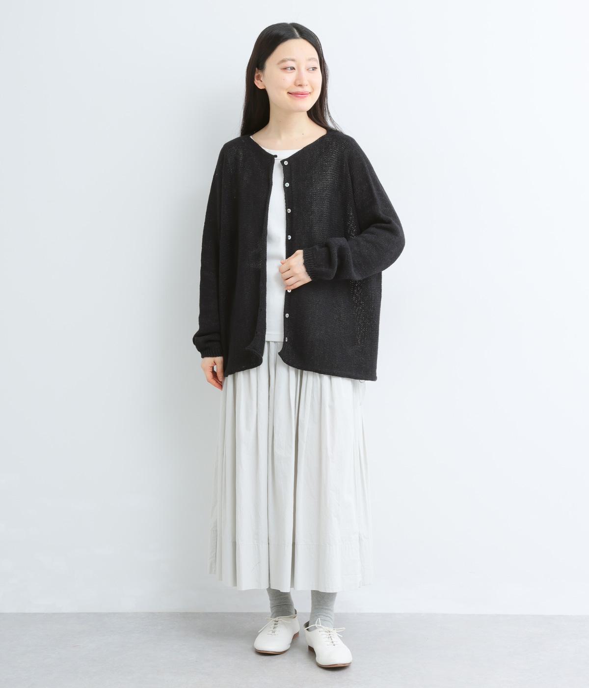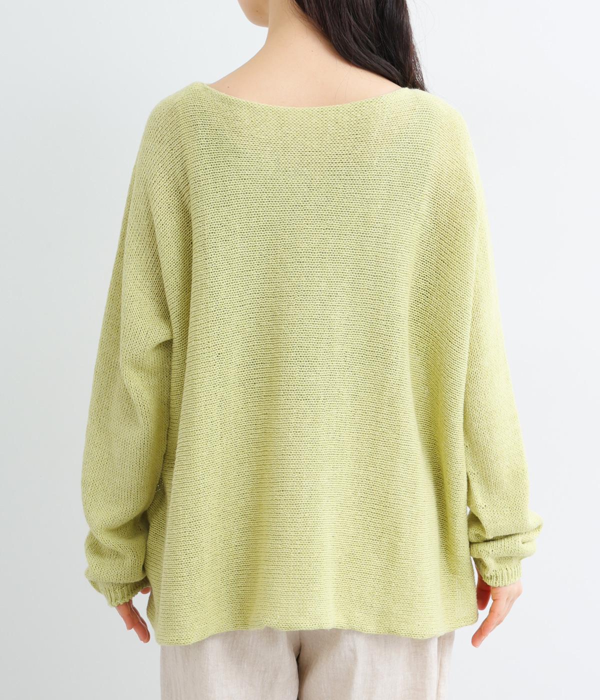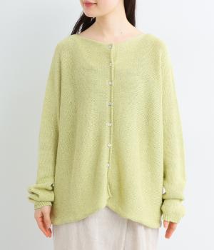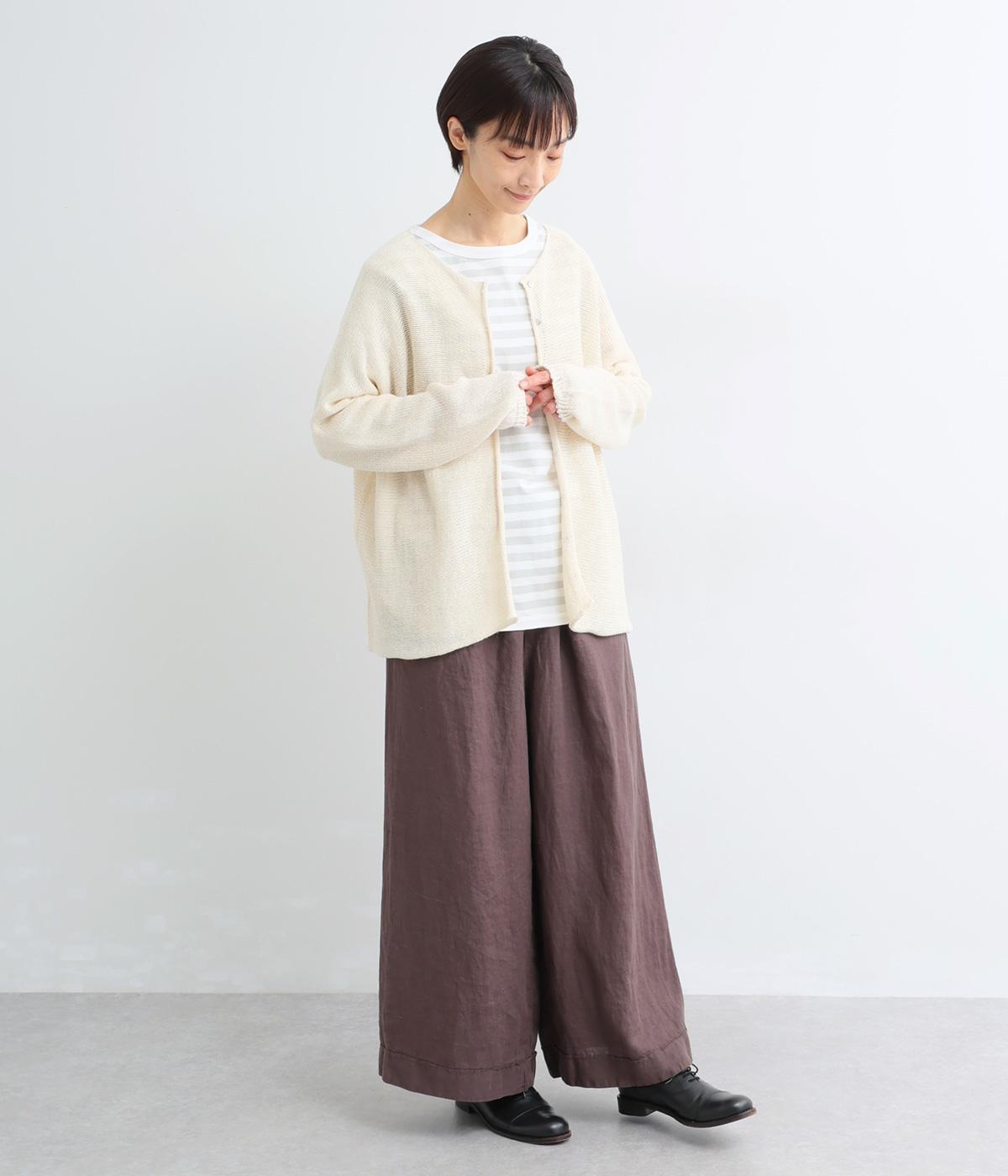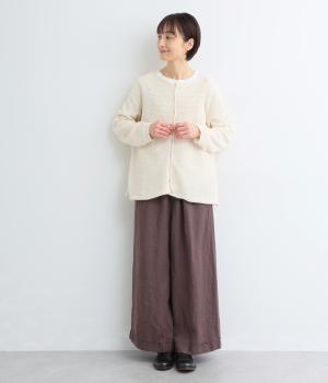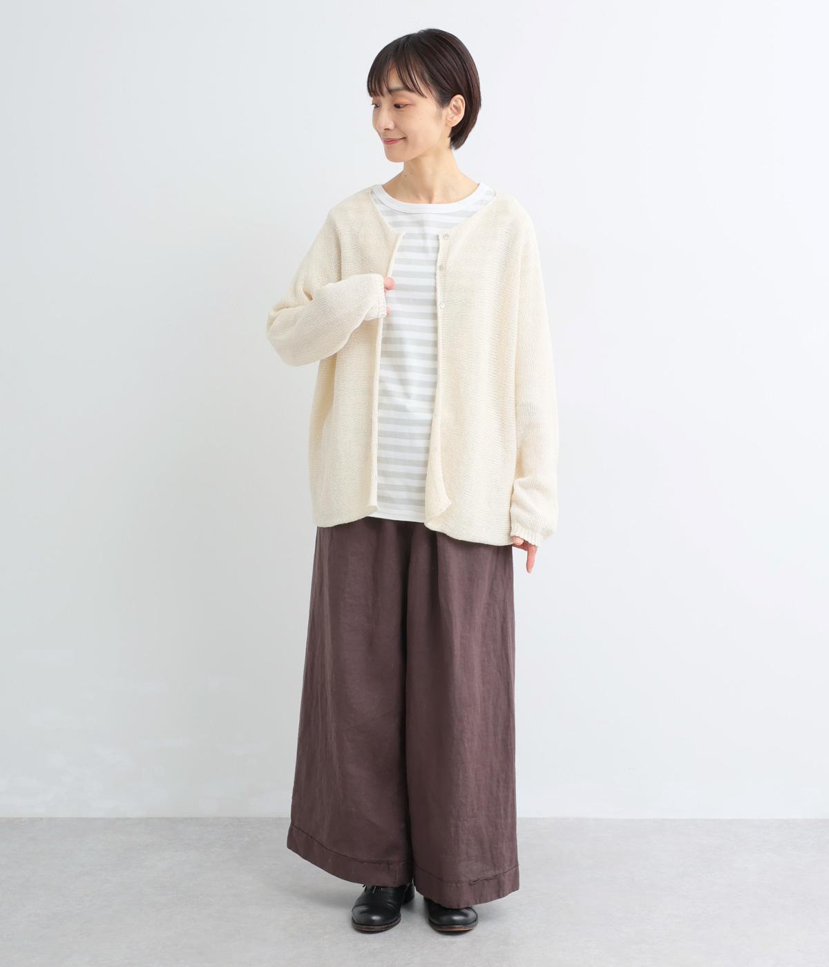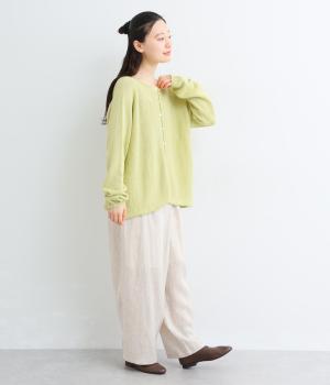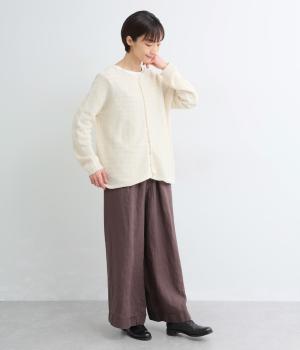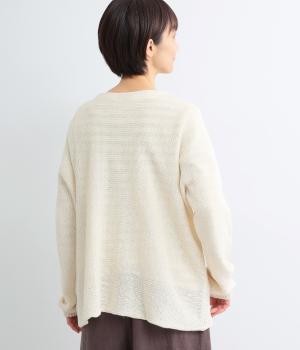 ヘンプのドライな質感がナチュラルな雰囲気を運びます。ローゲージで、ざっくりと軽やか。ごわつき感の少ないしなやかな肌ざわりで、心地よく着られます。