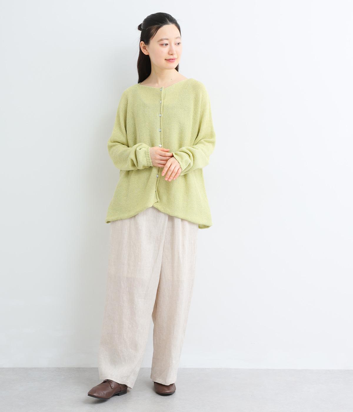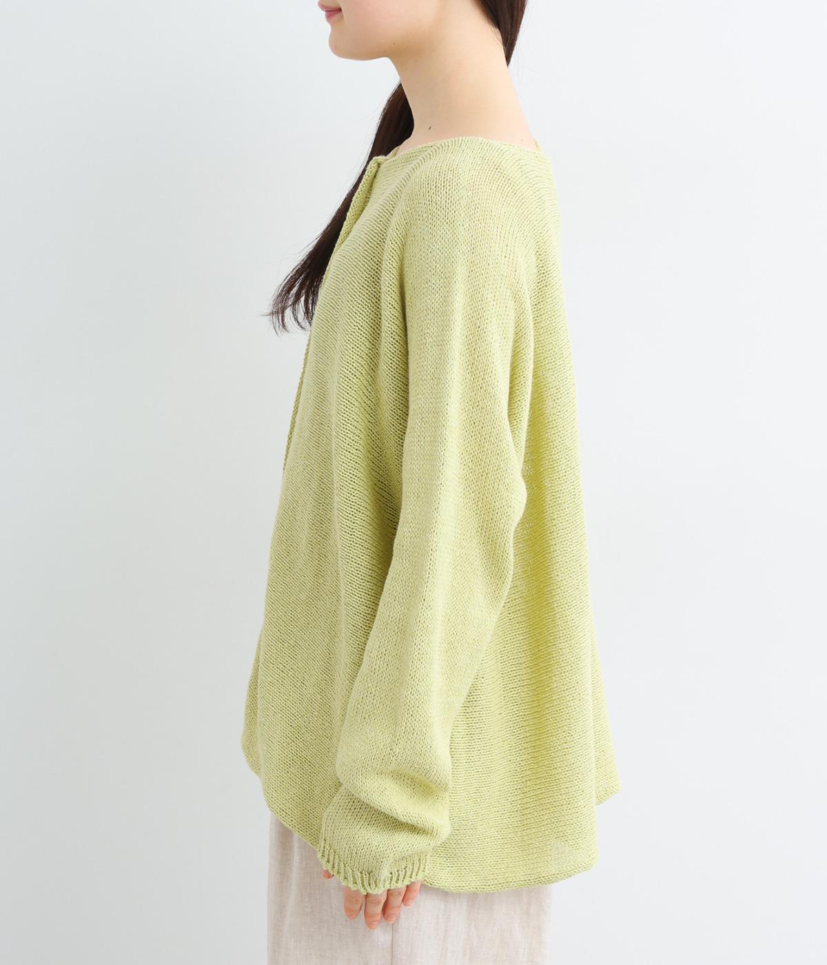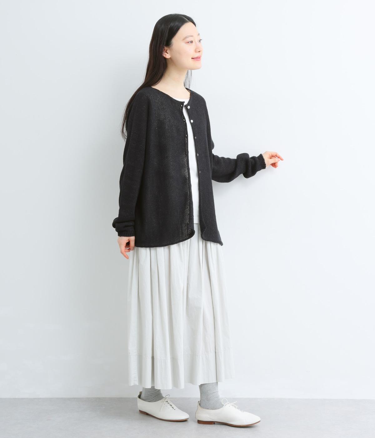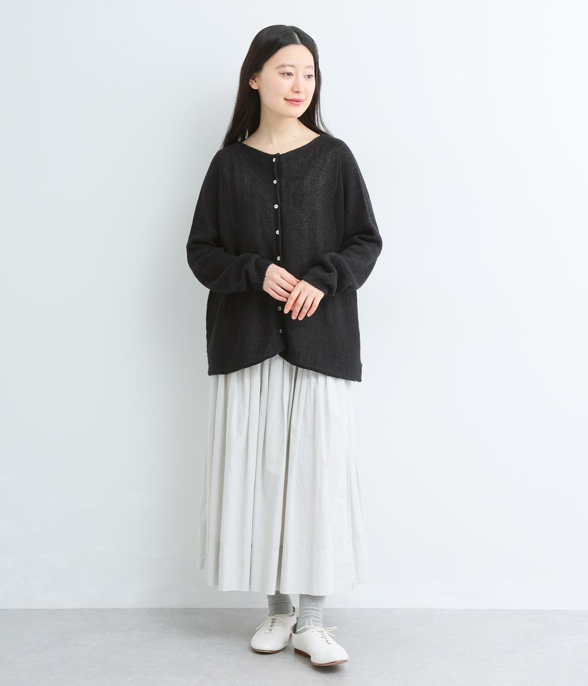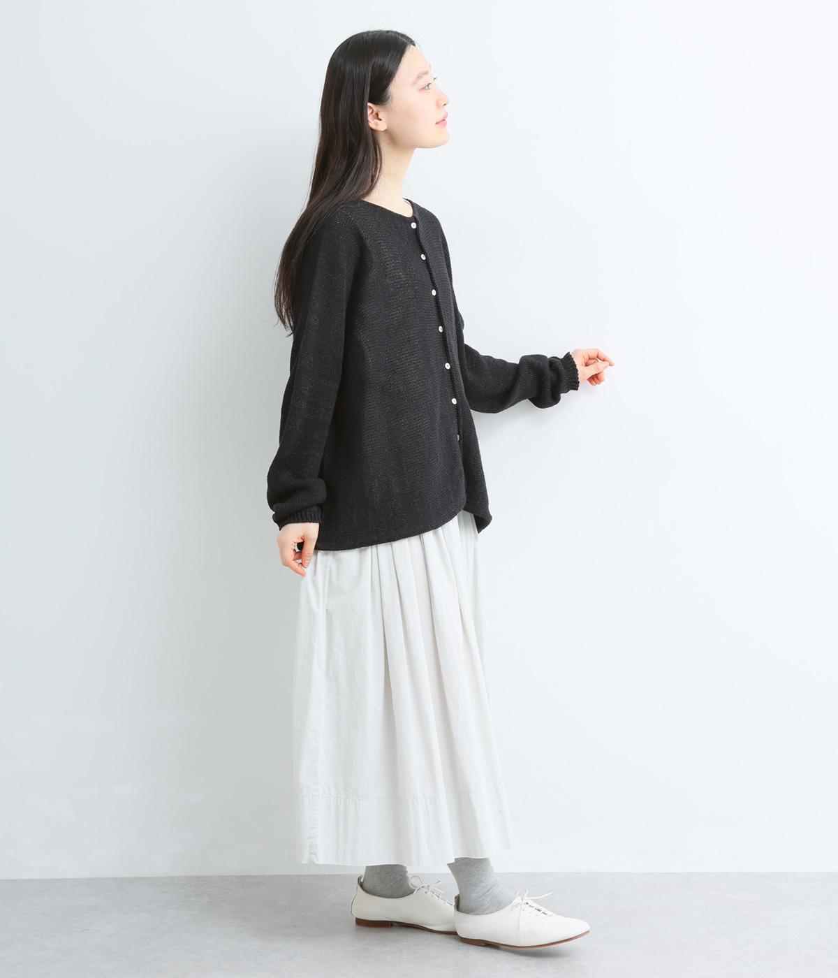 ヘンプのドライな質感がナチュラルな雰囲気を運びます。ローゲージで、ざっくりと軽やか。ごわつき感の少ないしなやかな肌ざわりで、心地よく着られます。