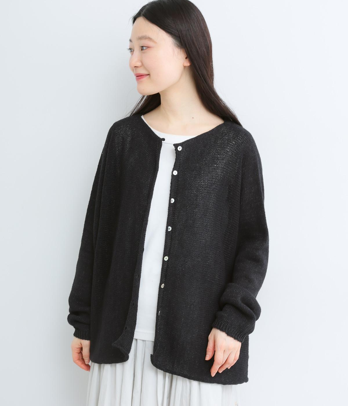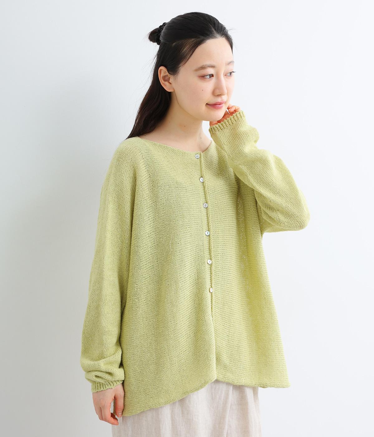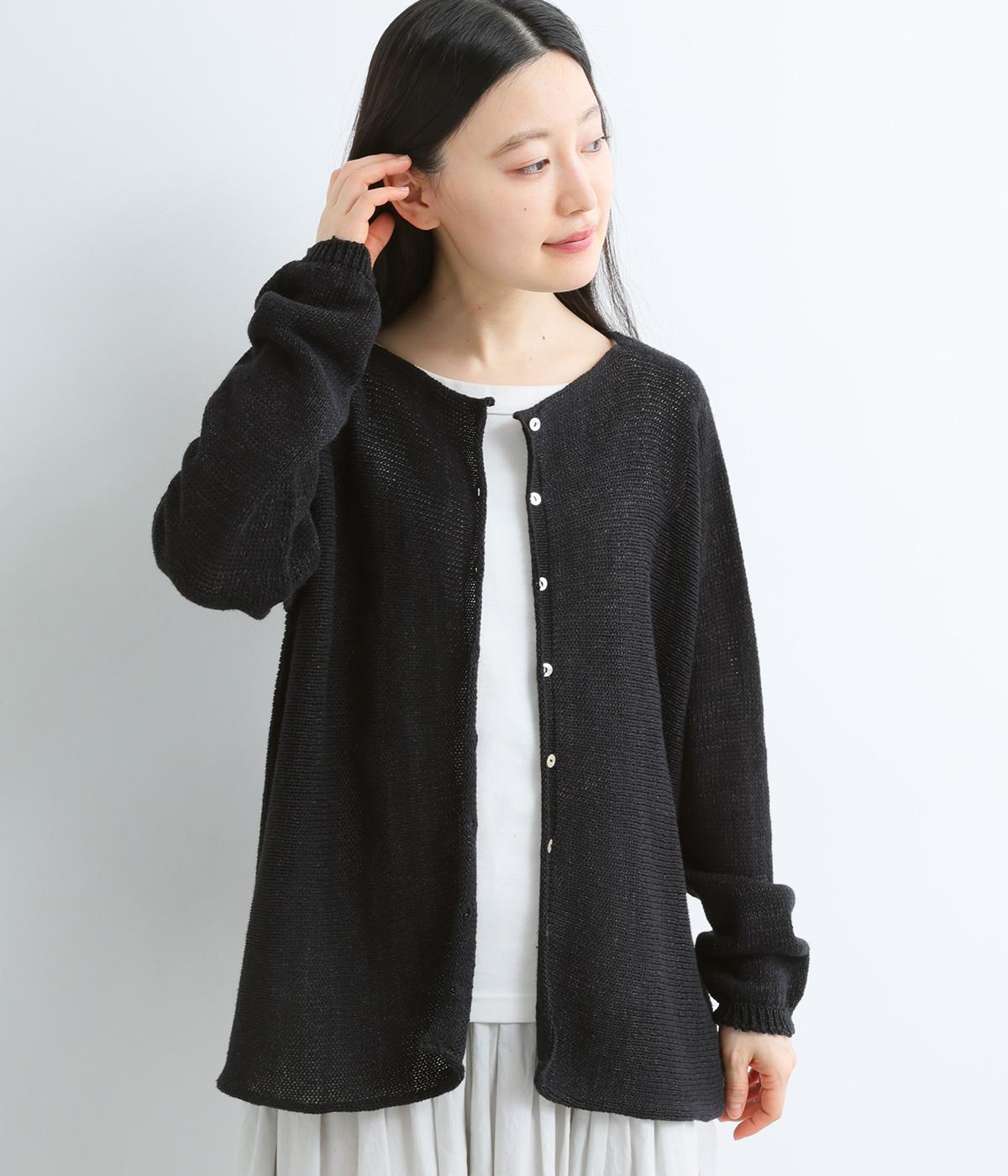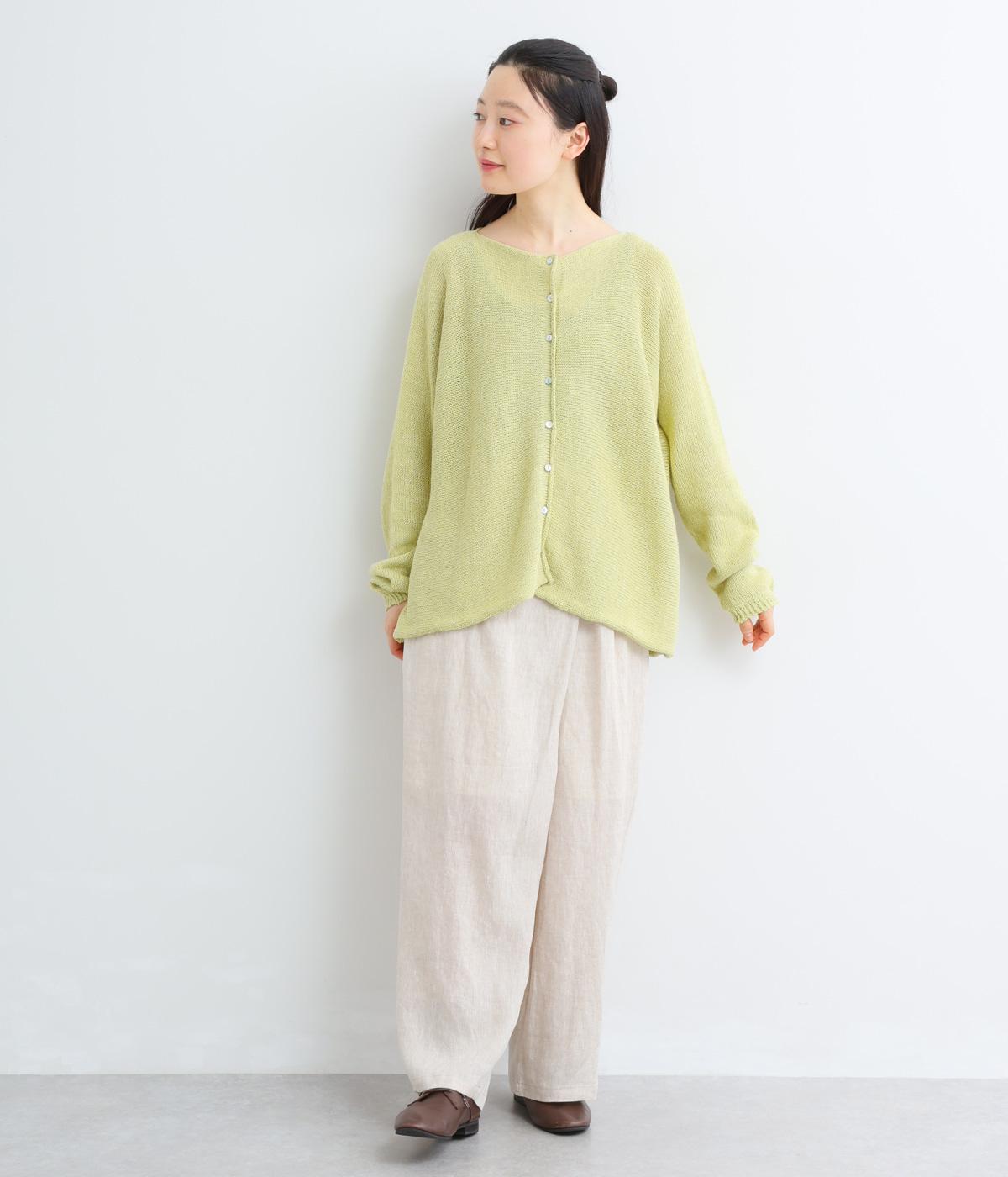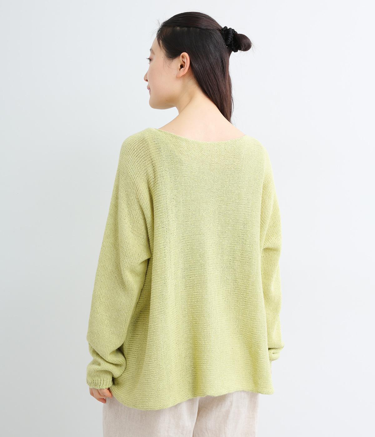 ヘンプのドライな質感がナチュラルな雰囲気を運びます。ローゲージで、ざっくりと軽やか。ごわつき感の少ないしなやかな肌ざわりで、心地よく着られます。