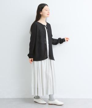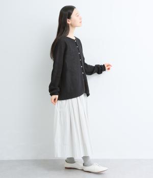 表情のある素材で、軽やかに羽織れる一枚です。やや長めの袖丈の、くしゅっとしたシルエットがかわいらしい雰囲気を添えます。ほどよい透け感でスタイリングに抜け感をプラス。通気性に優れ、ロングシーズン快適に着用できます。