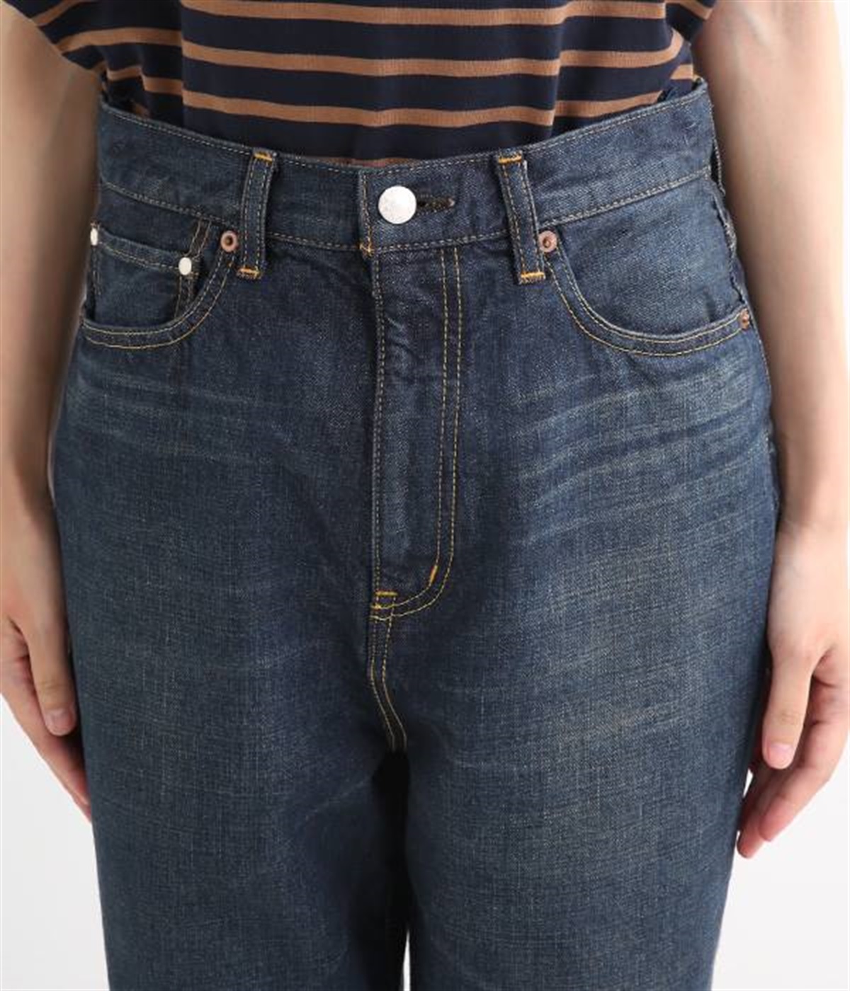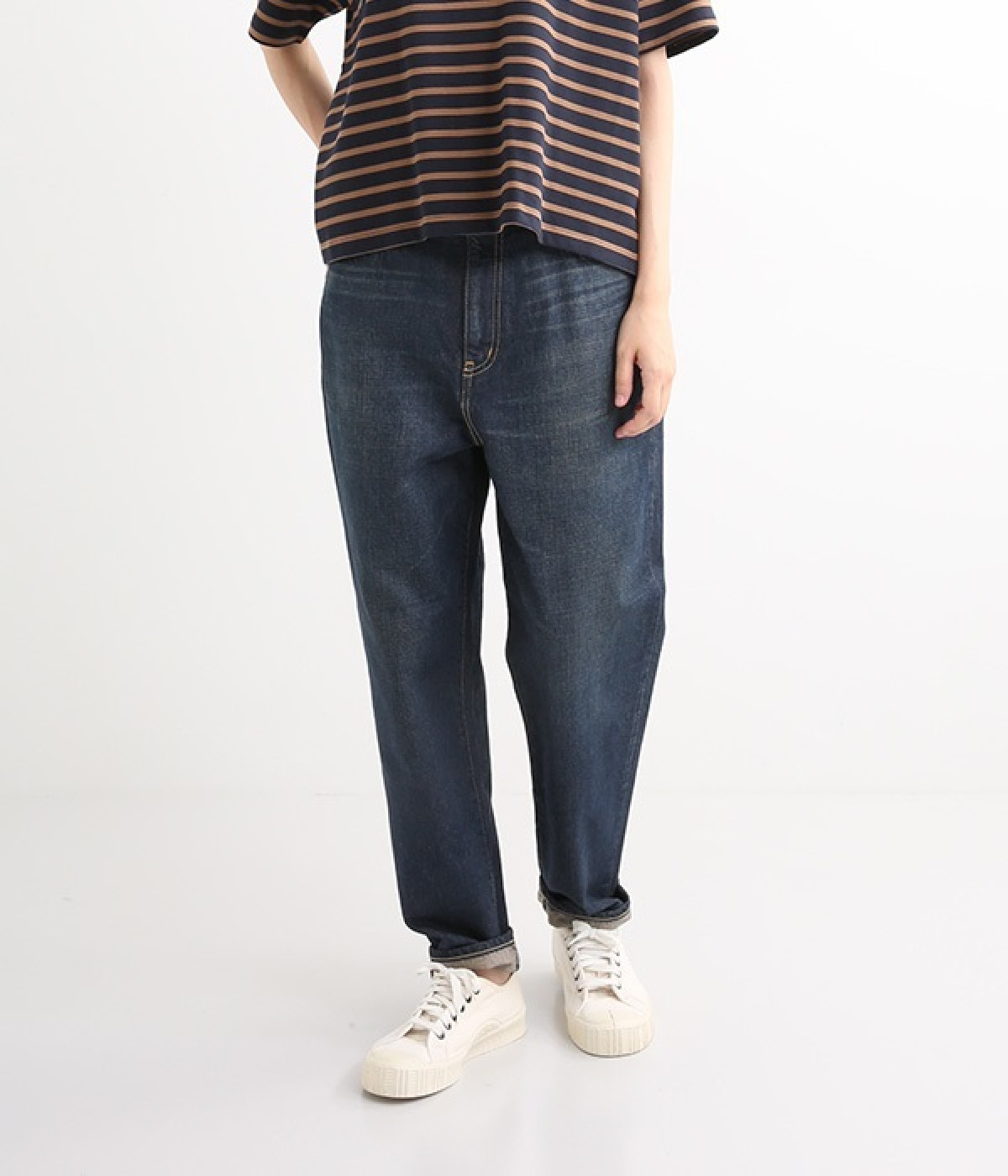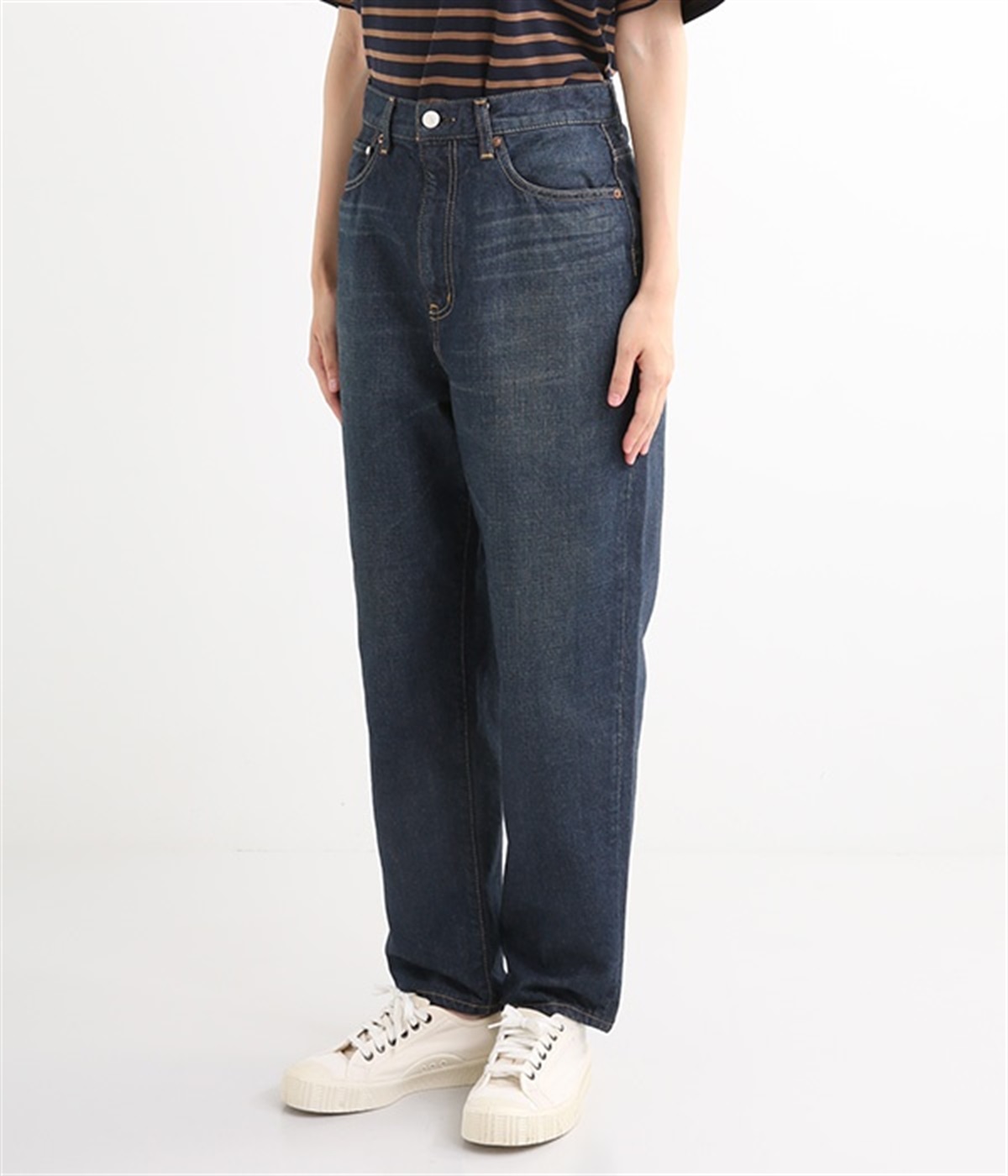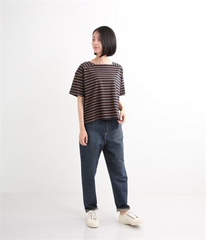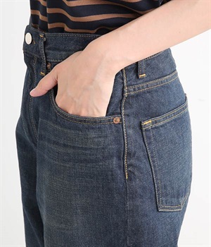 裾幅を細くしたテーパードシルエットのパンツです。ハイライズながら締め付け感がなく、すっきりとしたシルエットがポイント。ウエスト内側には調節可能なゴムを配し、ハイウエスト特有のわずらわしさを軽減しました。「フレンドシップ・デニム」とは製品の売り上げの一部を生産地である西アフリカ・ブルキナファソとコットン産地と縫製・加工の東北被災に寄付するとで社会貢献する素敵な仕組みです。