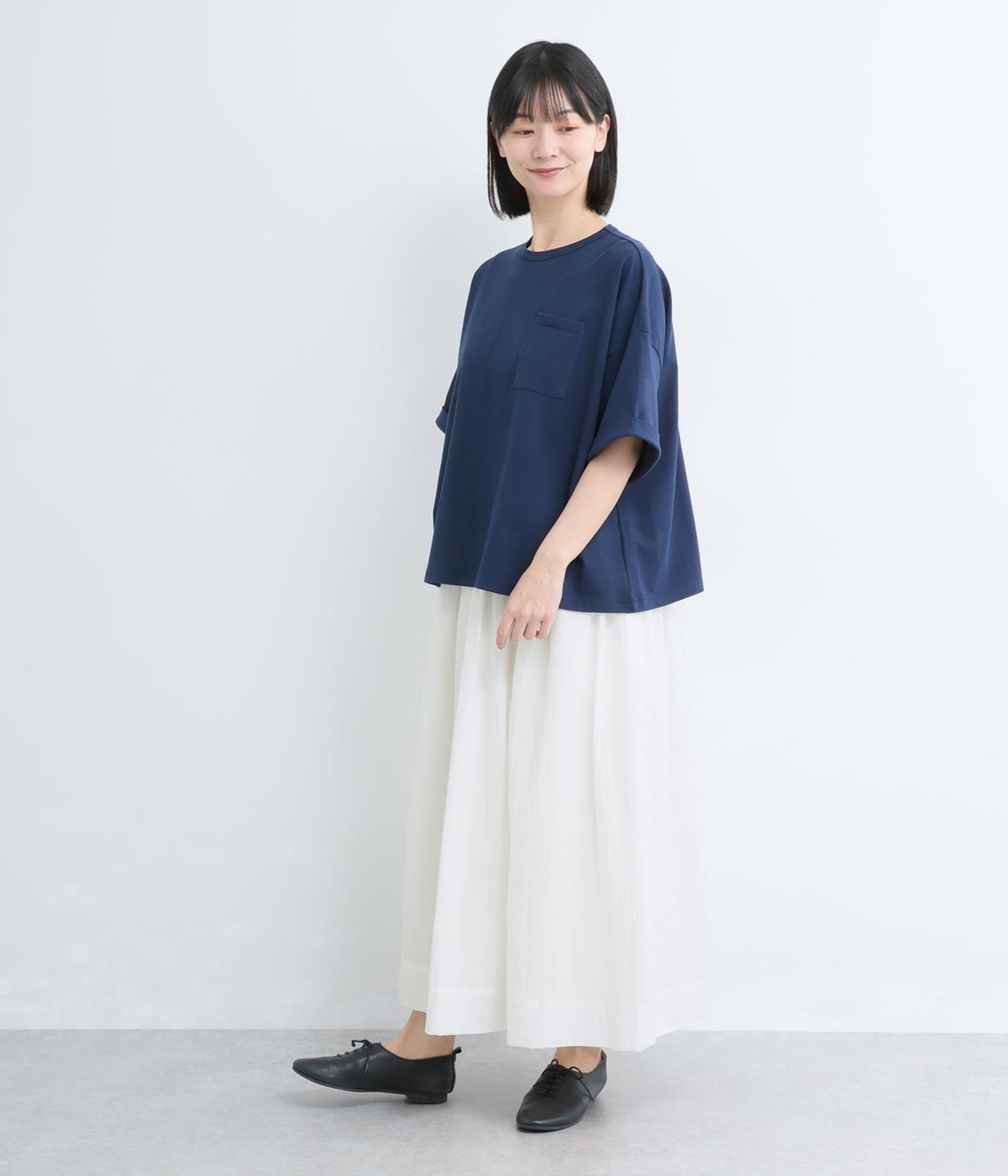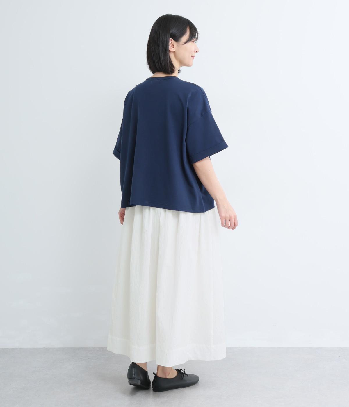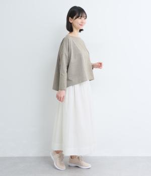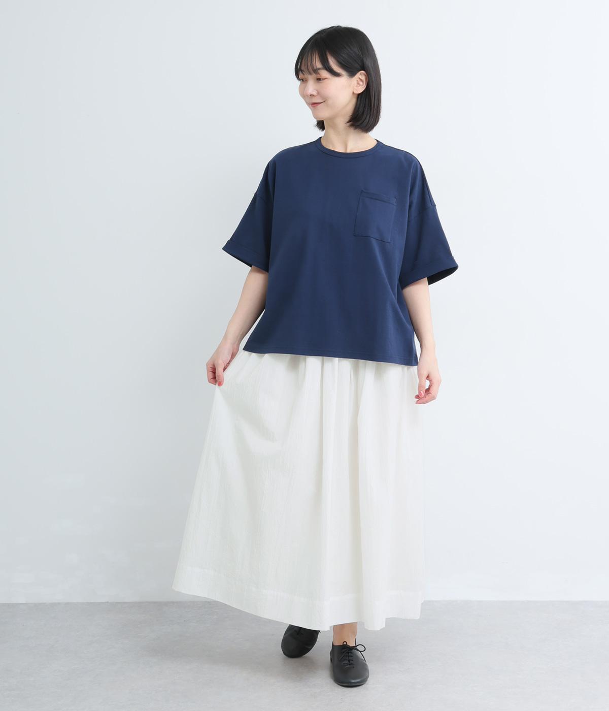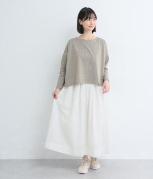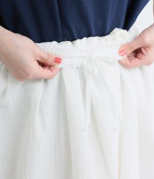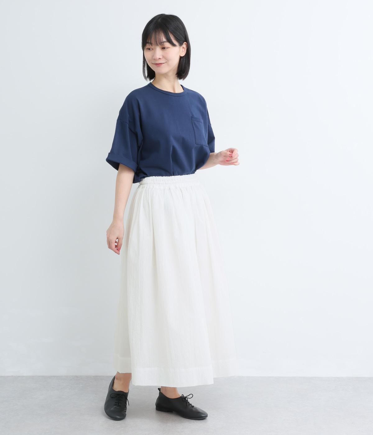 素材感を活かしてシンプルに仕立てたギャザースカート。贅沢にたっぷり生地を使い、軽やかながらも着映えするボリューム感を表現。おなかにやさしくフィットする総ゴム&内紐入りで、トップスインのきれいめスタイルもおすすめです。