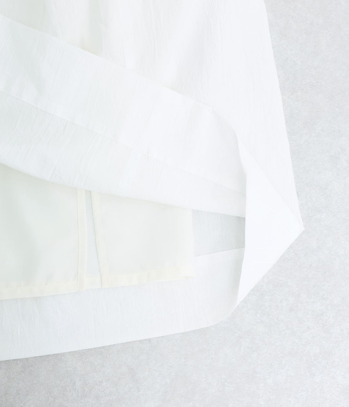 まるで手で揉みこんだようなくしゅくしゅとしたナチュラルなシワ感が特徴のコットンローンを採用。ソフトな風合いに軽やかな質感が魅力で、すべりのいい裏地つきで透け感をおさえました。