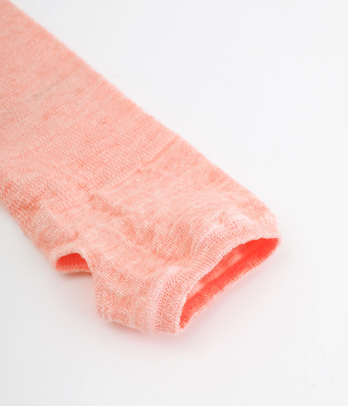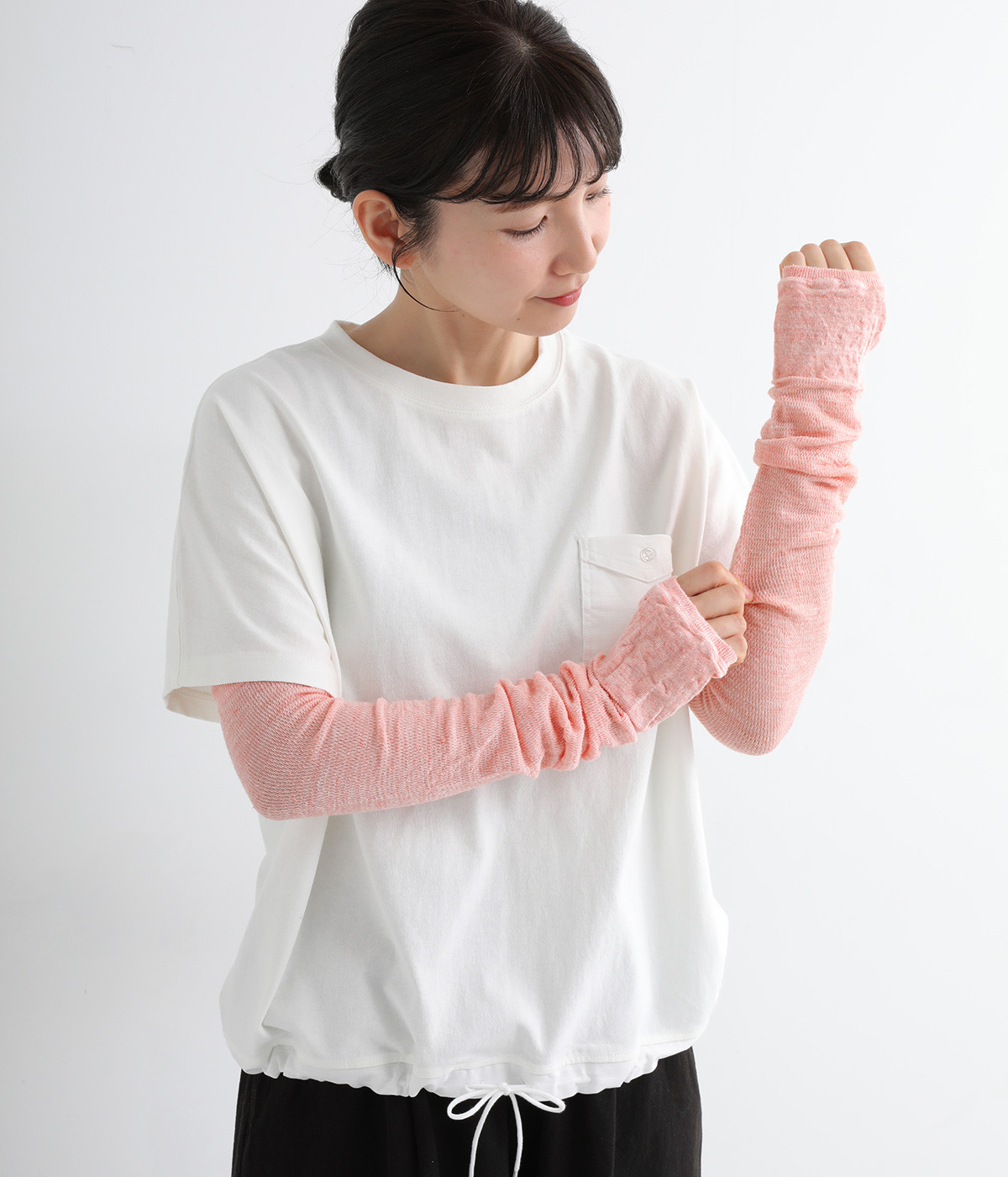 シャリ感と通気性が高いリネンを使用。手を通した瞬間からシャリシャリと心地よく涼し気。長時間つけても暑苦しくないようメッシュ編みにしているので、少し腕を振るだけで空気が入れ替わります。