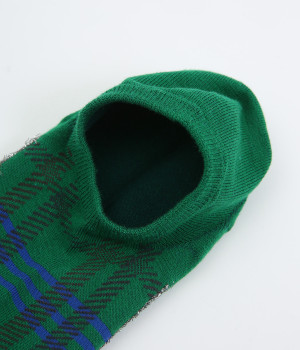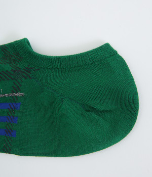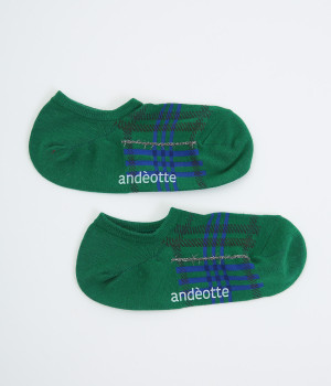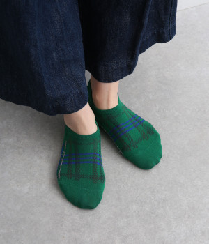 幅広いスタイルに合わせやすい、シックなチェック柄のスニーカーソックス。サイドにラメのラインをあしらい、さり気ないアクセントをプラスしました。適度な厚みでフィット感が良く、オールシーズン活躍する一足です。