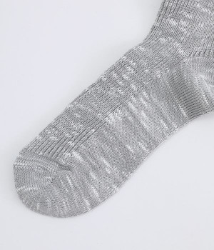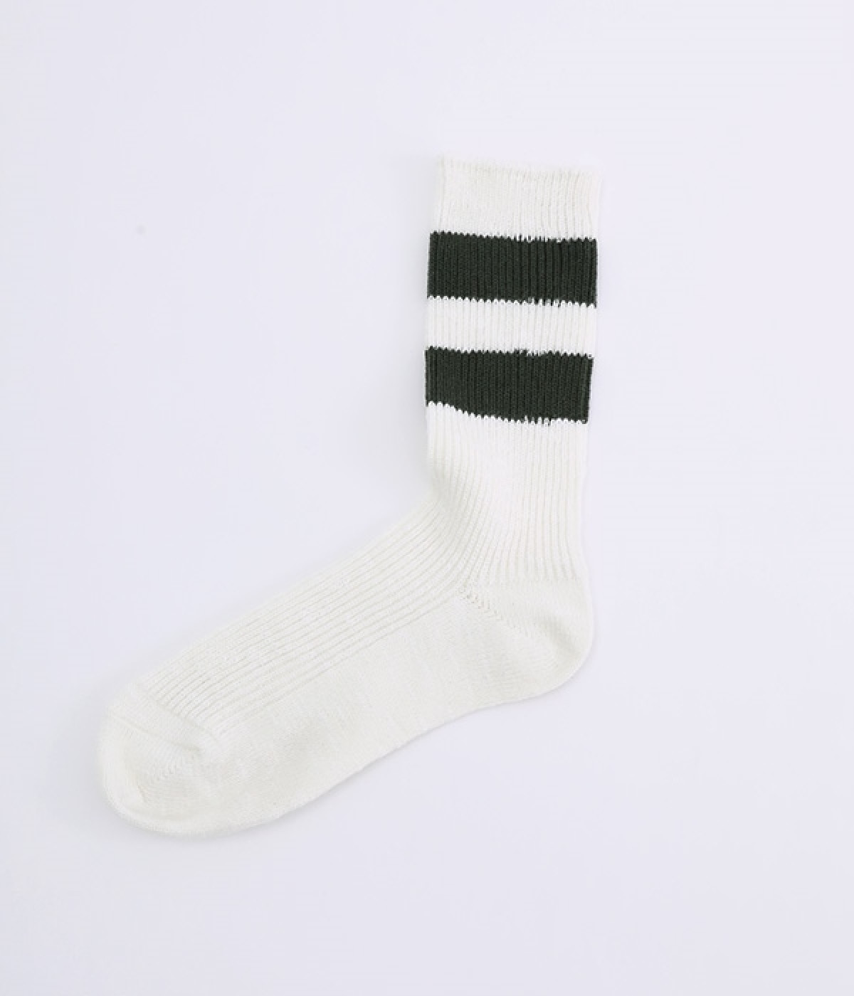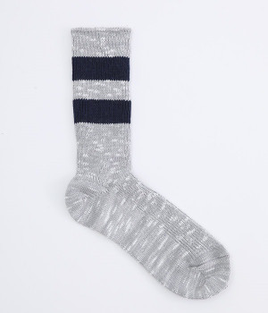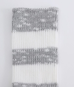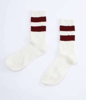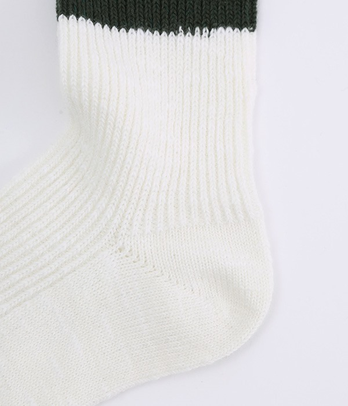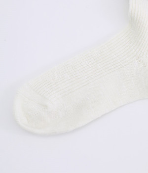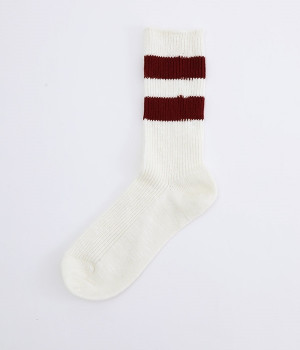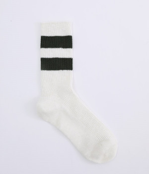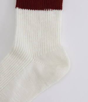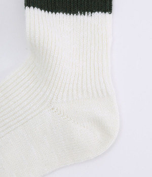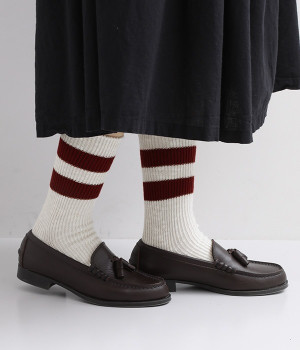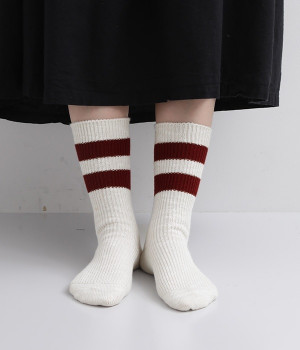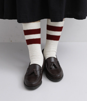 カジュアルなラインの入った使い勝手の良いソックスです。コットンウール素材を使っているため、通気性がありつつもあたたかさをキープできます。スニーカーやローファーからチラリとのぞかせることでコーディネートの差しアイテムとしても活躍。ひざ下丈のボトムからのぞかせやすいちょうど良いレングス設定に仕上げました。