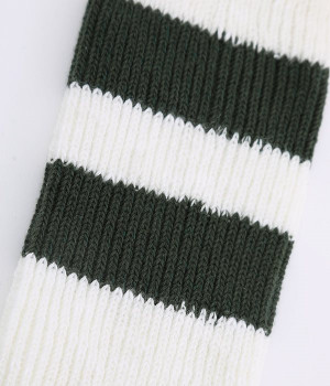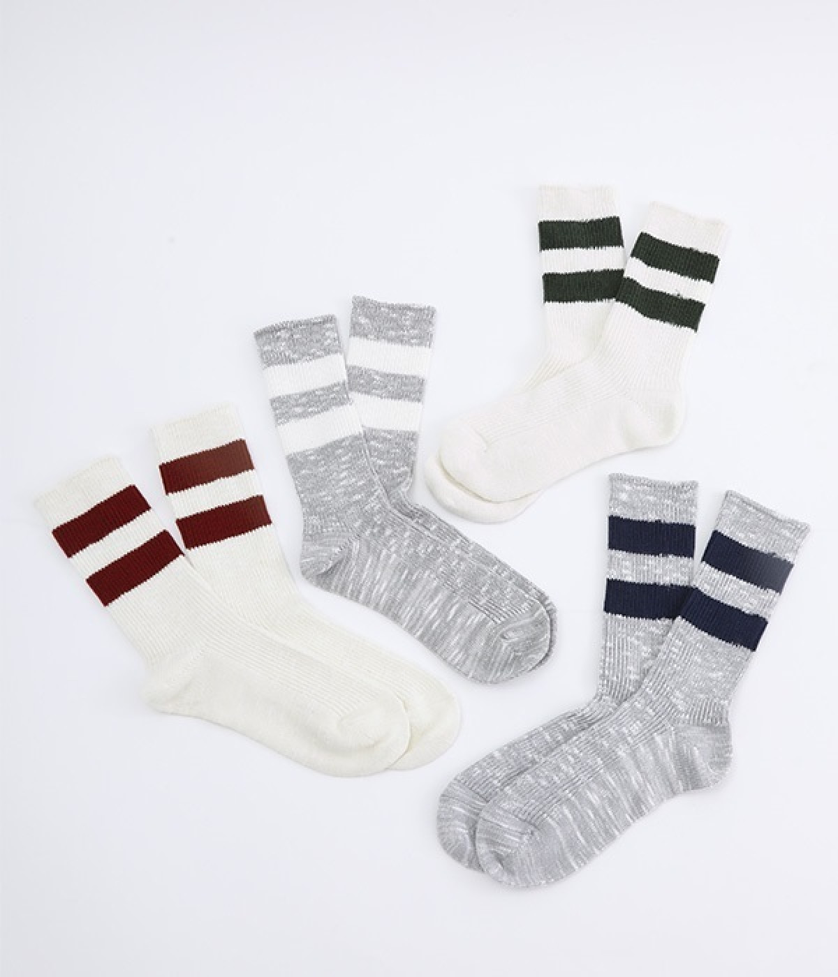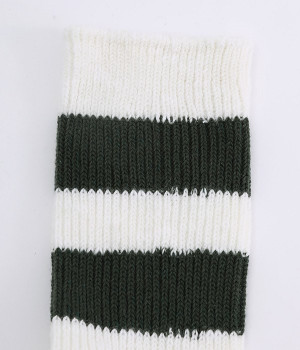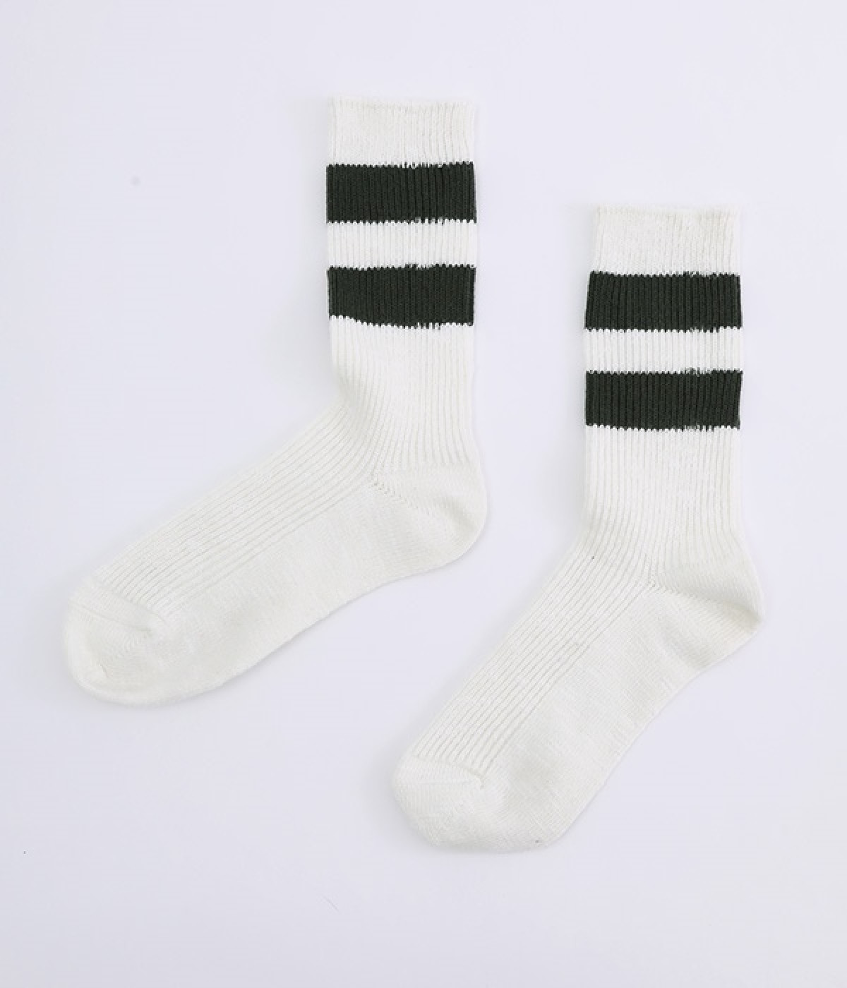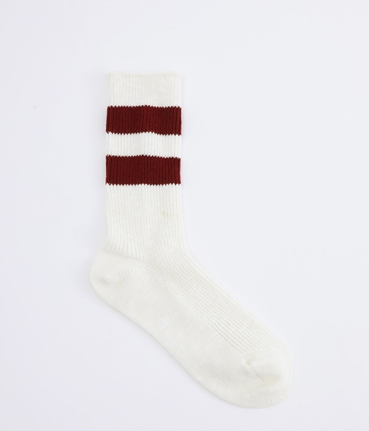 カジュアルなラインの入った使い勝手の良いソックスです。コットンウール素材を使っているため、通気性がありつつもあたたかさをキープできます。スニーカーやローファーからチラリとのぞかせることでコーディネートの差しアイテムとしても活躍。ひざ下丈のボトムからのぞかせやすいちょうど良いレングス設定に仕上げました。