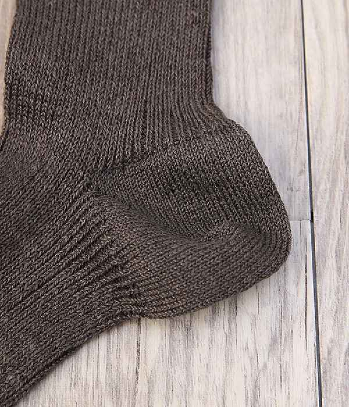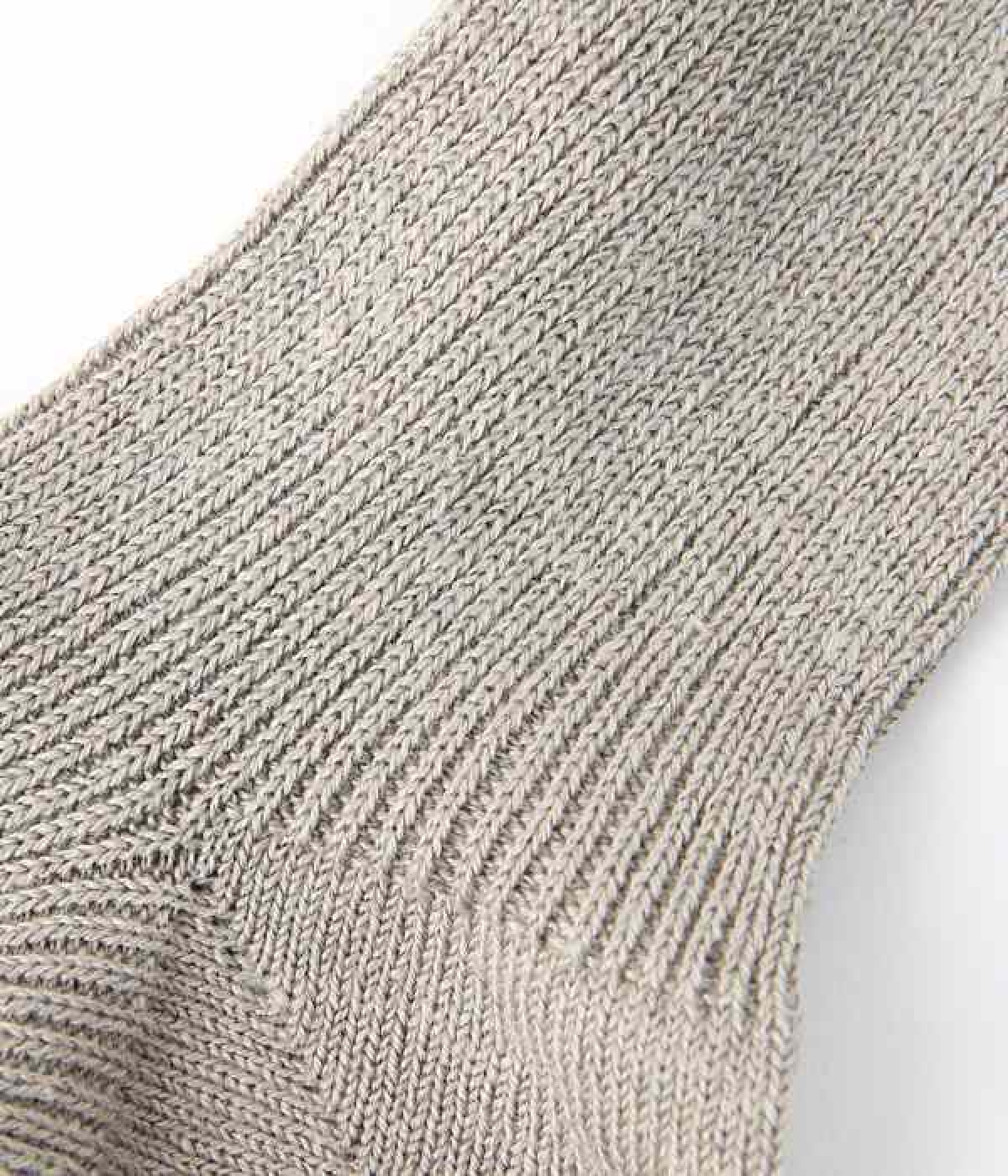 上質なフランス、ベルギーリネンを用いた美しい光沢とシャリシャリとした風合いが心地よいリブソックスです。吸放湿性が高く、サラッとしたはき心地が特徴のソックスはこれからの季節にピッタリ。スニーカーや革靴はもちろん、サンダルに合わせても素敵です。使いやすい丈感&どんなコーディネートにも合わせやすいベーシックなカラーもうれしいポイントです。