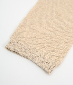 冷えやすい足元をしっかりと包み込んでくれるレッグウォーマーです。肌に当たる内側はシルク糸で、外側はコットン糸の2重編みになっている柔らかな履き心地。膝上から膝下まで足の冷えを防いでくれる長め丈は夏は伸ばしてレギンス風に合わせられ、冷える時にはクシュクシュとたるませることで更に保温効果がアップします。