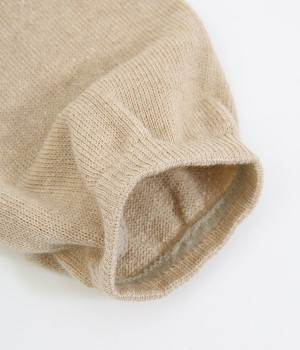 熱がこもりにくく、通気性にすぐれたコットンリネンを混紡したレッグウォーマー。ゆったりとはけるシルエットにしつつ、かかとがおさまるようにつくることで安定感を持たせました。内側にはシルクの糸を用いて汗ムレをしっかりと防止。リラックスしたいおうち時間だけでなく、サンダルに合わせていつもと違う足元スタイルをつくるのも素敵です。