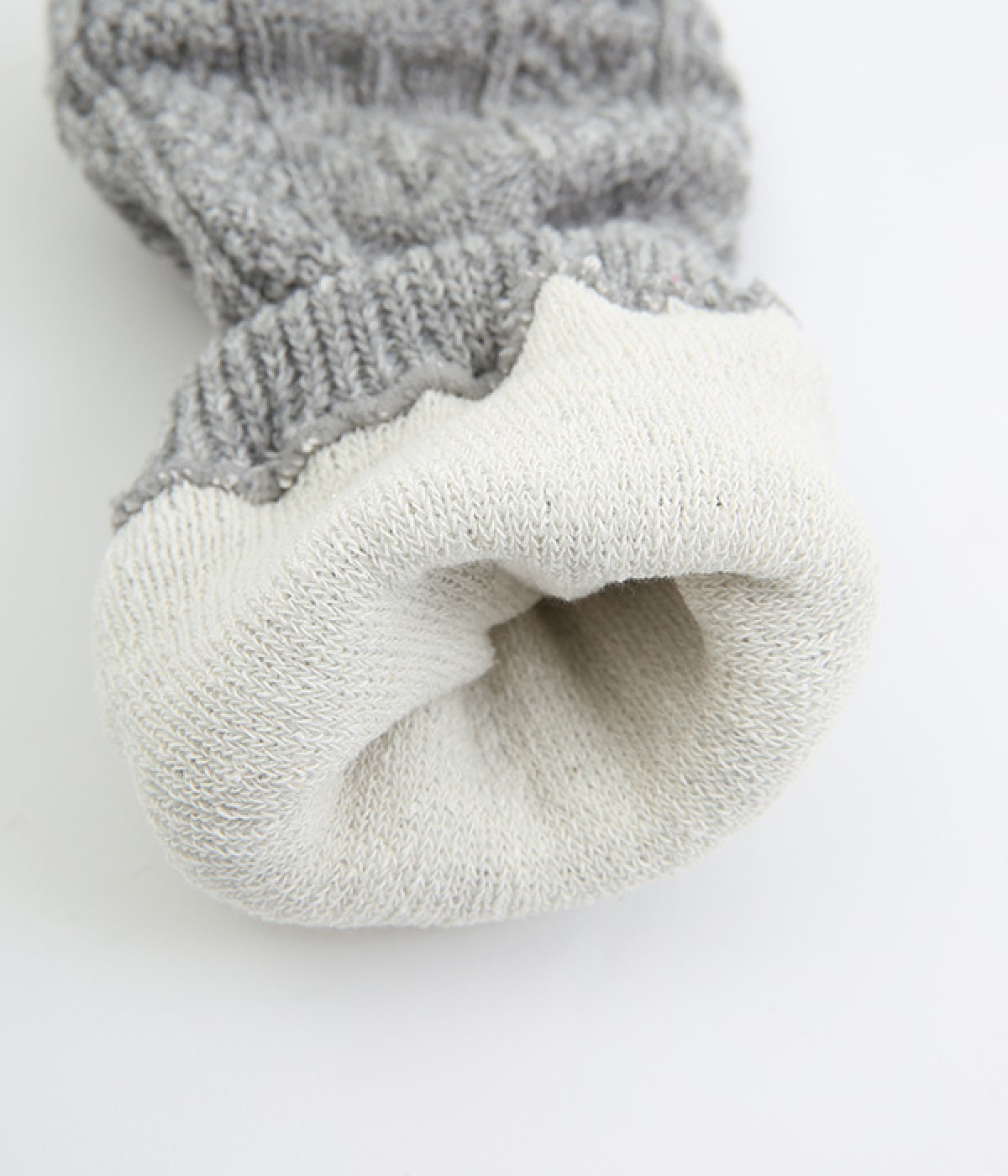 肉厚で保温性が高く、冷えやすい足元をしっかりあたためる二重編み構造