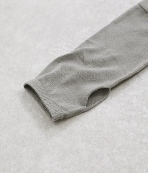 とても薄手でやわらかく、軽いつけ心地のアームウォーマーです。手の甲までしっかりあたためてくれて防寒対策として活躍。親指ホールがあるので着用したまま動きやすさもキープ。