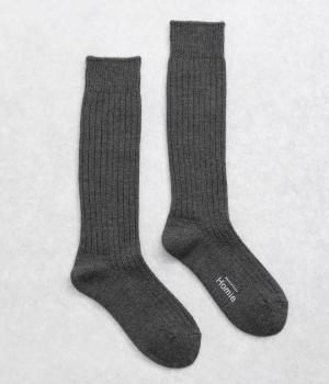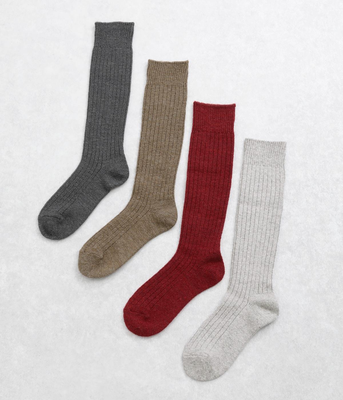 シンプルなリブ編みは、ナチュラルにもきれいめなスタイルにもなじみます。膝下までとどくハイソックス丈で、スカートやワンピース、ショートブーツとの相性もばつぐんです。ていねいな編み立てなので、しめつけ感が少なく、長時間はいても快適な一足。