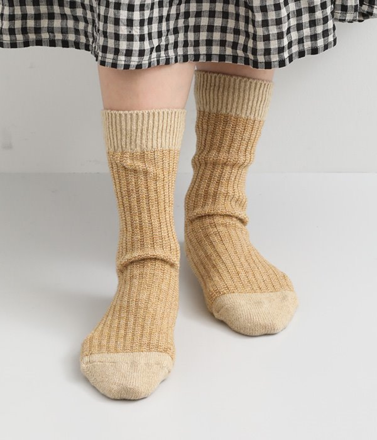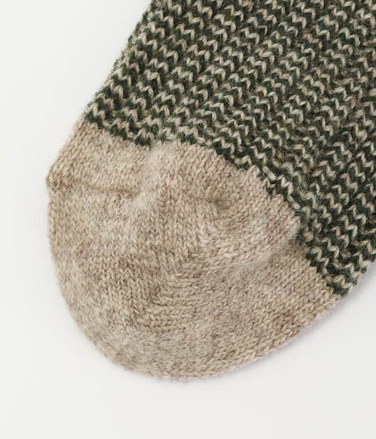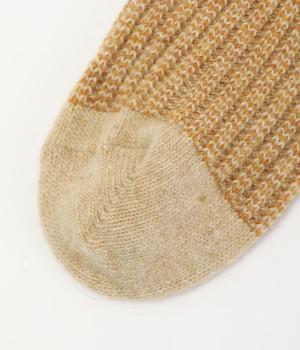 ウールの混率の高い糸で編んだ程よい肉感のあるジャガードソックスです。履き口、かかと、つま先を配色にしているのもポイントです。程よいフィット感のある、ふわっとした暖かな履き心地で冷えから足元を守ってくれます。ひざ下丈のスカートや、半端丈のパンツとの相性が良いミドル丈で使い勝手も抜群です。