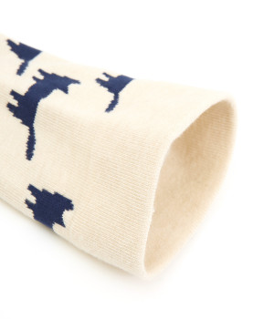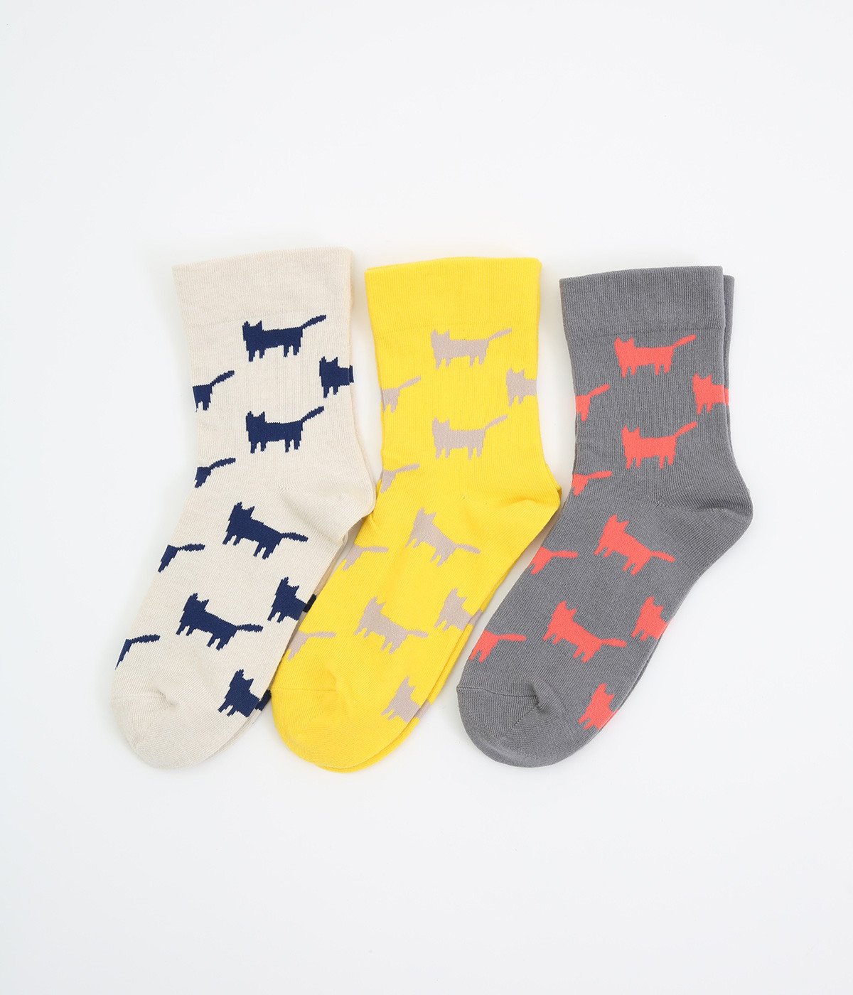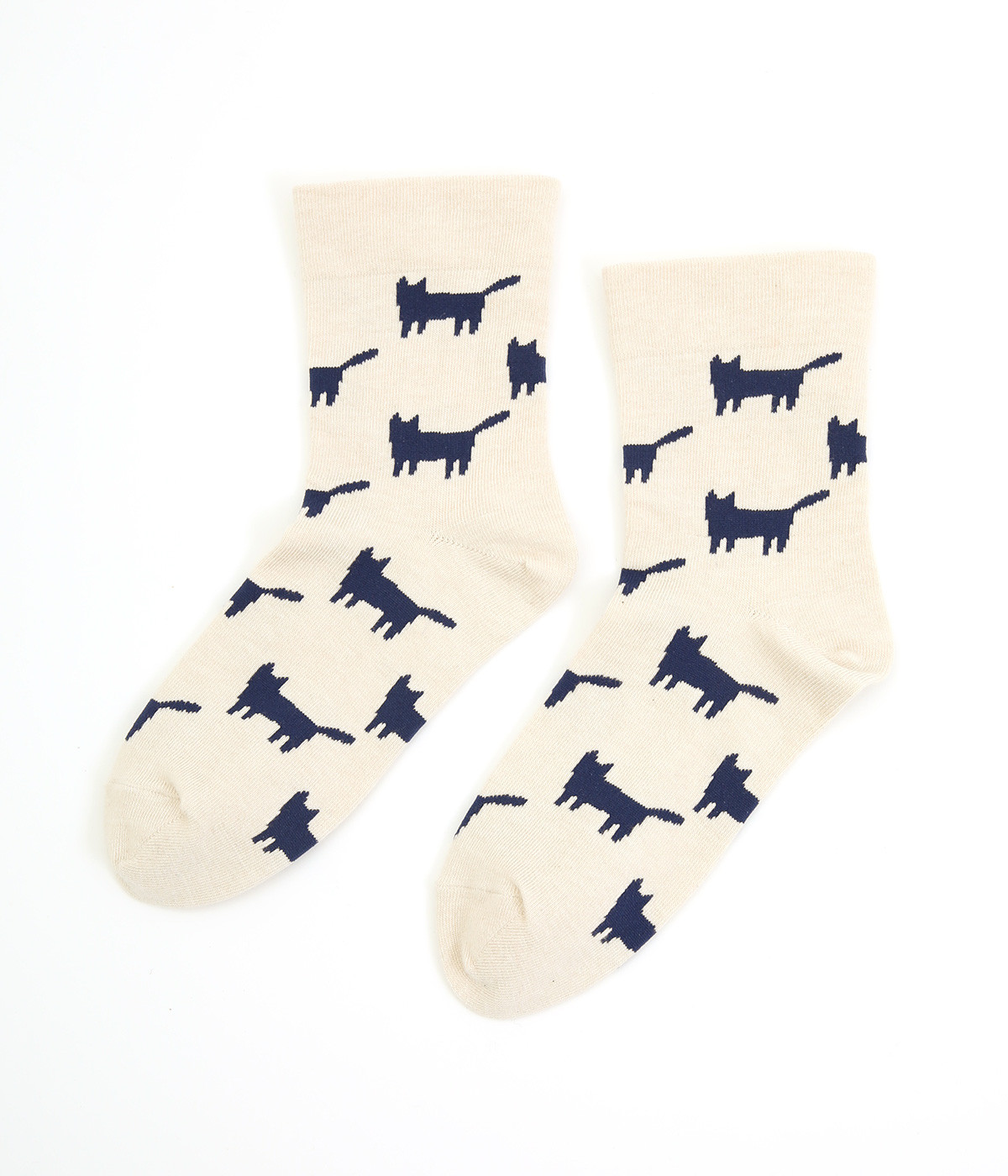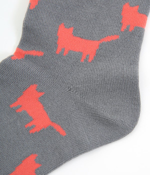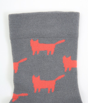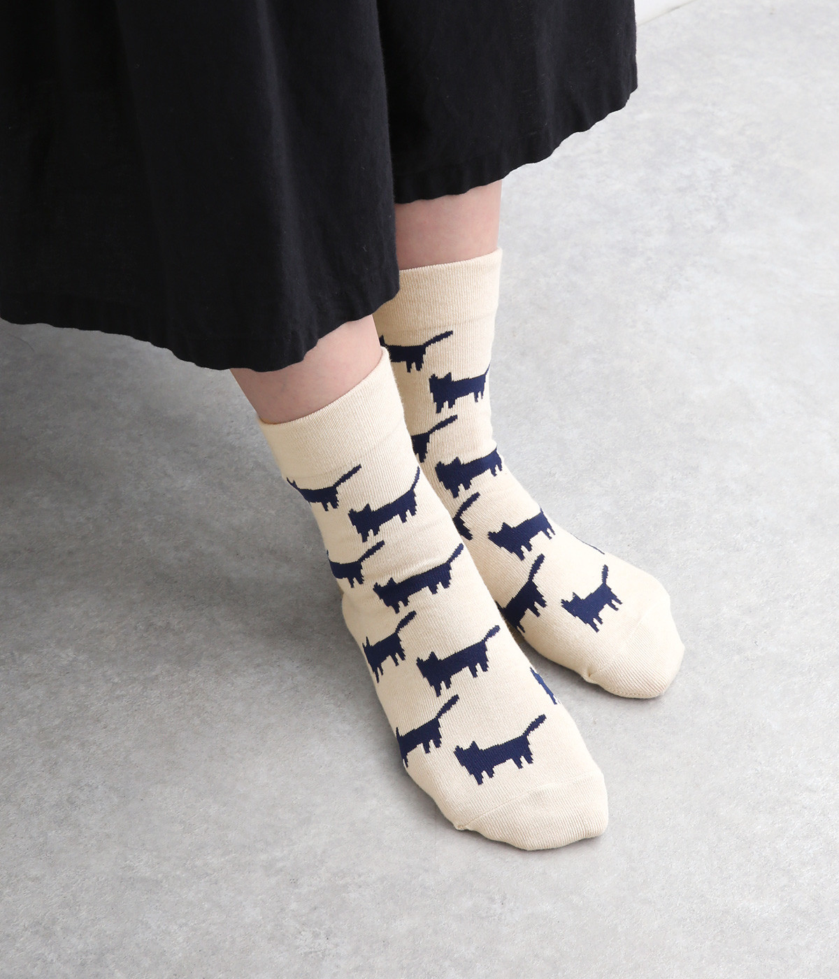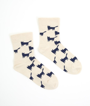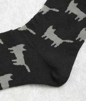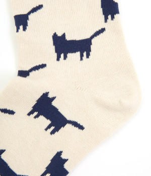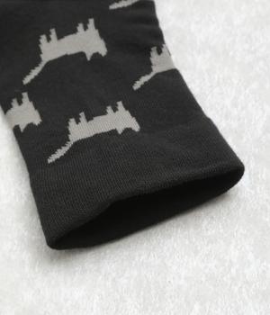 可愛らしさのある猫モチーフをシルエットのみでスタイリッシュに表現し、大人スタイルにも取り入れやすく仕立てました。はき口にゴムを入れず、締めつけ感を軽減させたストレスフリー仕様もうれしいポイント。