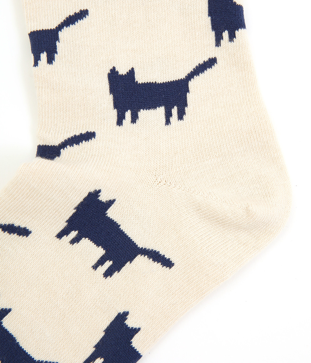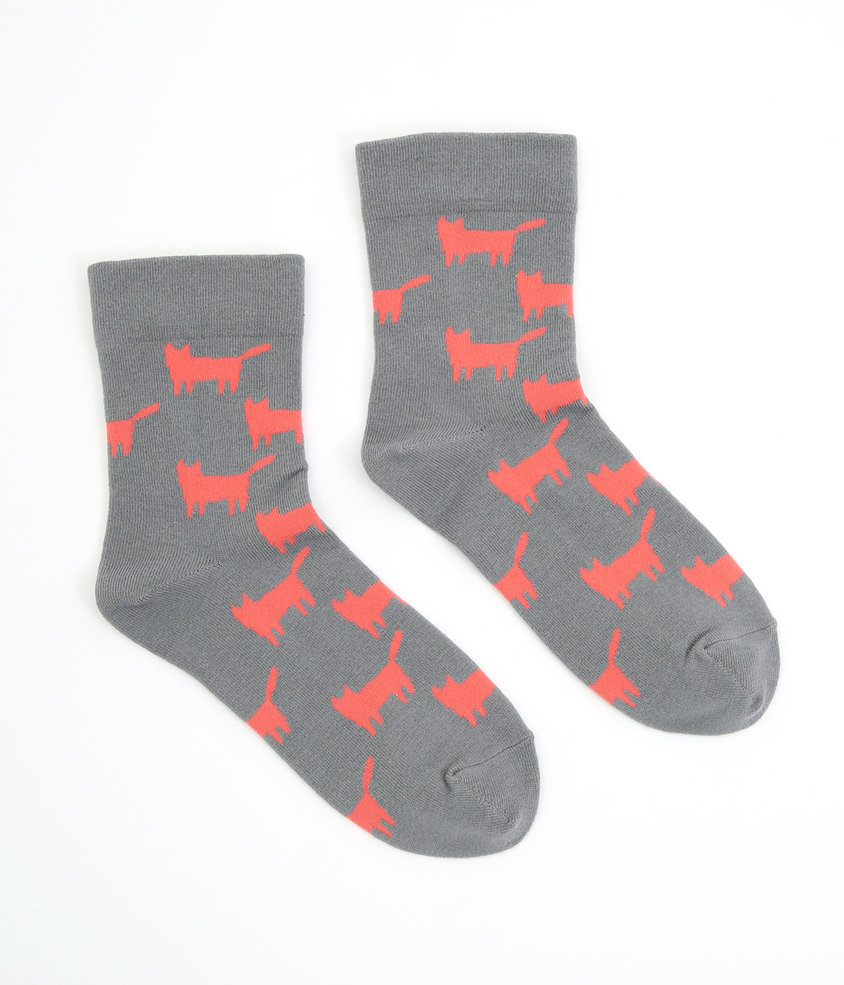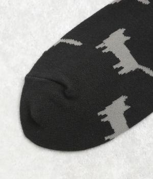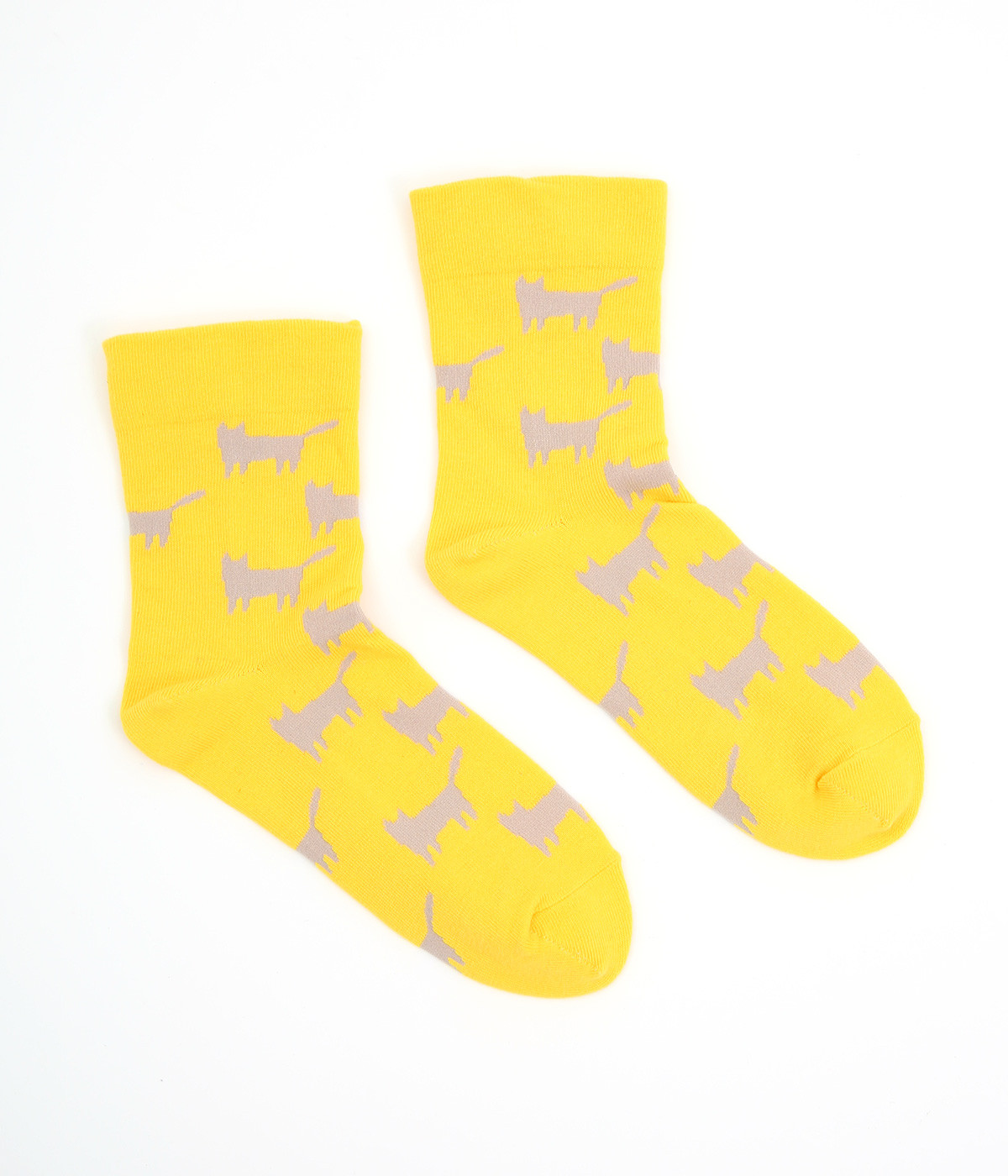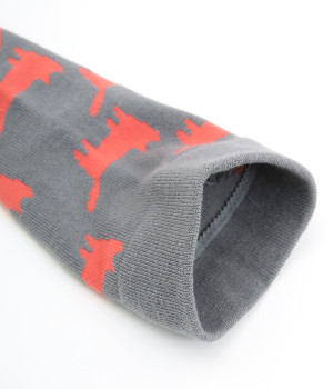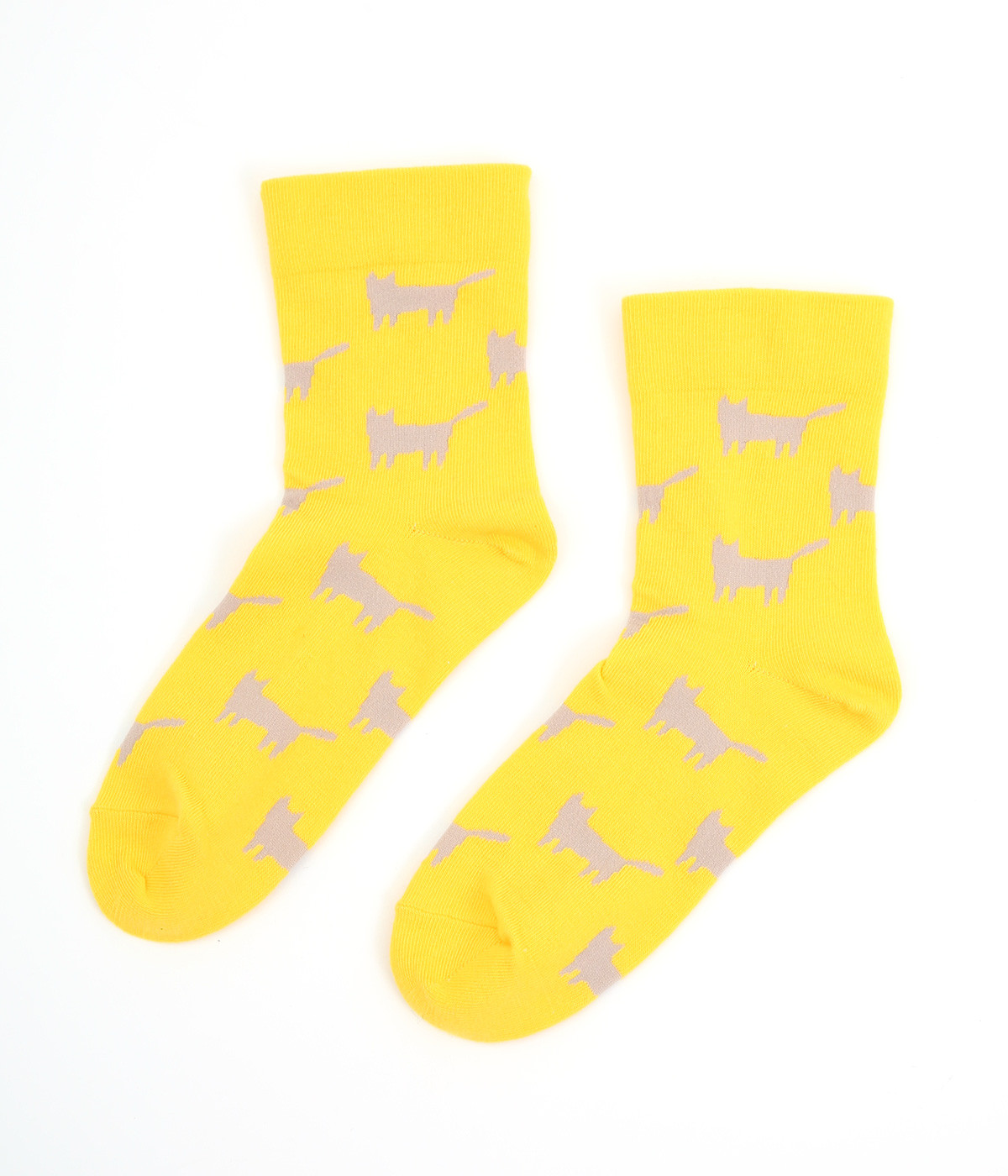 可愛らしさのある猫モチーフをシルエットのみでスタイリッシュに表現し、大人スタイルにも取り入れやすく仕立てました。はき口にゴムを入れず、締めつけ感を軽減させたストレスフリー仕様もうれしいポイント。