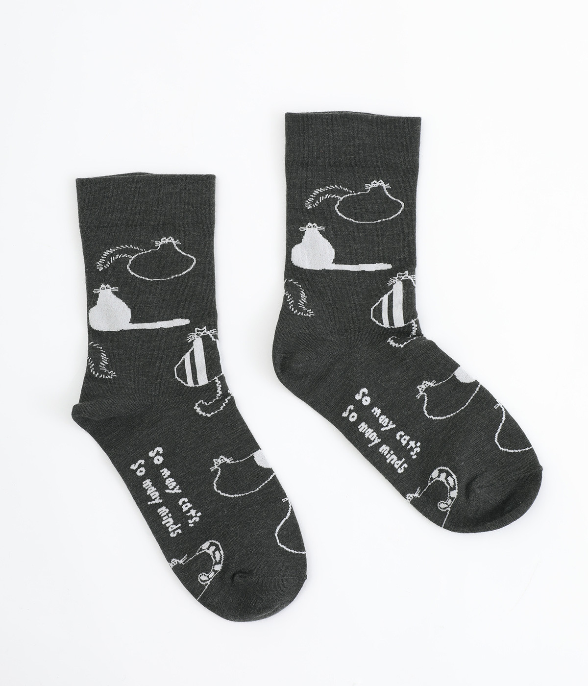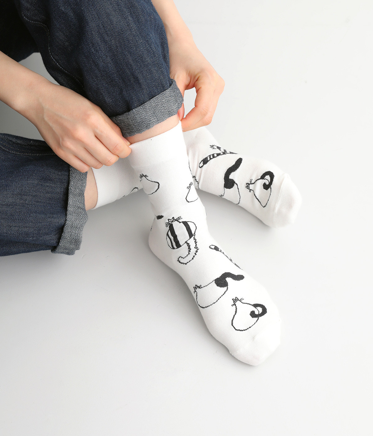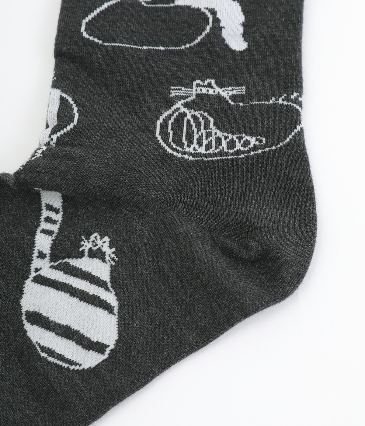 スズキマイコさんとのコラボレーションから誕生したソックスです。個性的な柄をもつたくさんのネコたちをモチーフにした、癒し系のルックスが◎。クロップドパンツやスカートの裾からチラリと見せるだけでもおしゃれがきまります。