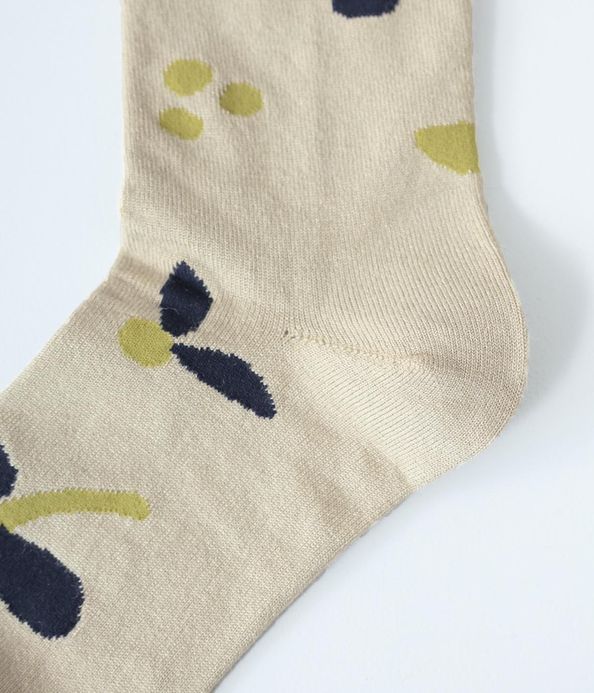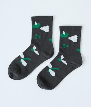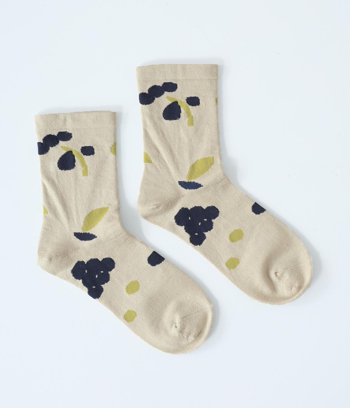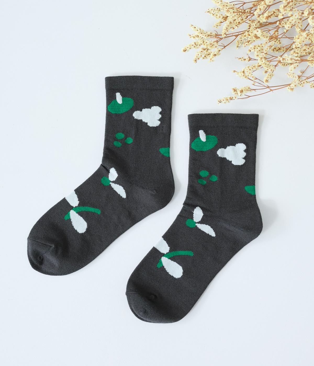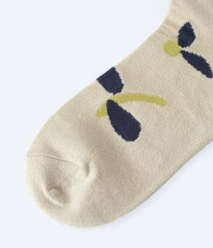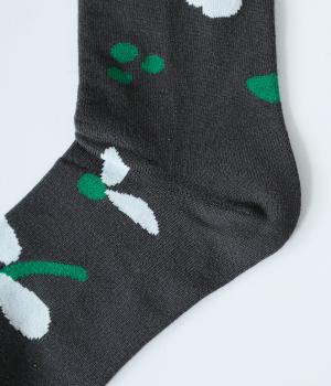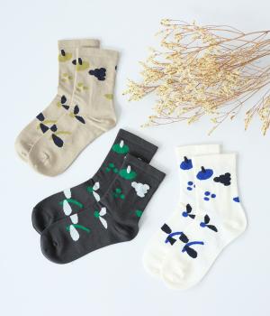 植物や果物をちりばめた大人かわいいソックスです。アクセントになるカラーを取り入れつつも派手すぎず、足元にさりげなく彩りを添えてくれます。厚手過ぎないのでさまざまなシューズに合わせやすいのも魅力です。
