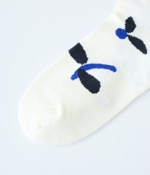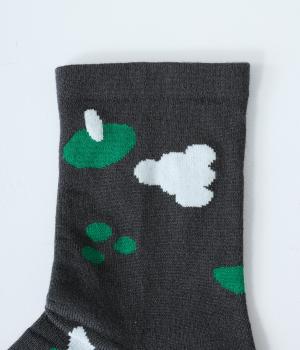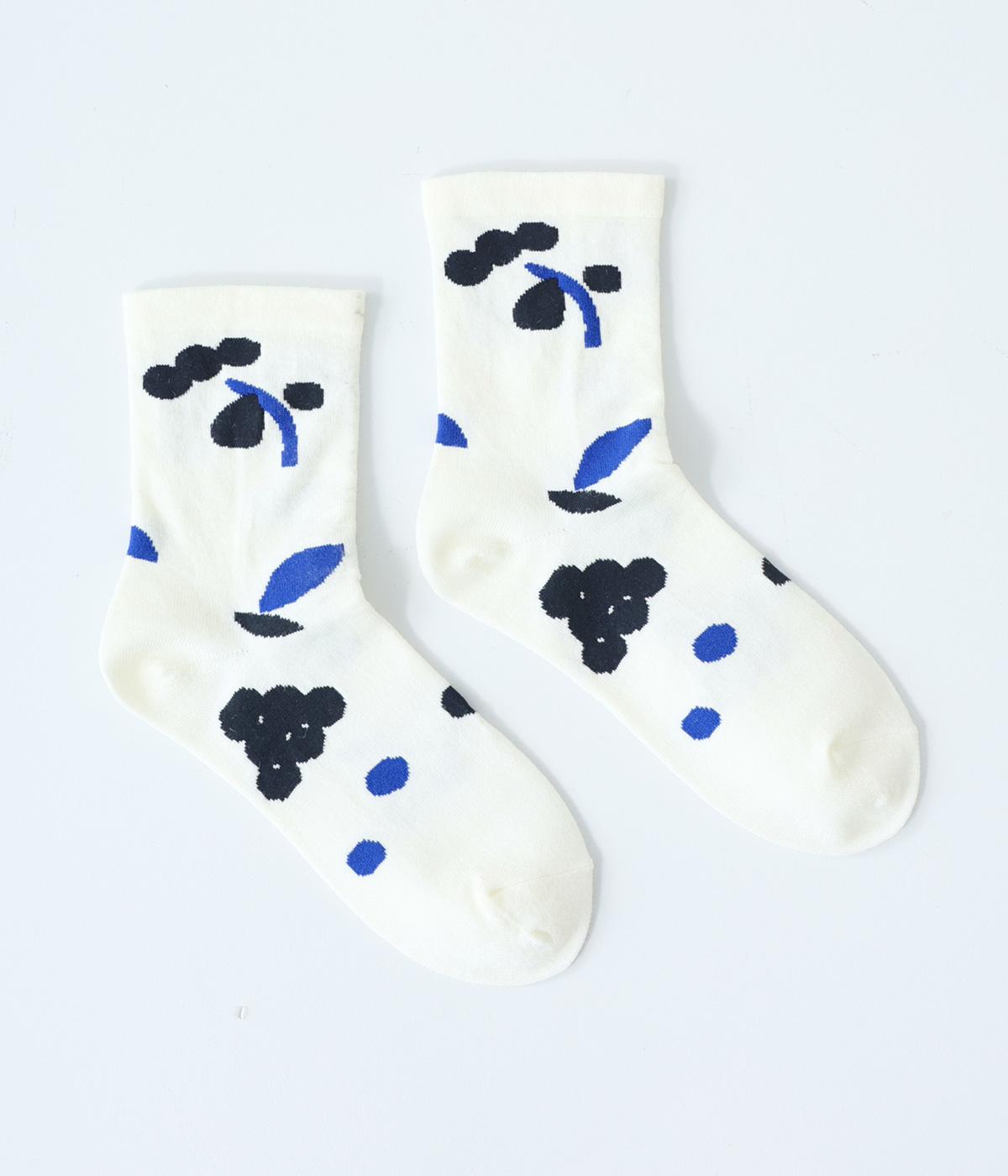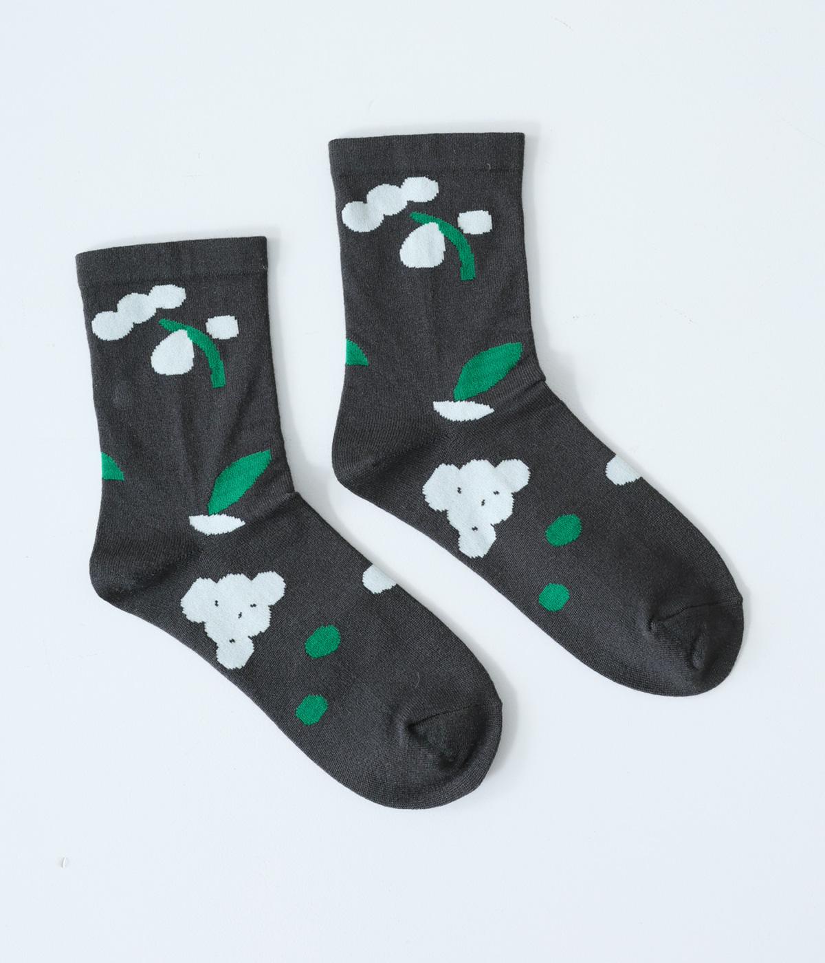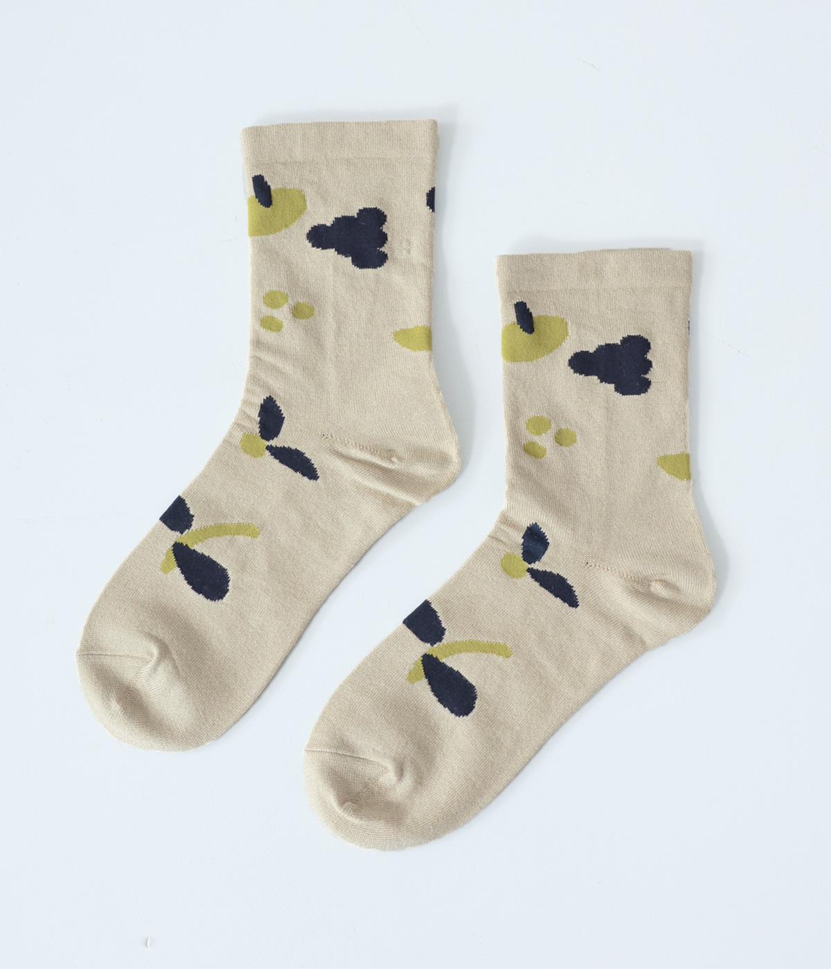 植物や果物をちりばめた大人かわいいソックスです。アクセントになるカラーを取り入れつつも派手すぎず、足元にさりげなく彩りを添えてくれます。厚手過ぎないのでさまざまなシューズに合わせやすいのも魅力です。