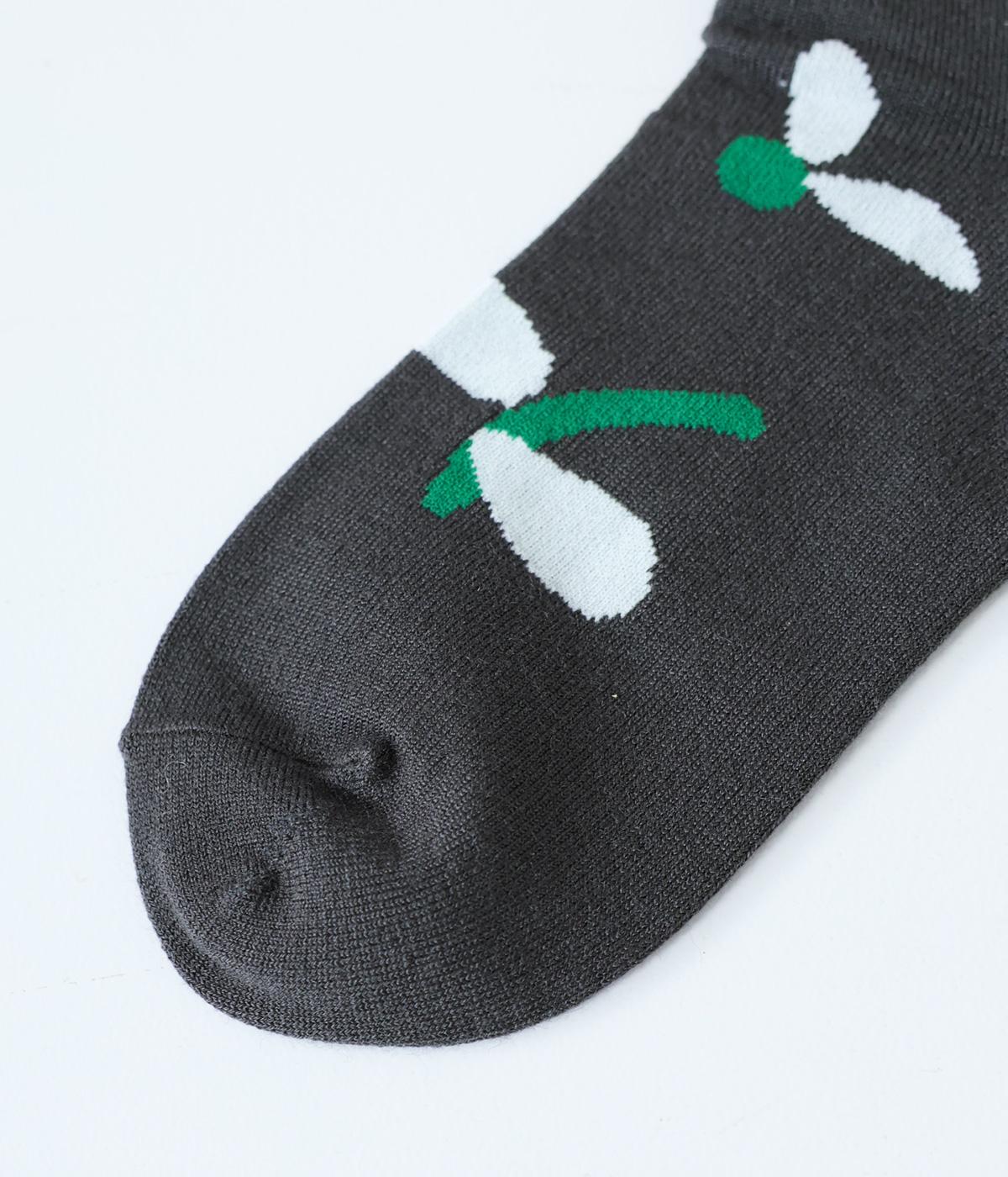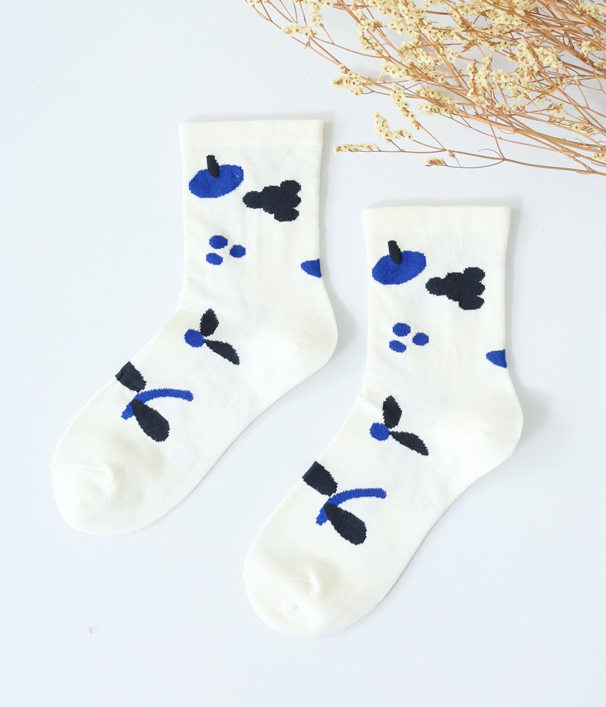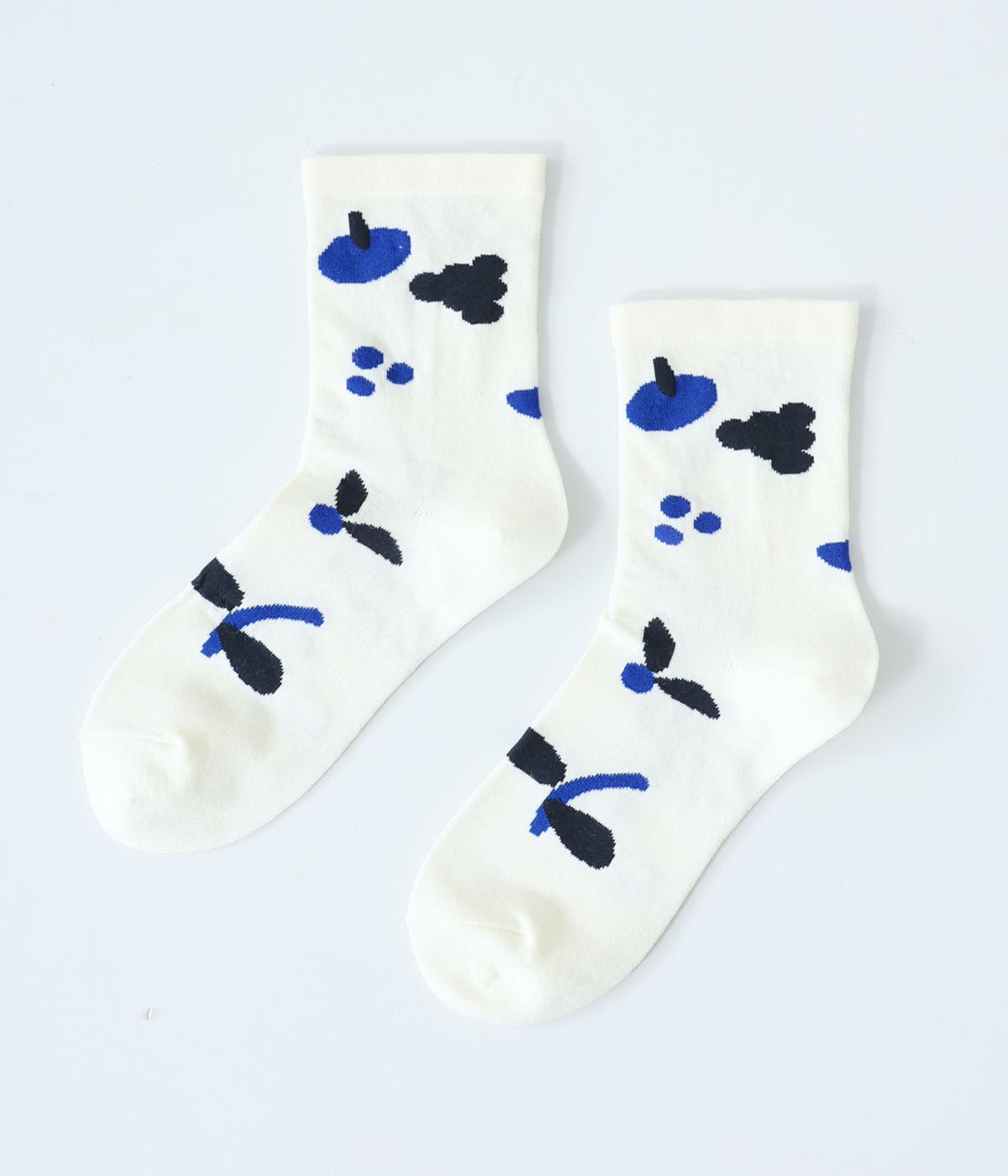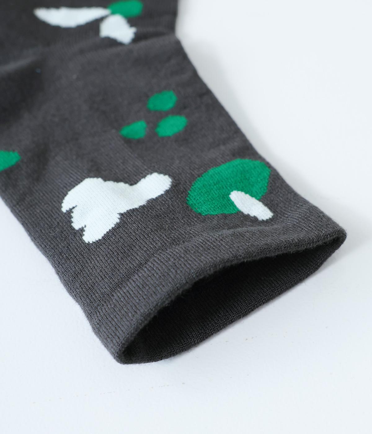 植物や果物をちりばめた大人かわいいソックスです。アクセントになるカラーを取り入れつつも派手すぎず、足元にさりげなく彩りを添えてくれます。厚手過ぎないのでさまざまなシューズに合わせやすいのも魅力です。