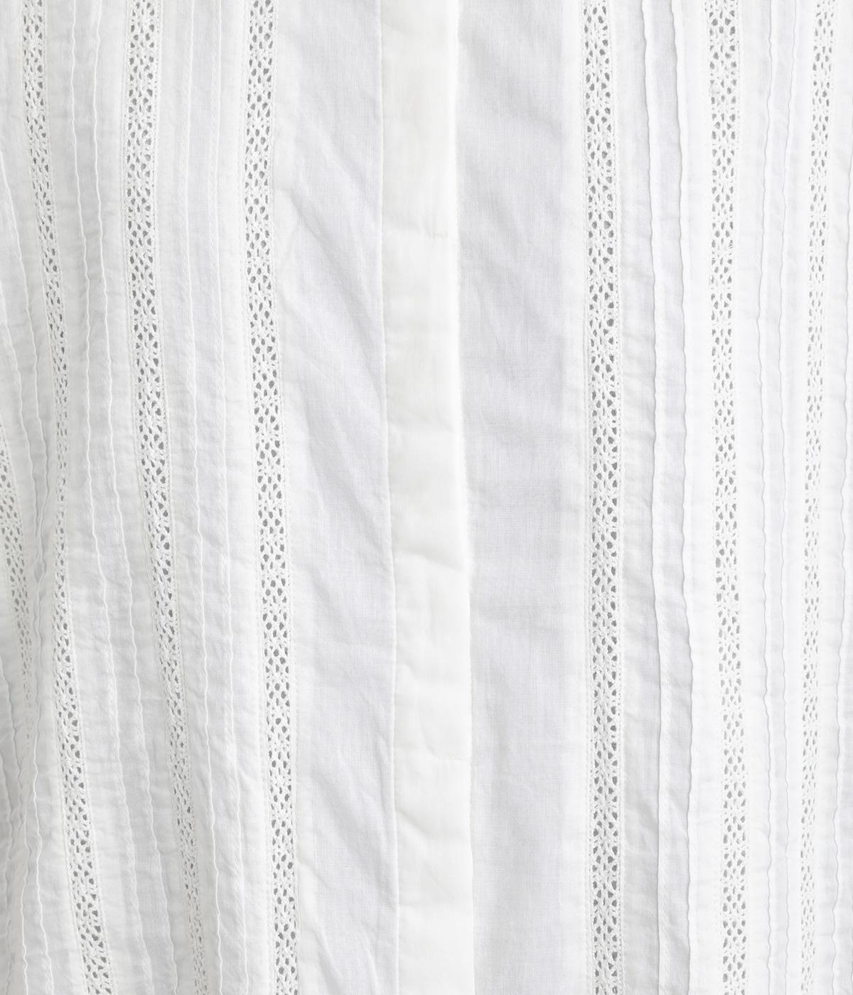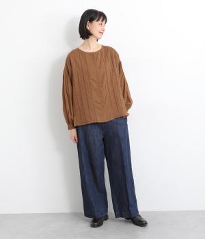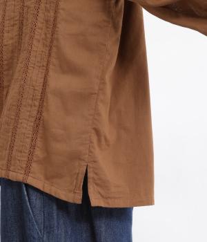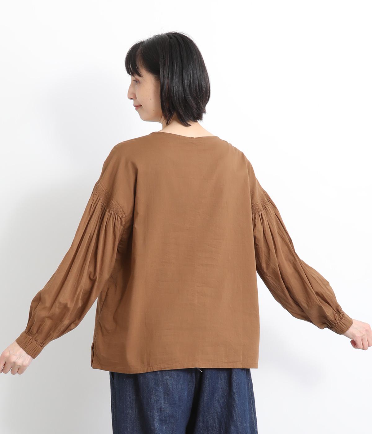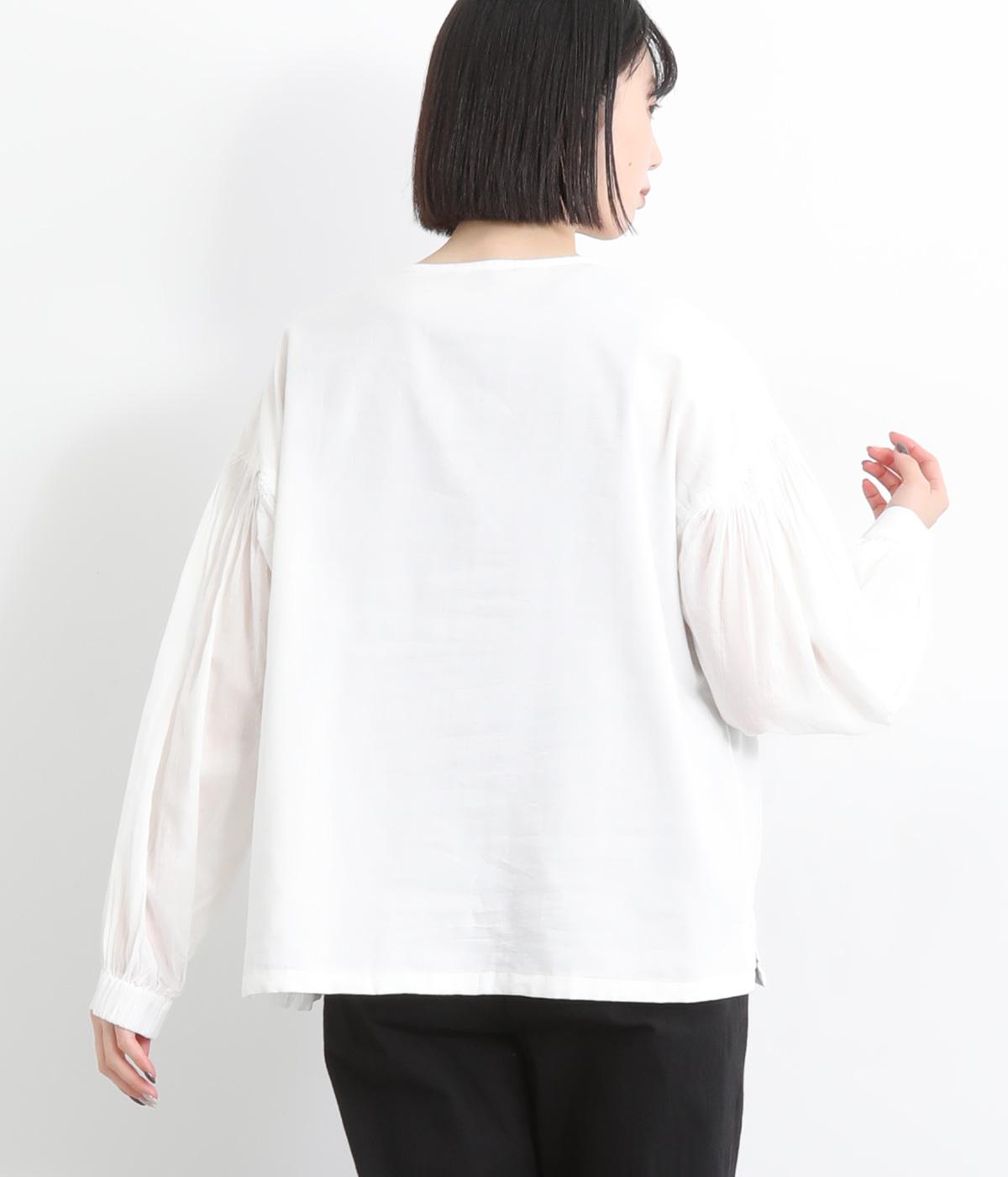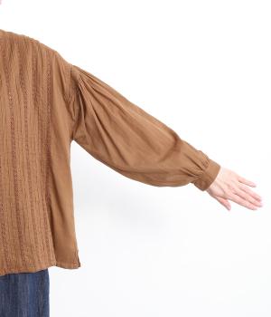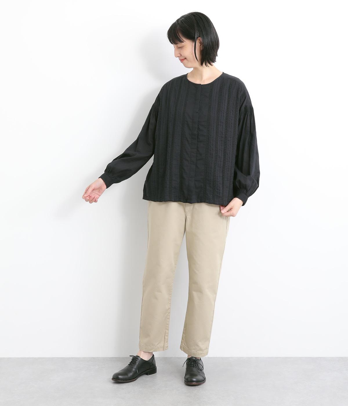 たっぷりのレースとピンタックがナチュラル&華やかなブラウスです。袖山にもシャーリングを寄せてふわりとしたやさしい雰囲気に。比翼の前あきなので羽織りにもなり、袖口も部分的にゴムが入っているので着こなしの幅も広がります。