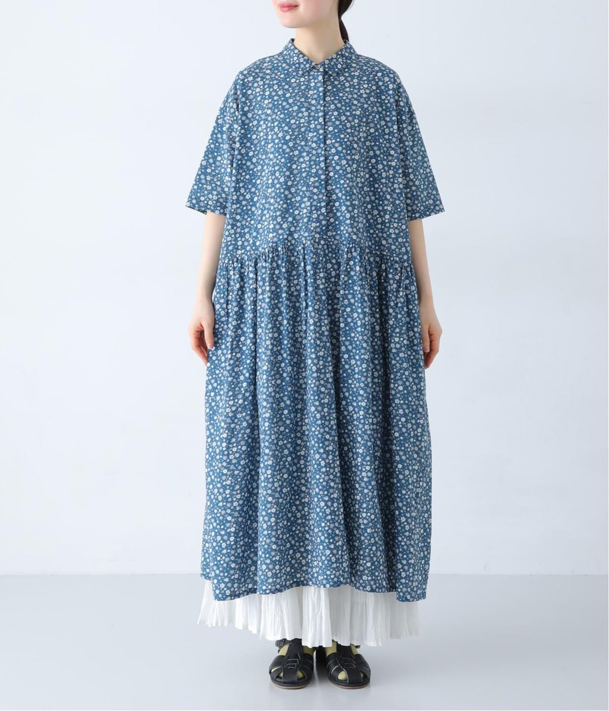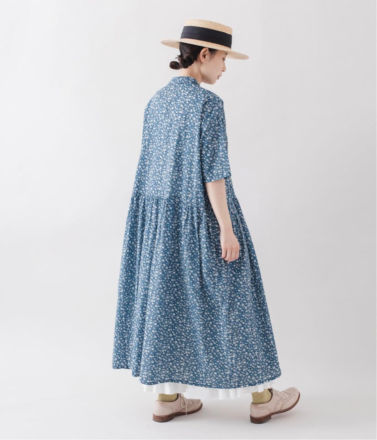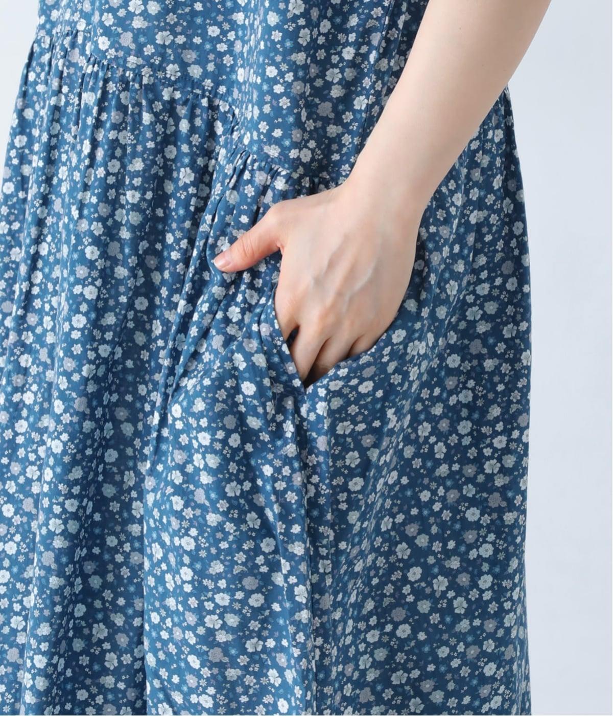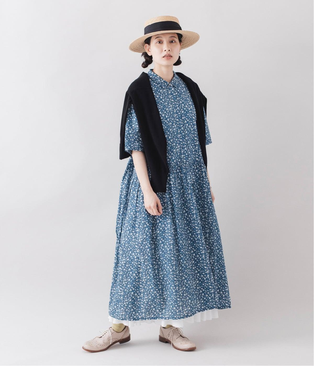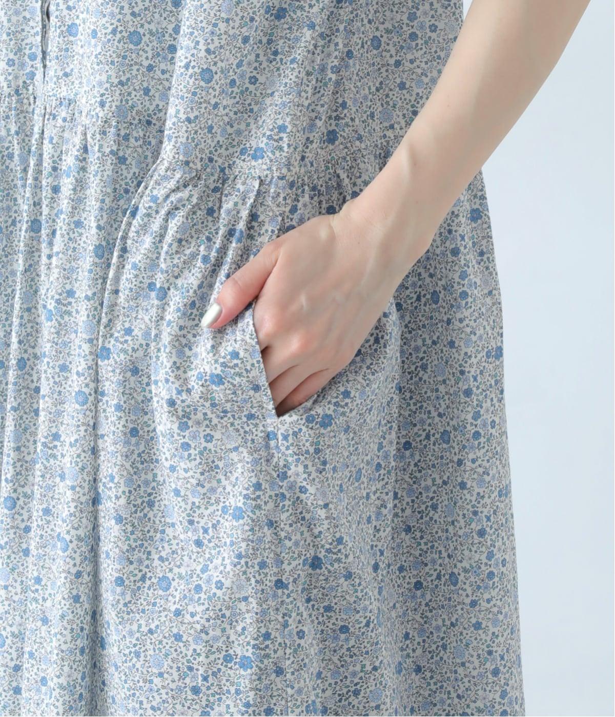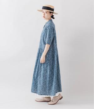 オリジナルの小花柄をのせたワンピースは、ブルーとオフホワイトの2色展開。