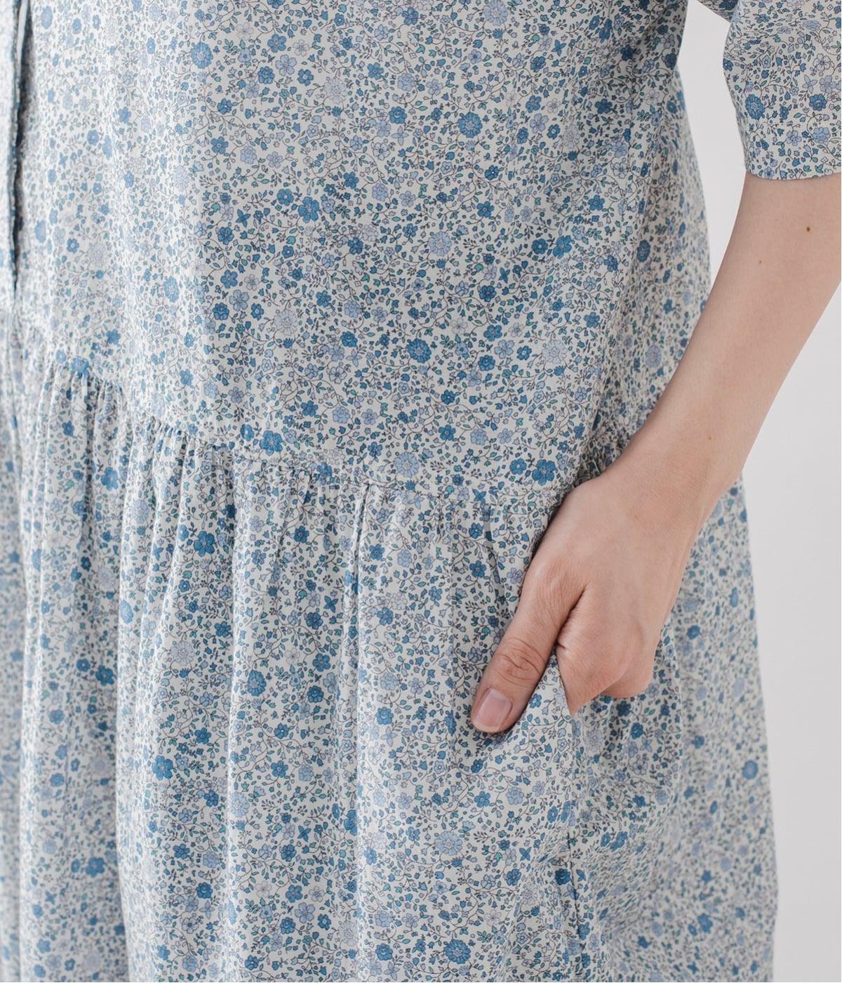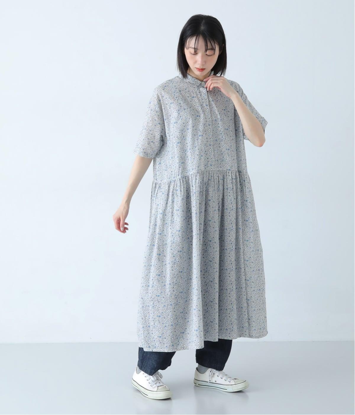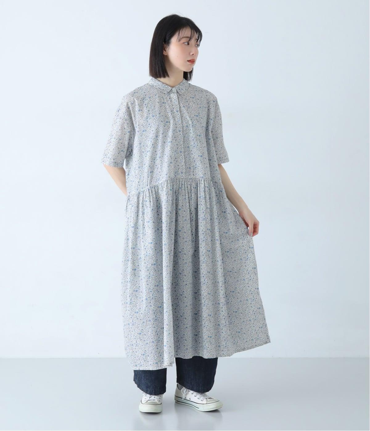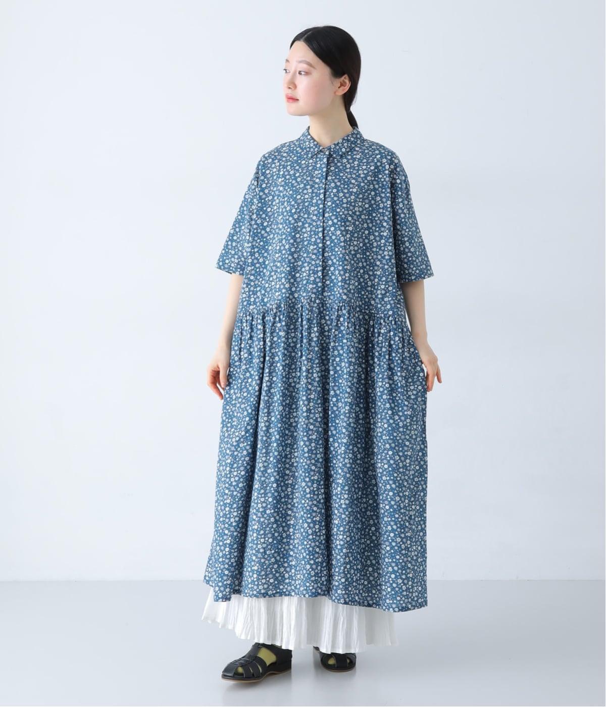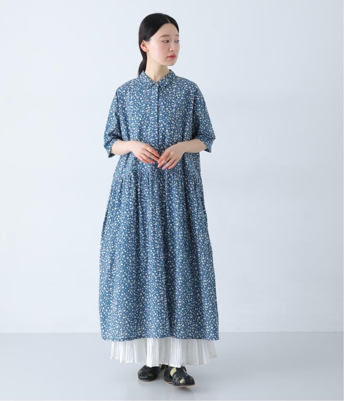 オリジナルの小花柄をのせたワンピースは、ブルーとオフホワイトの2色展開。