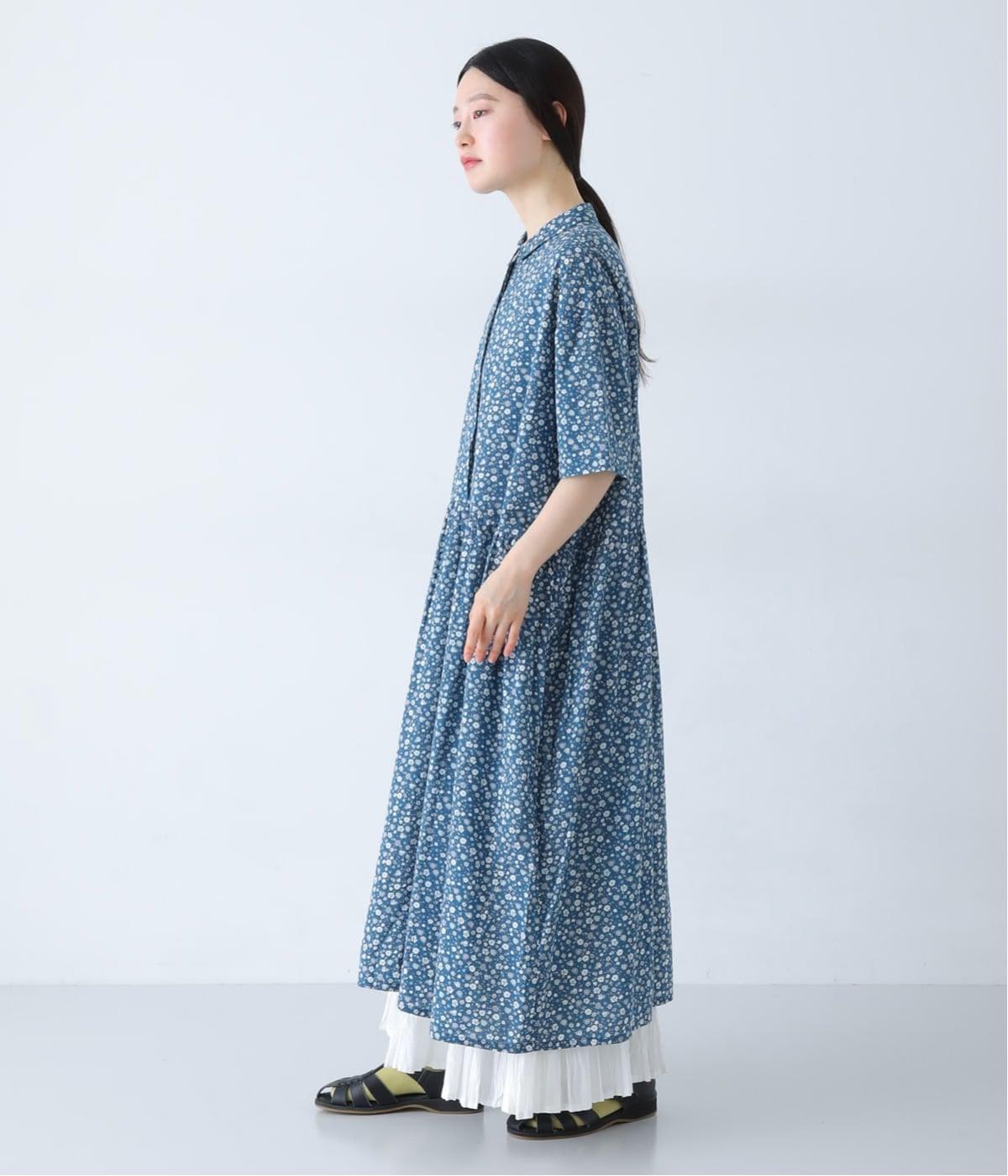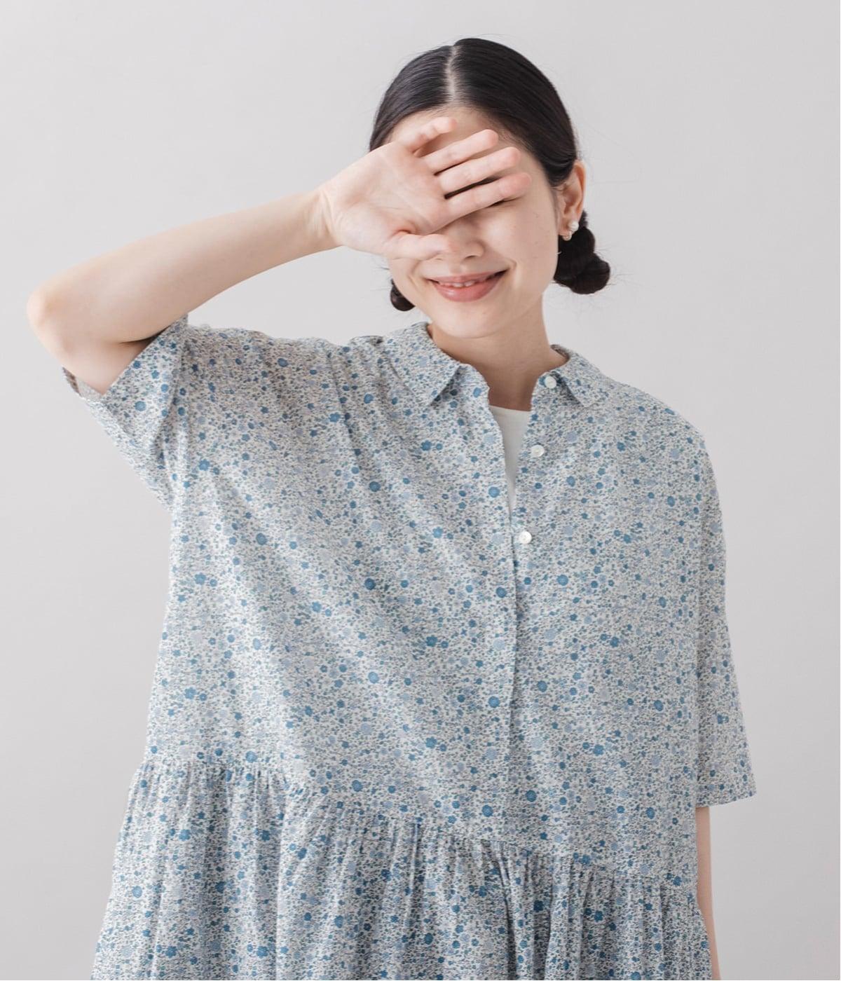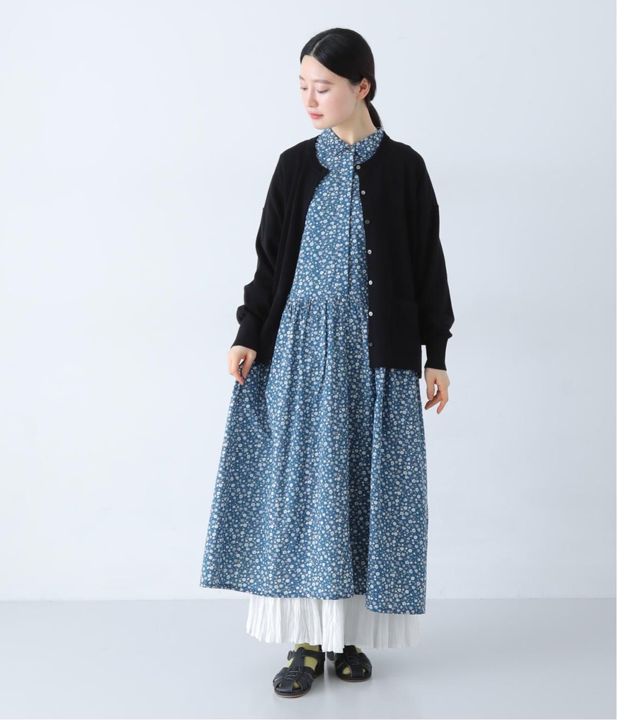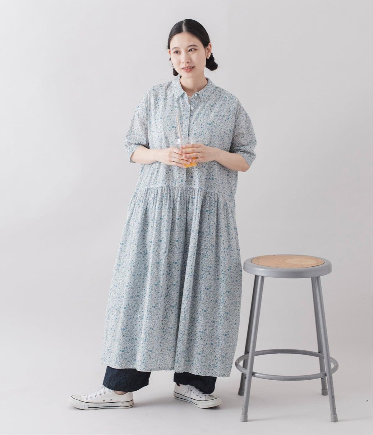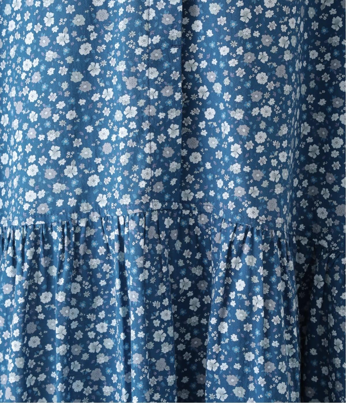オリジナルの小花柄をのせたワンピースは、ブルーとオフホワイトの2色展開。