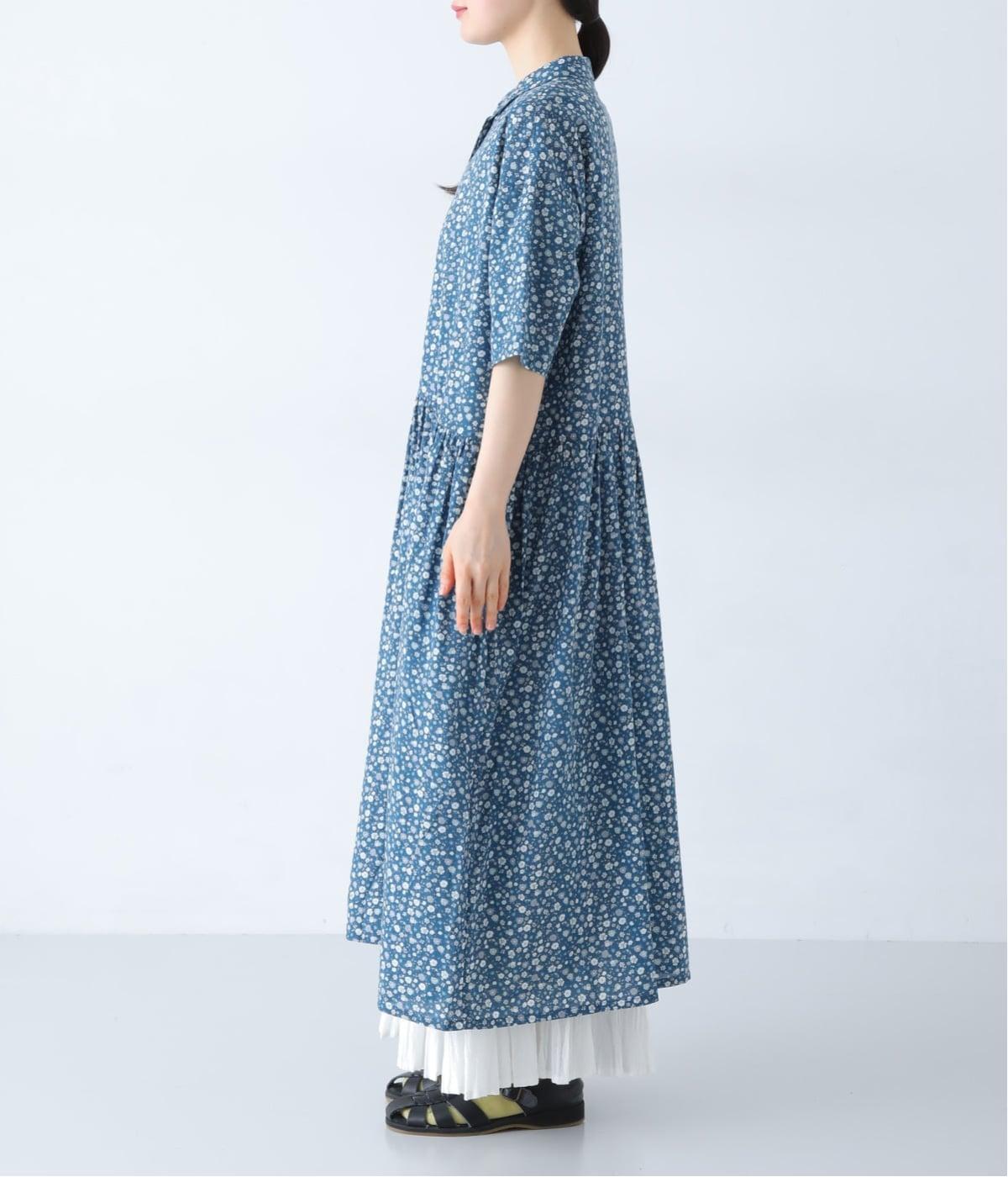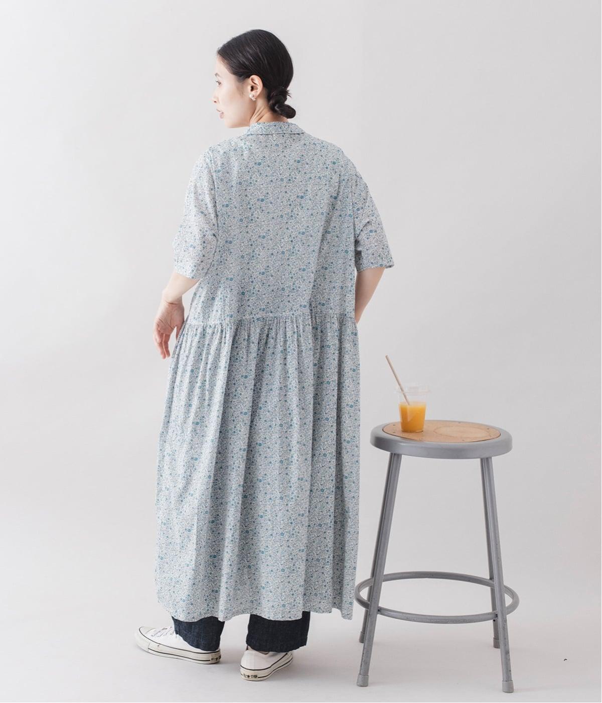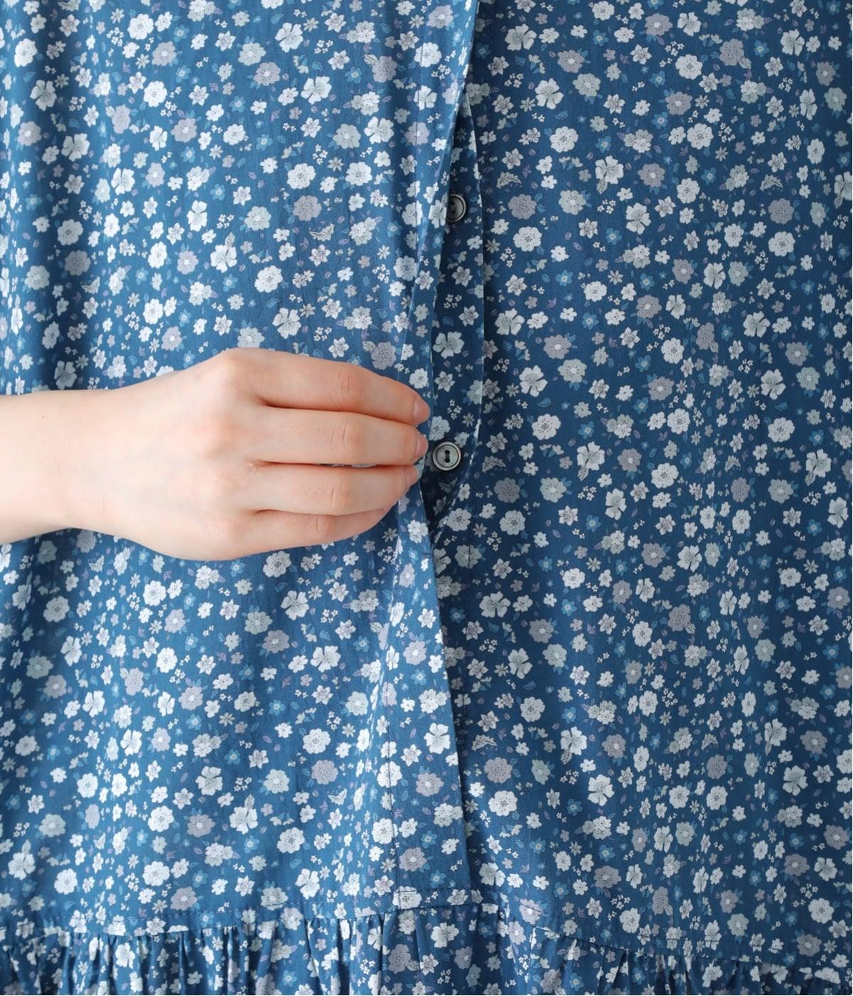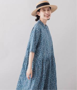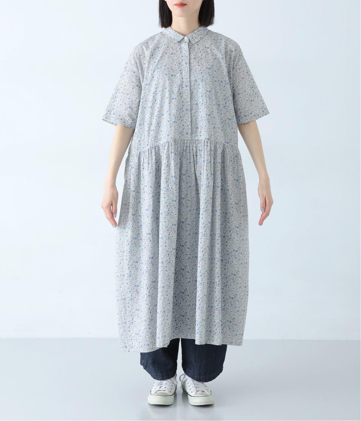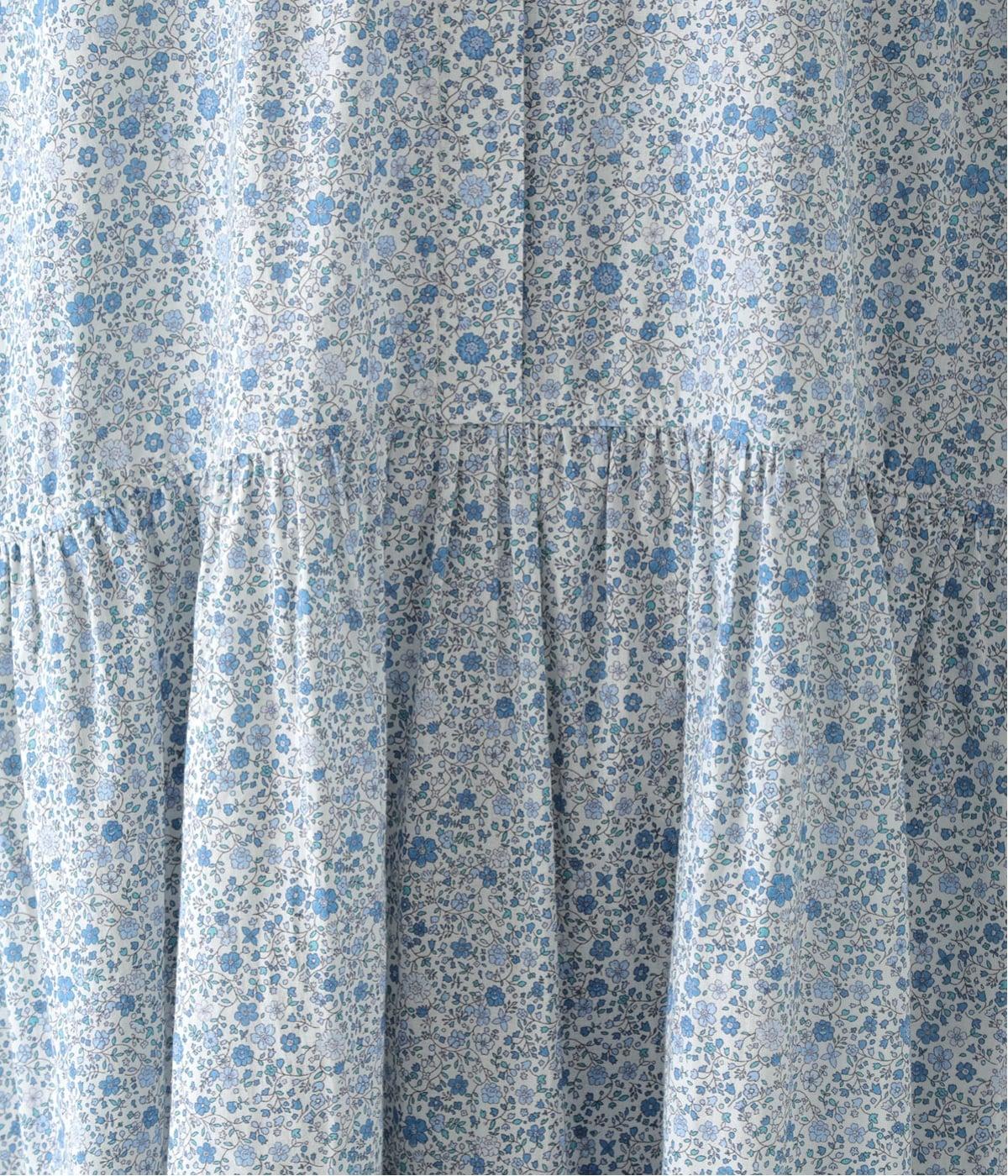 オリジナルの小花柄をのせたワンピースは、ブルーとオフホワイトの2色展開。