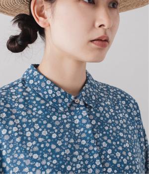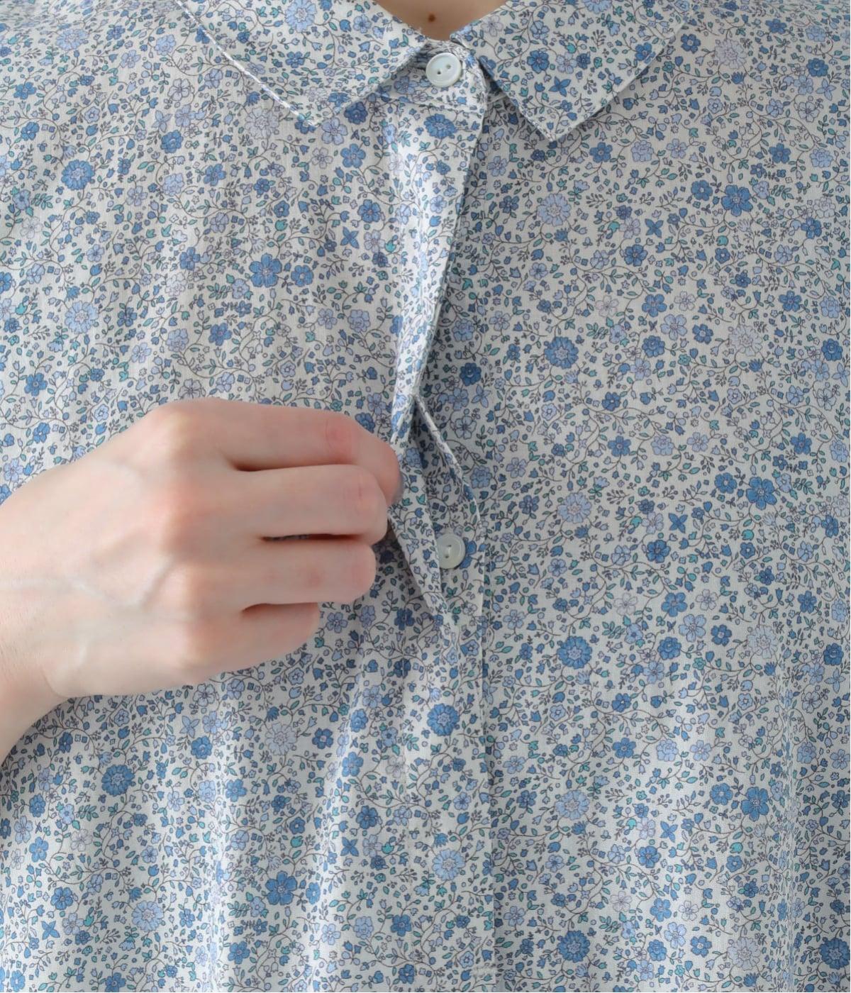 軽やかな綿100%素材でパンツとのレイヤードもしやすく、花柄の甘さをさりげなく和らげてくれます。