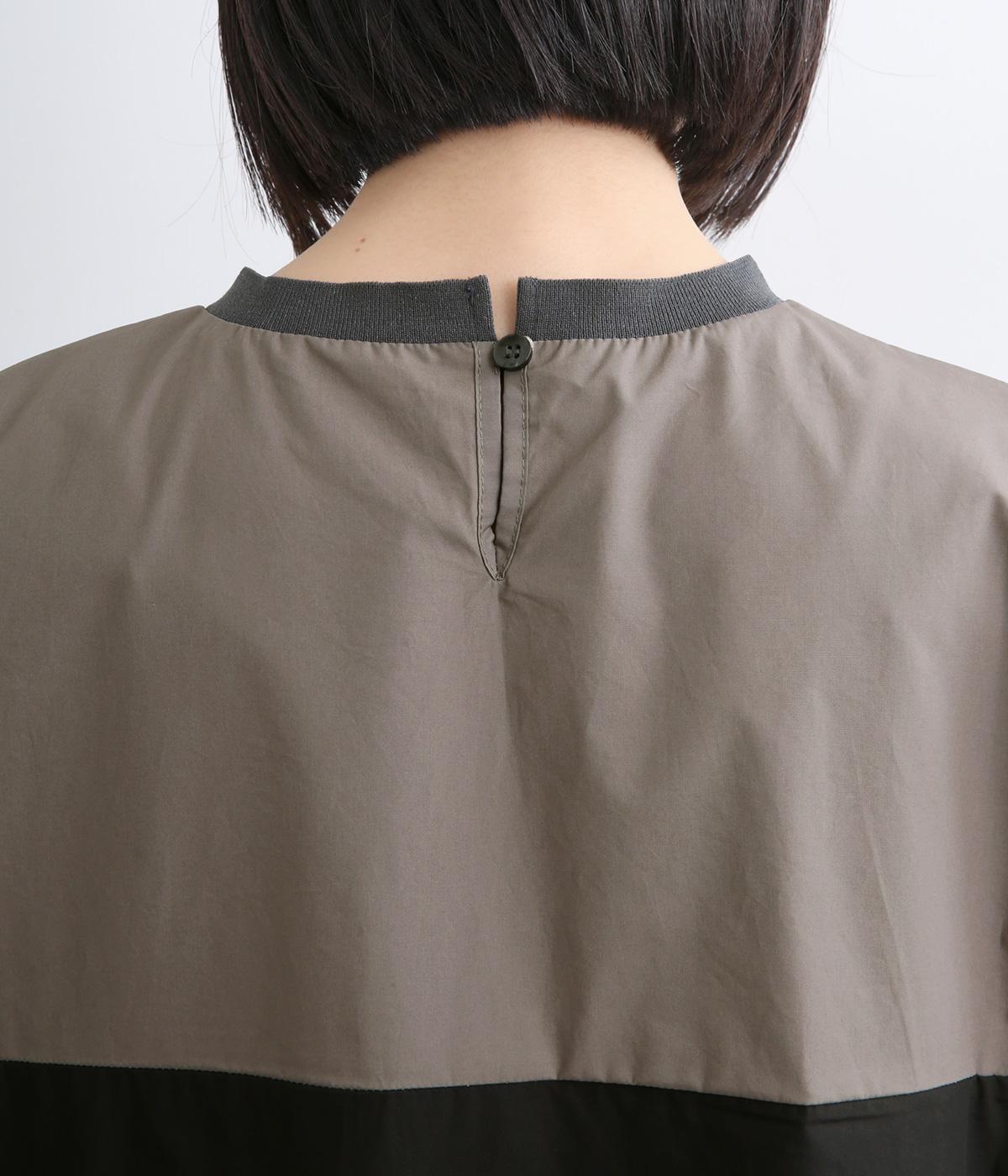 パリッとしたハリのあるコットン生地です。シルエットをきれいに見せつつ肌あたりはやさしく、軽やかな着心地を叶えます。首や袖口のリブが伸縮性を持ち、動きやすさも備えています。