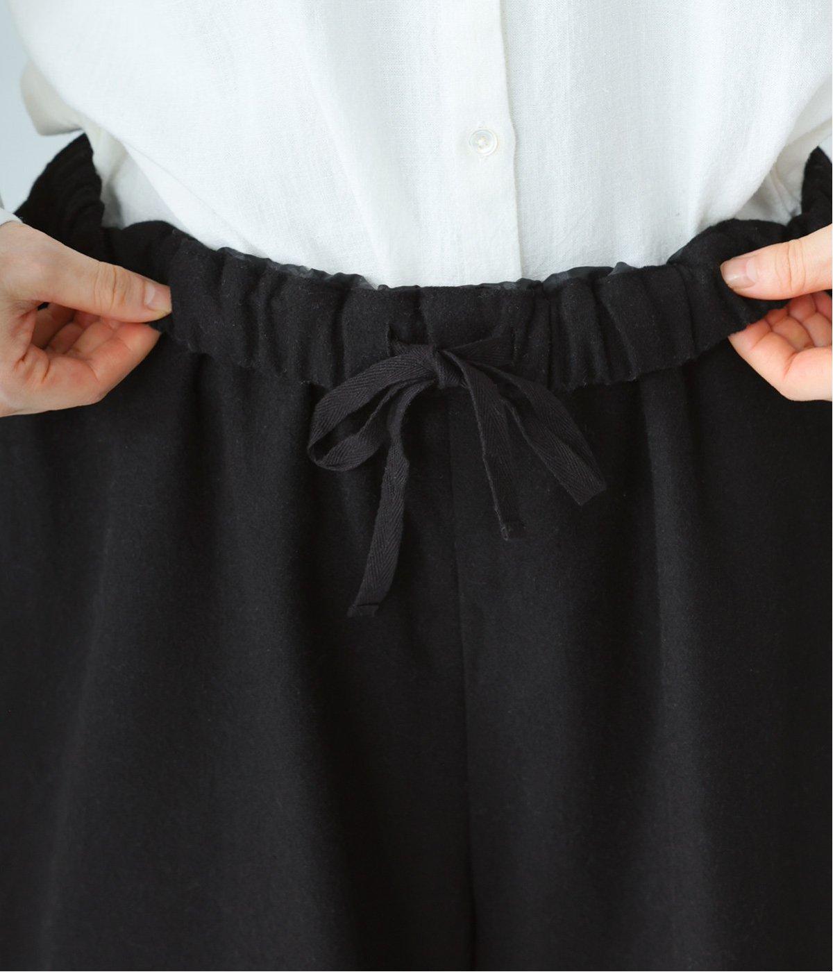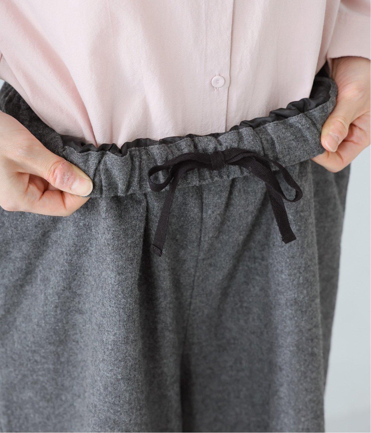 ほんのりと光沢を帯びたウール混素材が、コーディネートを上品に格上げ。裏地付きで脚にまとわりつきにくく、ストレスなく着られます。