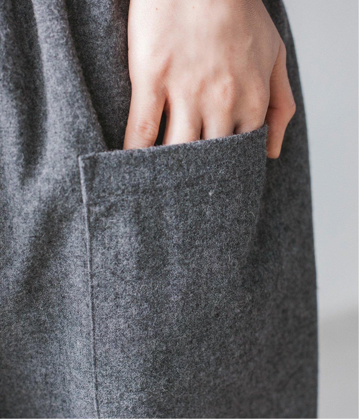 ダークグレーは普段のコーデに取り入れやすく、着まわし力も抜群。ミドル丈のアウターとも相性が良く、ワードローブに加えたい一本です。