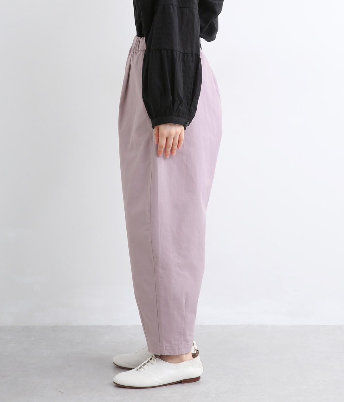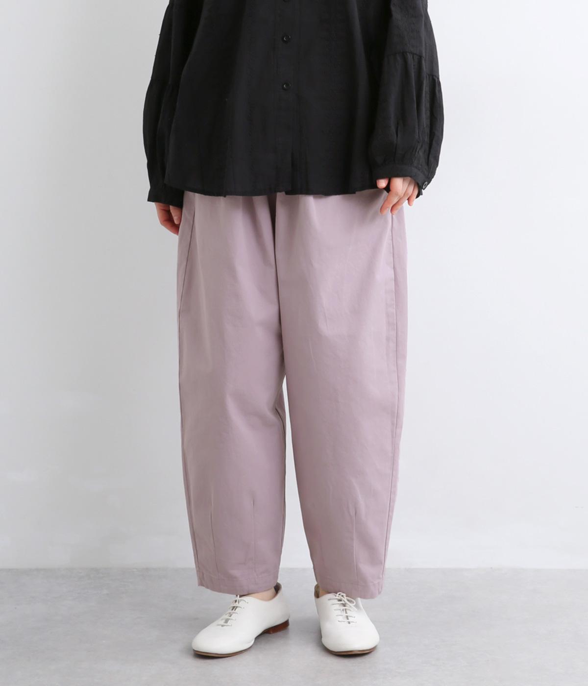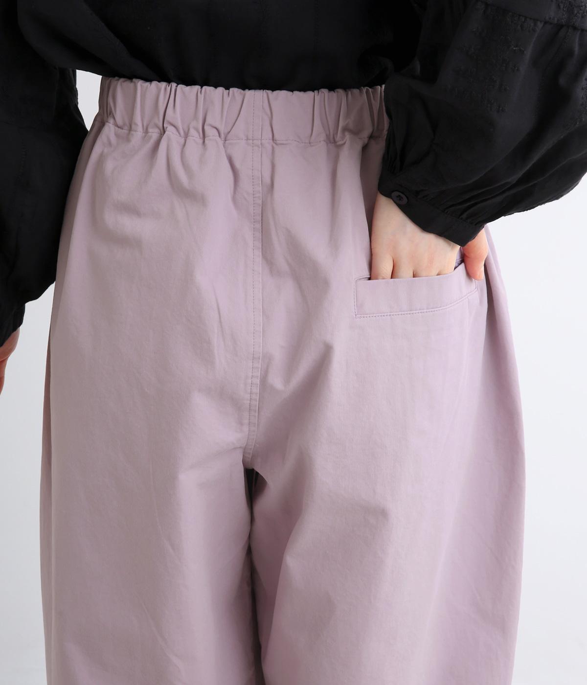 ウエストタックでふっくらと、裾ダーツで自然な立体感をつけたコクーンシルエットが特徴的。使い勝手のいい生地感でデイリースタイルになじみながらもしっかりと個性を発揮。ウエストはフィット感のいい総平ゴムに内紐入り。