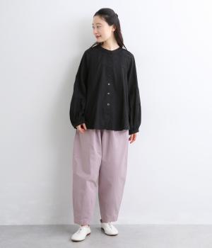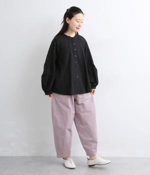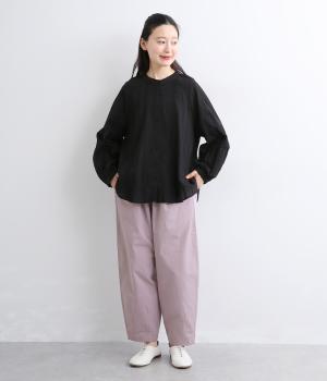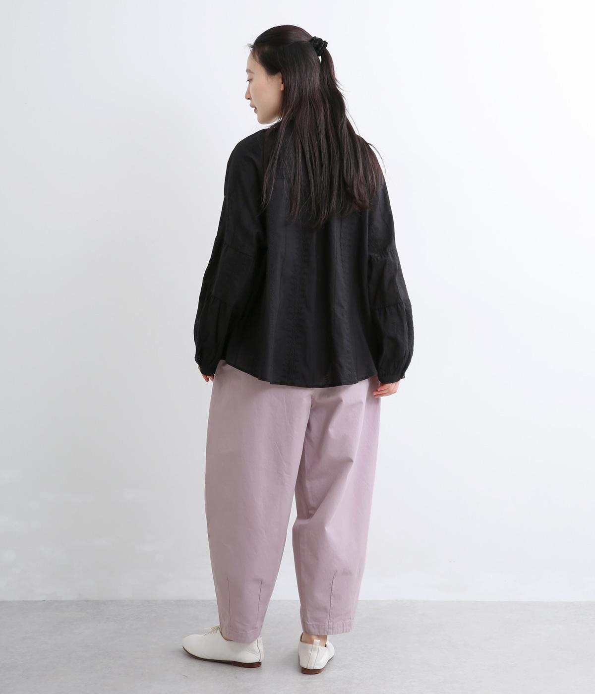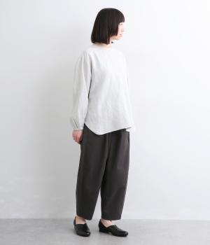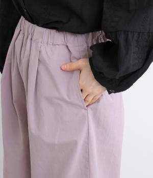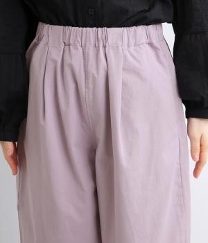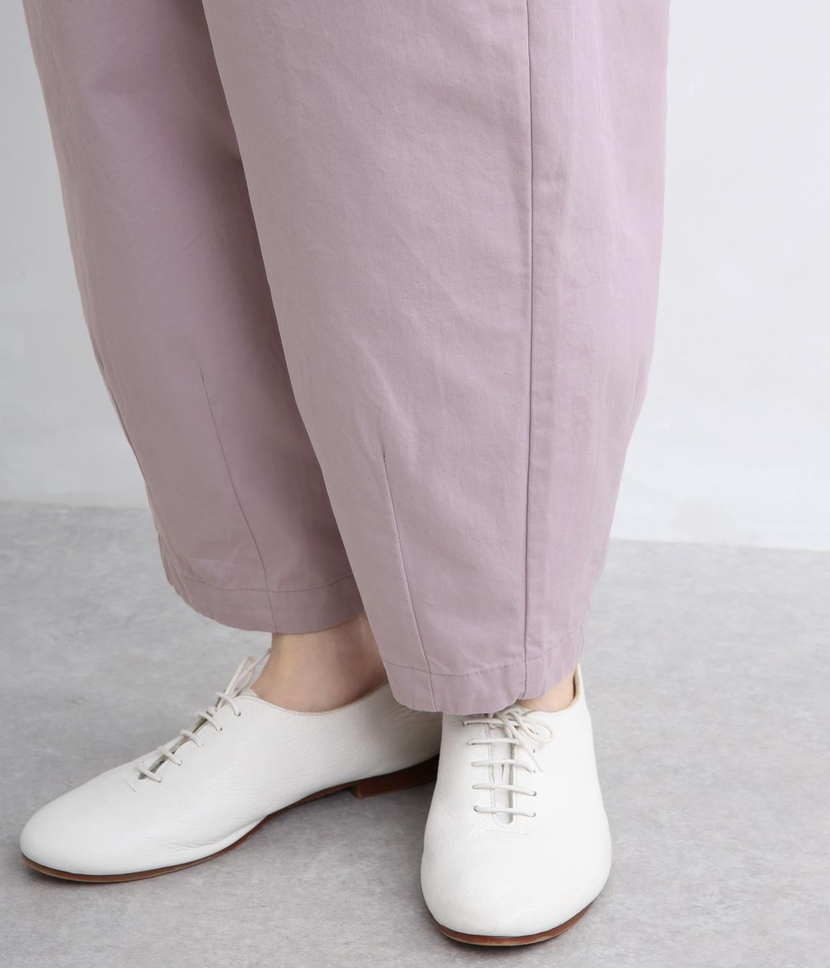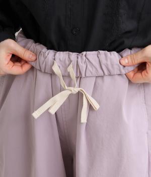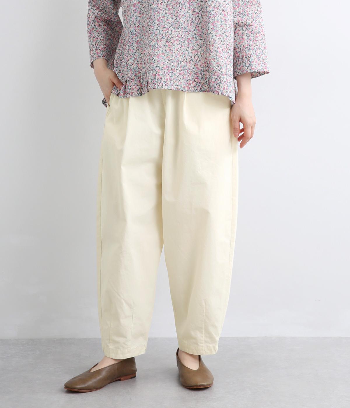 ウエストタックでふっくらと、裾ダーツで自然な立体感をつけたコクーンシルエットが特徴的。使い勝手のいい生地感でデイリースタイルになじみながらもしっかりと個性を発揮。ウエストはフィット感のいい総平ゴムに内紐入り。