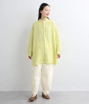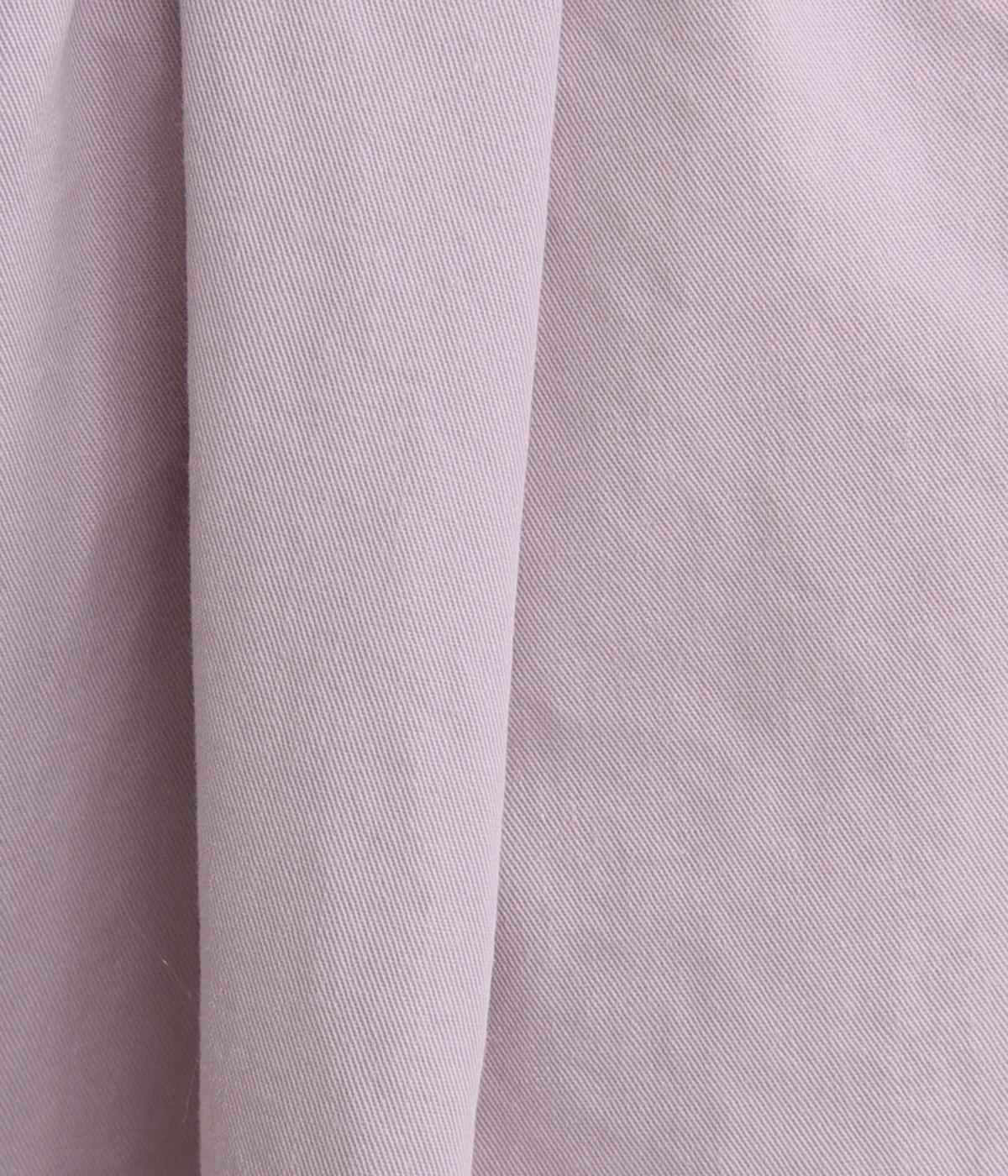 しなやかさのあるコットンツイルを使用しました。丈夫でシワも気になりにくく、デイリー使いに最適な中厚手生地。光沢をおさえたセミマットな表面感で幅広いスタイルになじみます。