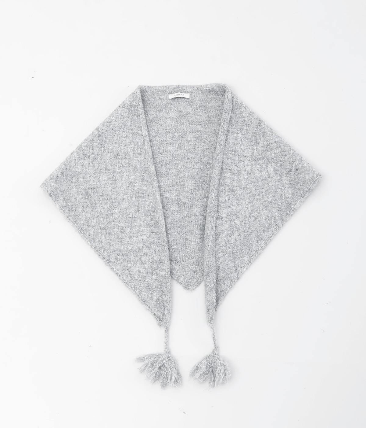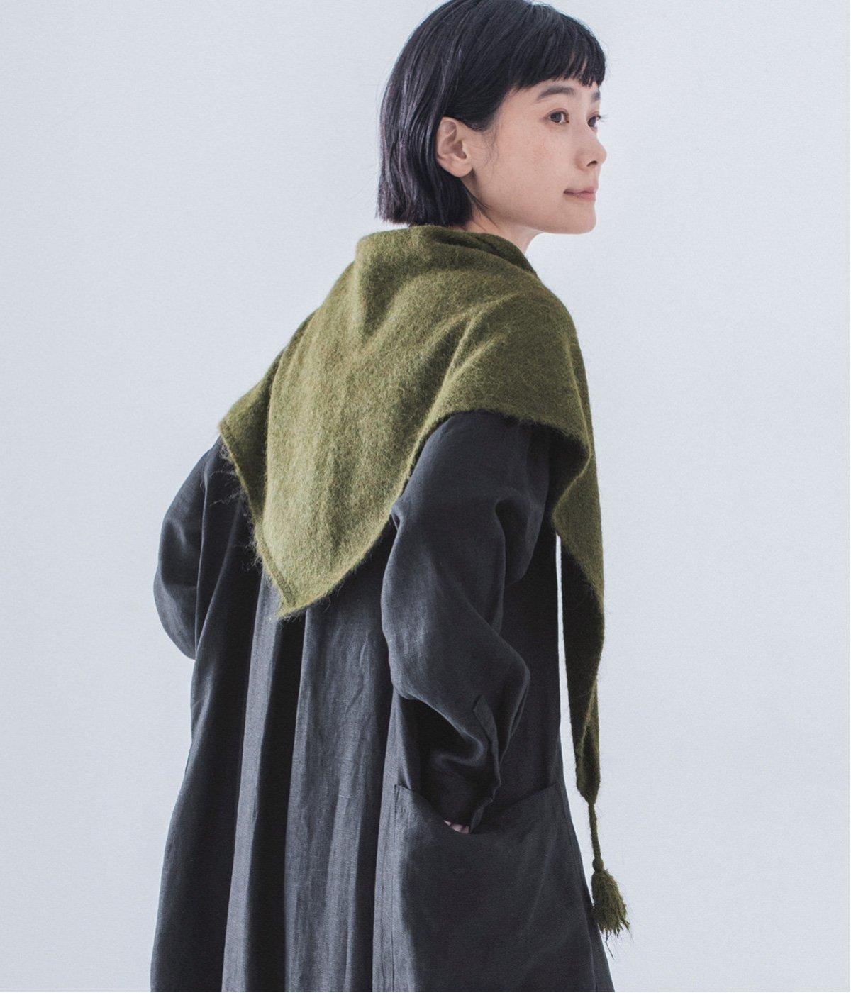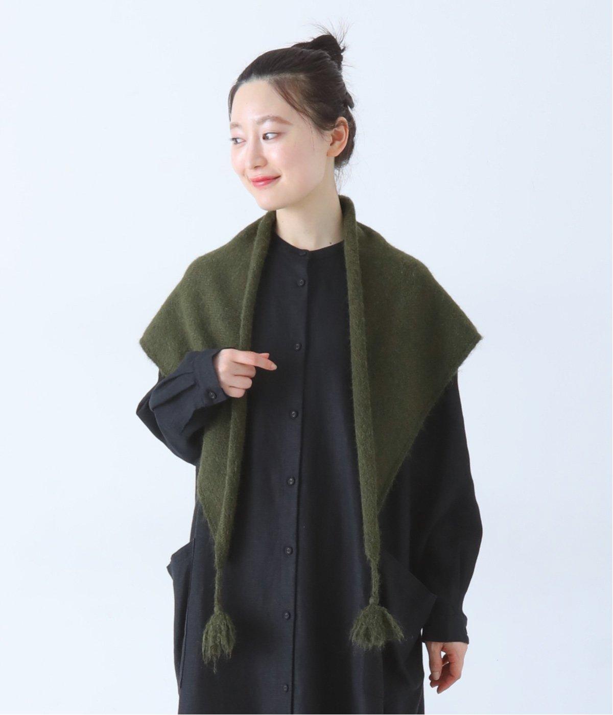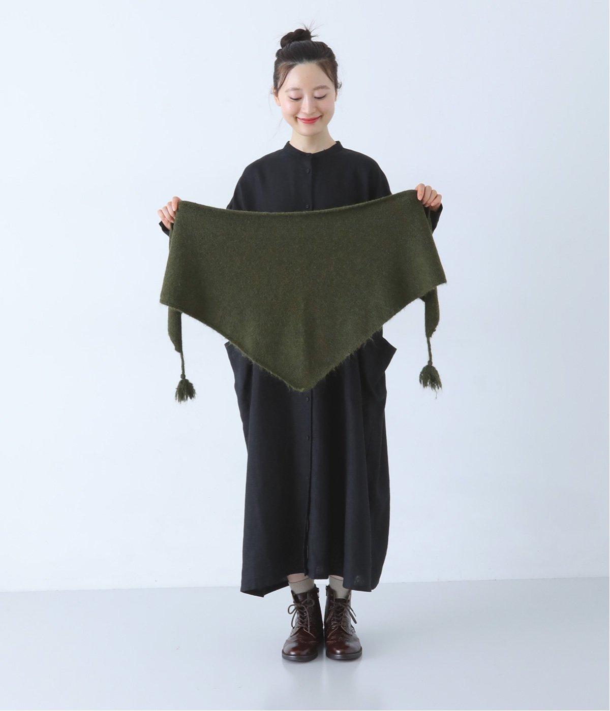 ボリュームが出すぎず扱いやすい三角形のストール。先にはフリンジをつけてカジュアルで愛らしい表情をプラスしました。何気ないトップスやワンピースの上から肩に掛けるだけでスタイルがサマ見え。首元できゅっとひと結びしてもおしゃれです。