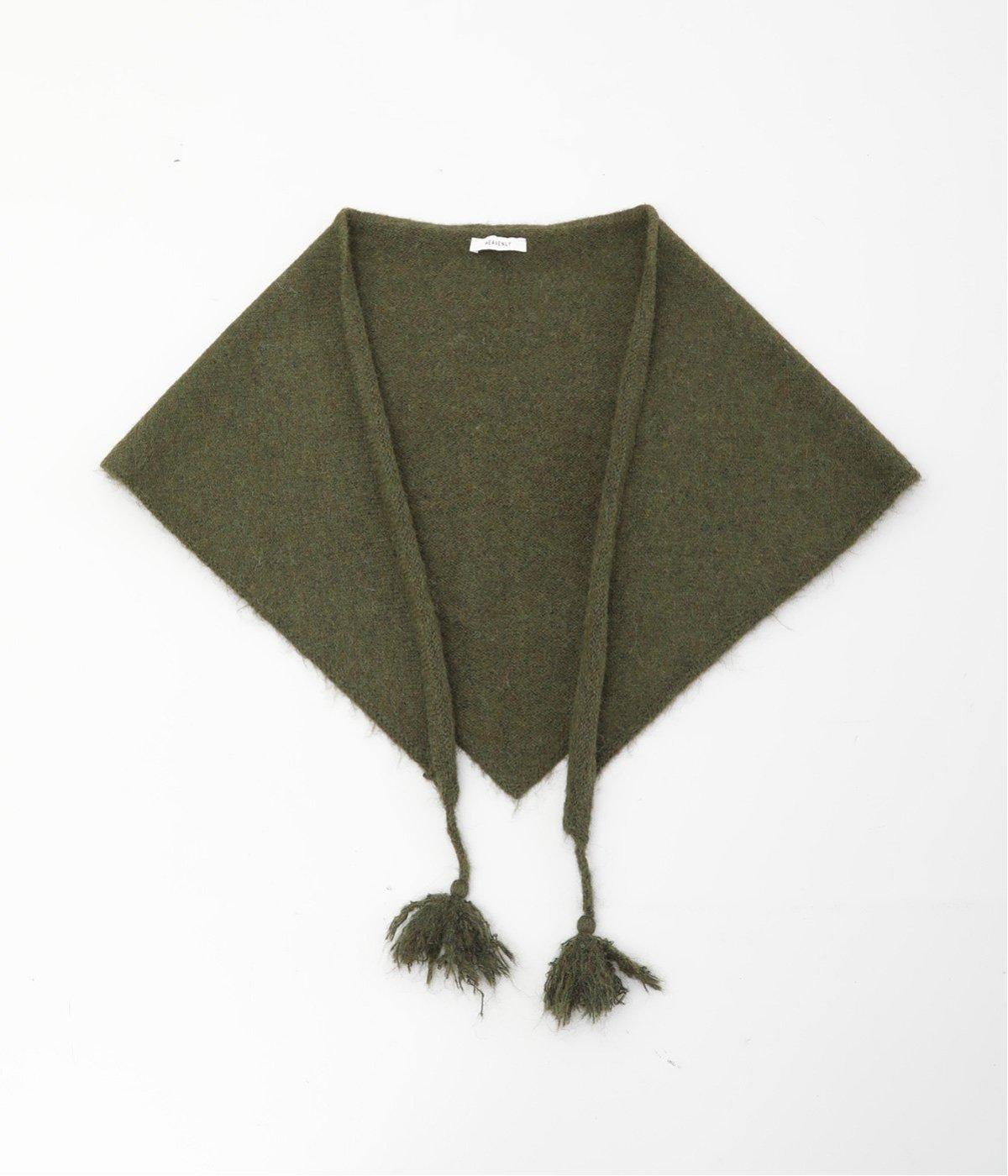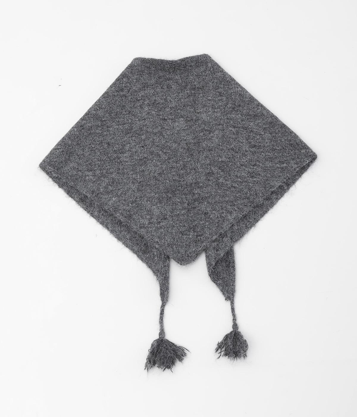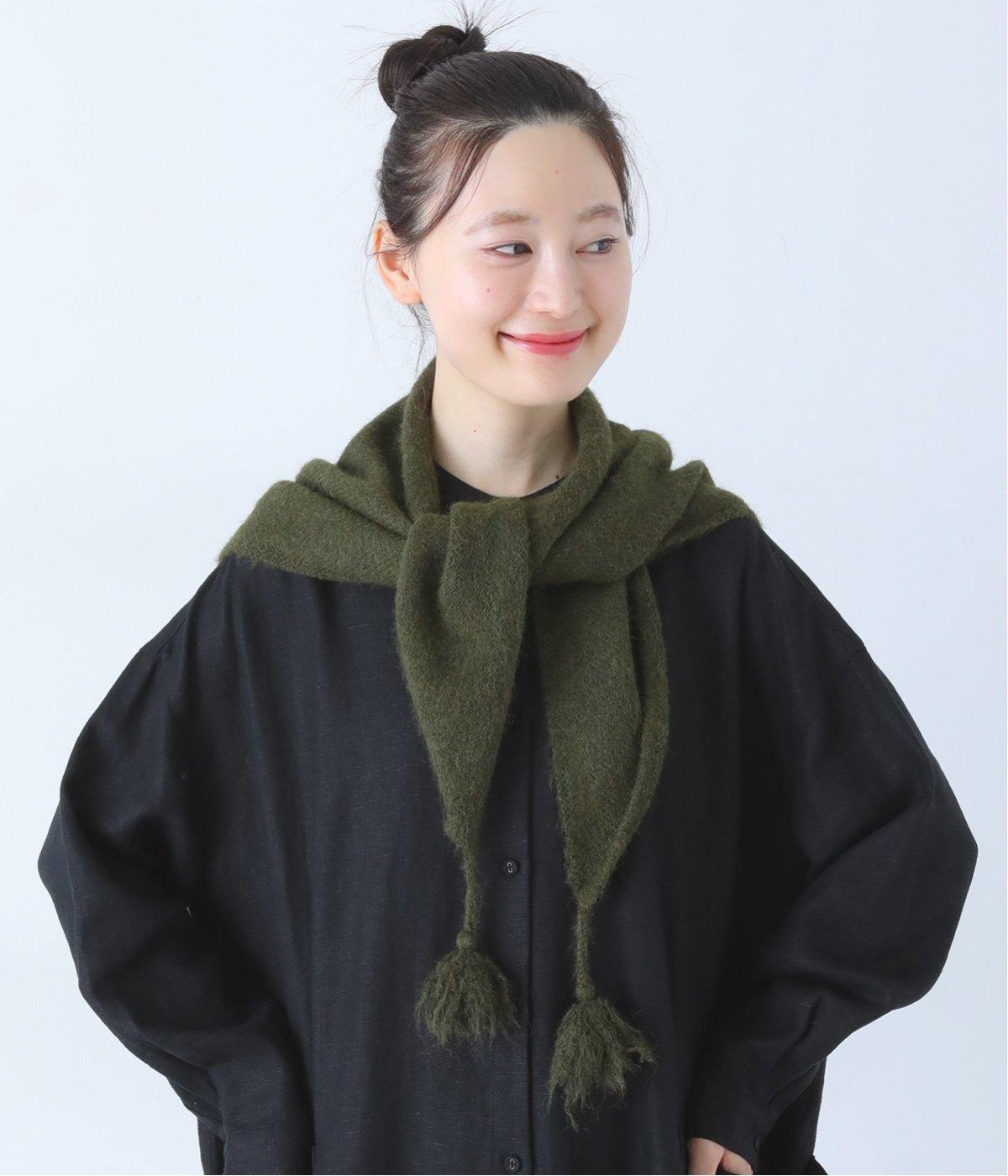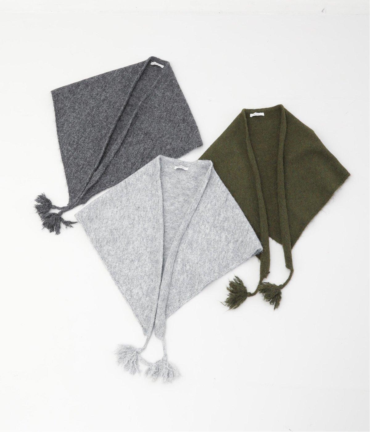 ボリュームが出すぎず扱いやすい三角形のストール。先にはフリンジをつけてカジュアルで愛らしい表情をプラスしました。何気ないトップスやワンピースの上から肩に掛けるだけでスタイルがサマ見え。首元できゅっとひと結びしてもおしゃれです。