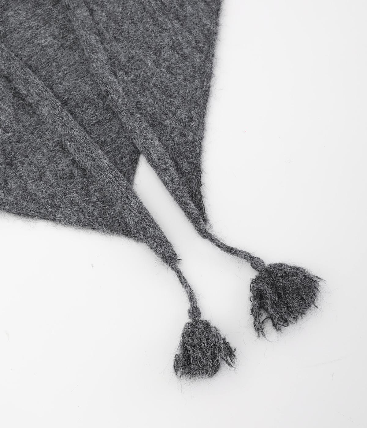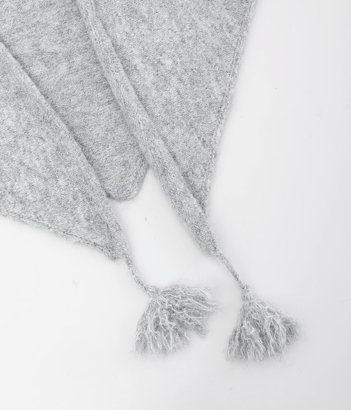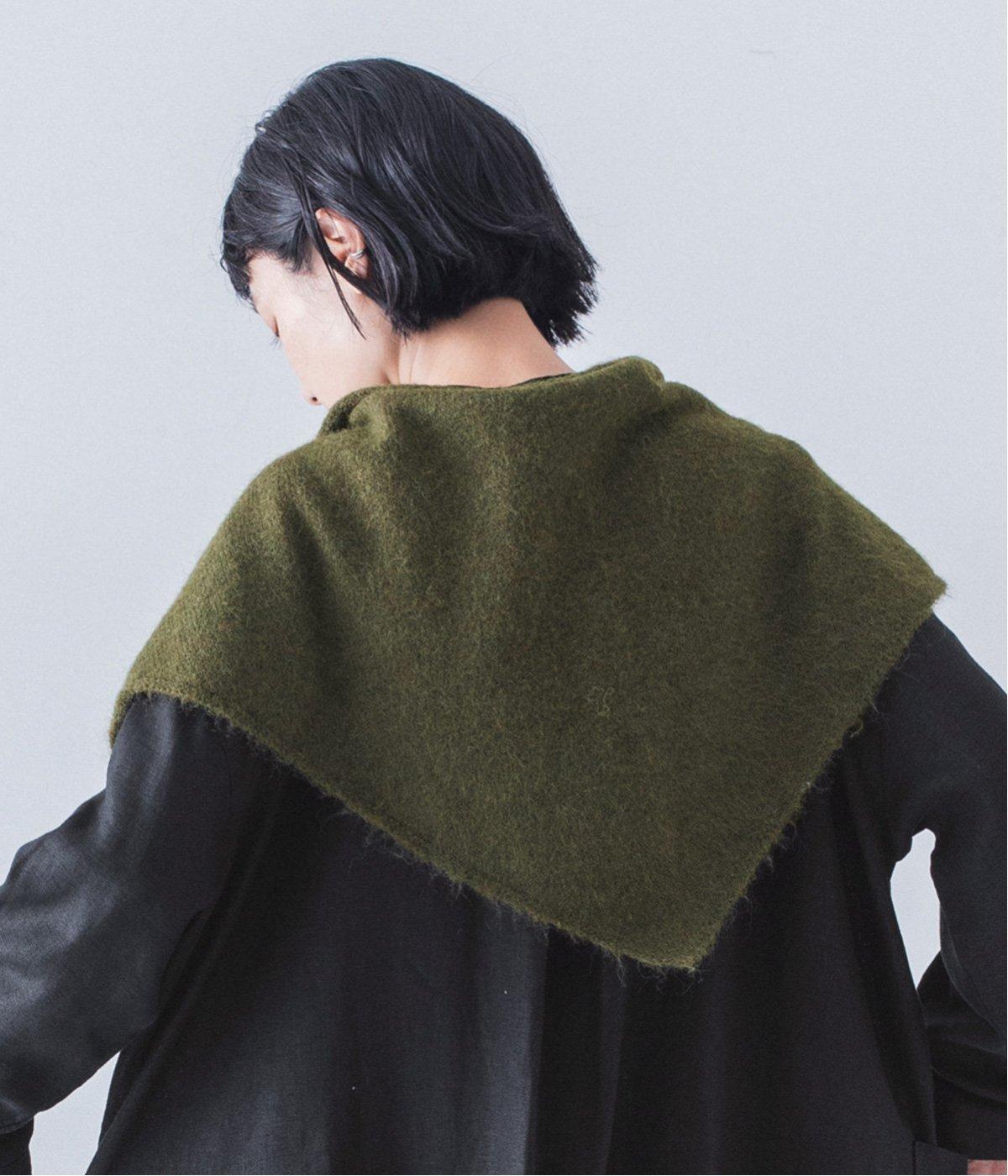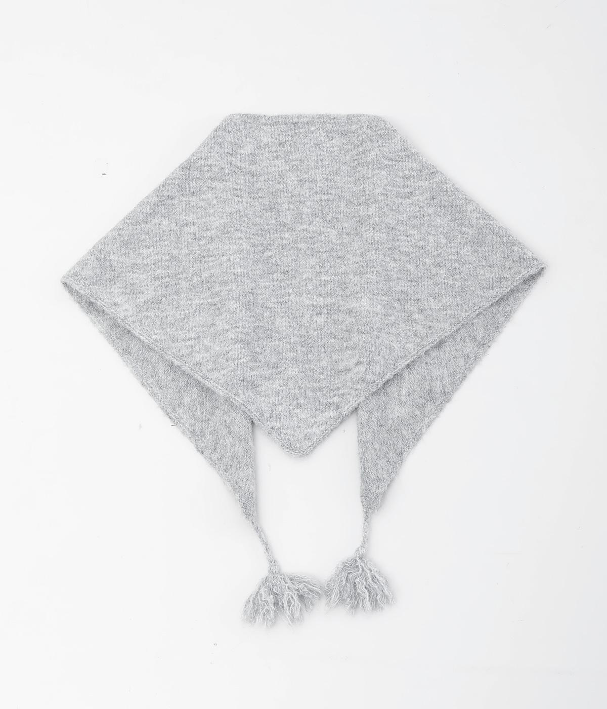 ボリュームが出すぎず扱いやすい三角形のストール。先にはフリンジをつけてカジュアルで愛らしい表情をプラスしました。何気ないトップスやワンピースの上から肩に掛けるだけでスタイルがサマ見え。首元できゅっとひと結びしてもおしゃれです。