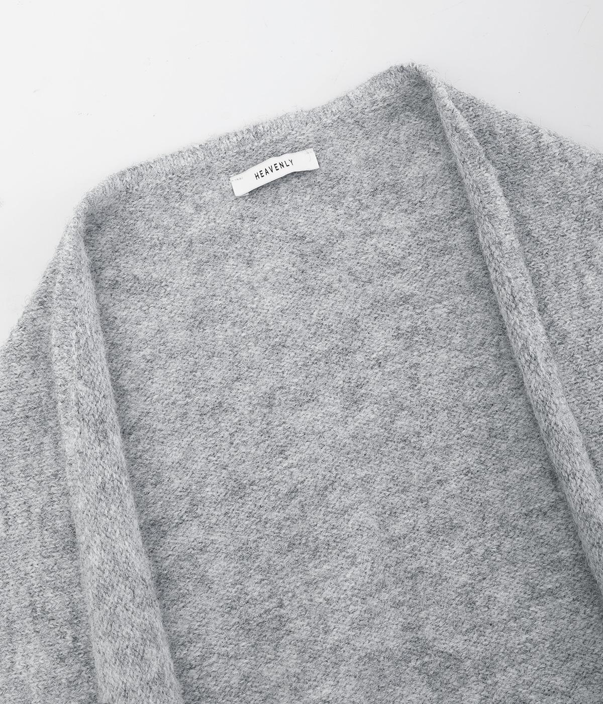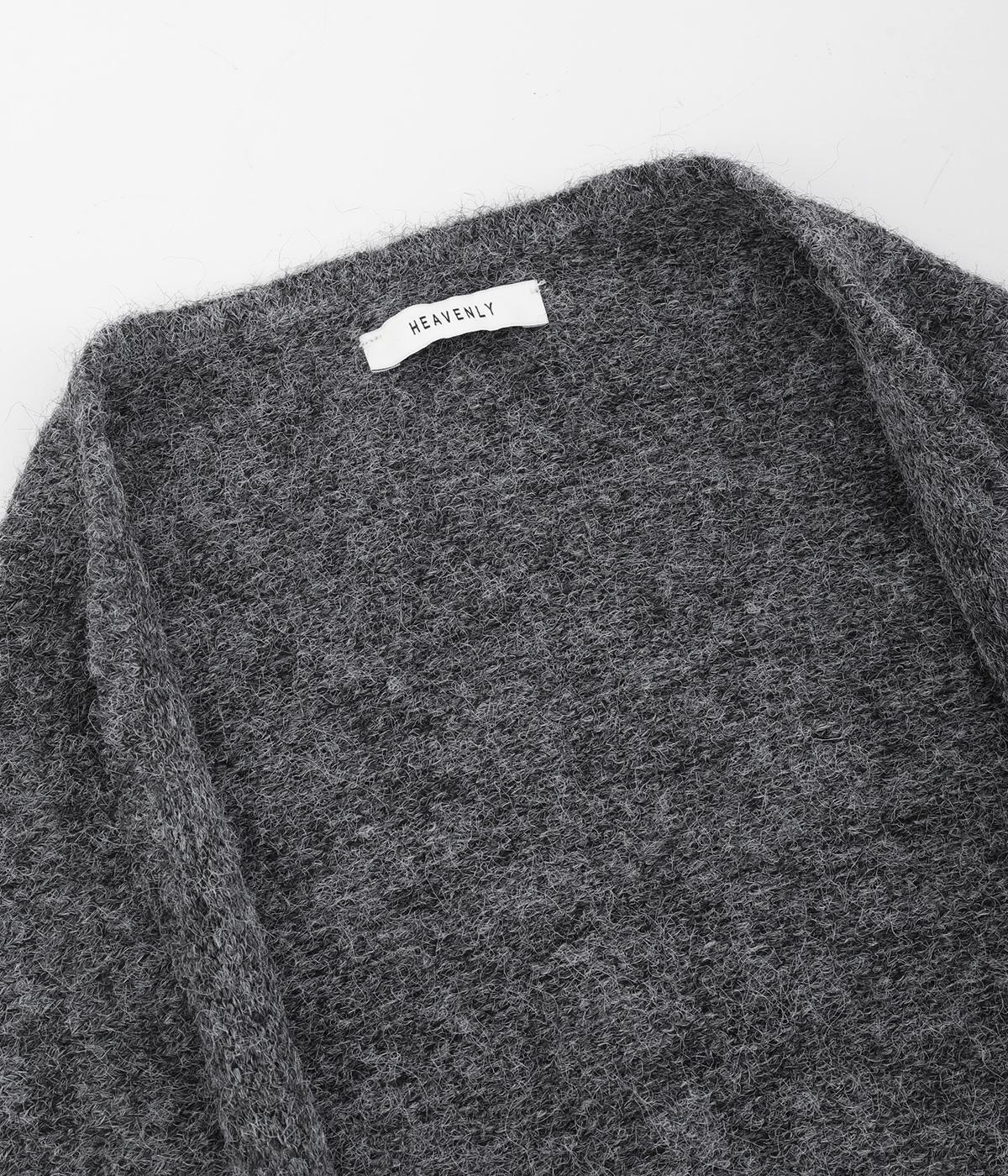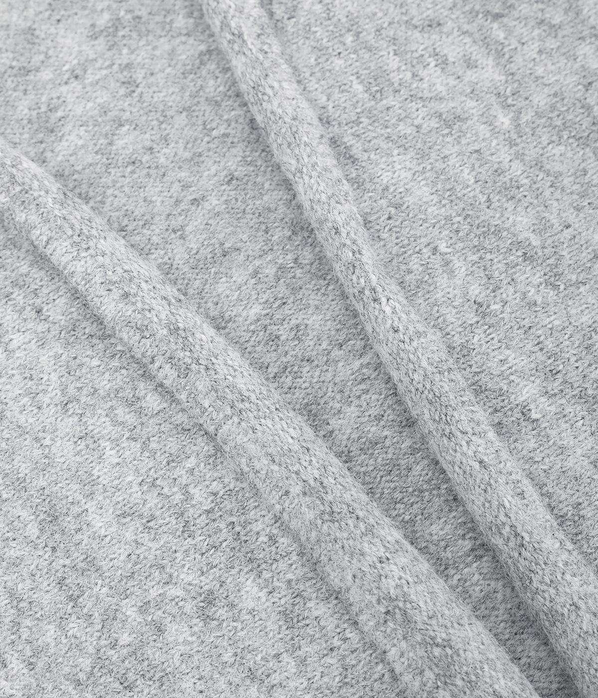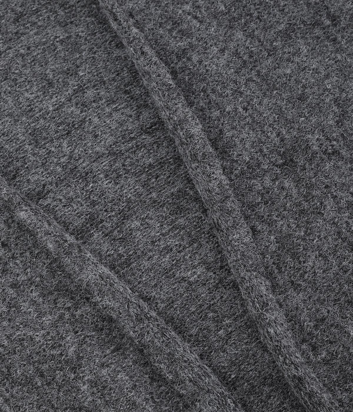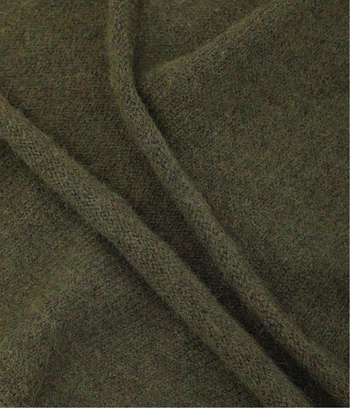 ふっくらとしたあたたかみのある起毛感が特徴のウール混ニット生地。適度な厚みがありながらもやわらかく、肩や首にここちよくなじみます。