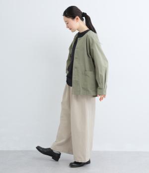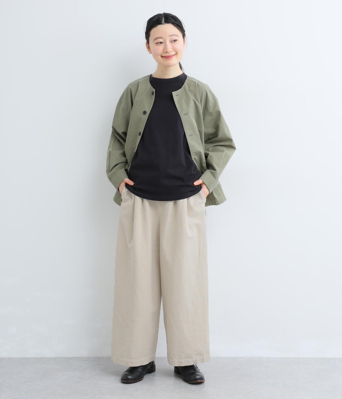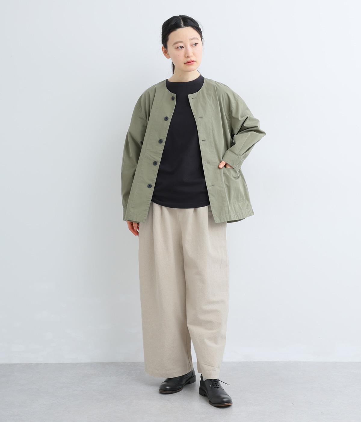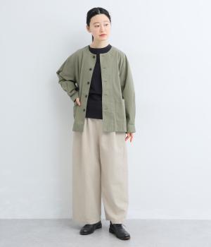 さらりとした質感が心地いいコットンリネン生地です。自然なシワ感の優しい風合いが魅力です。ほどよい厚みで、ハリがありながらもやわらかな肌ざわりの素材感です。