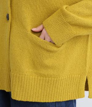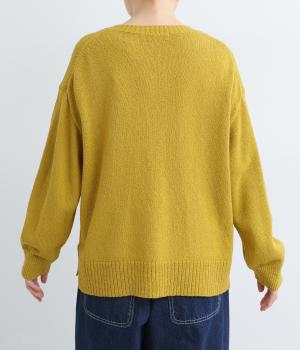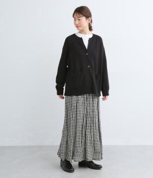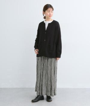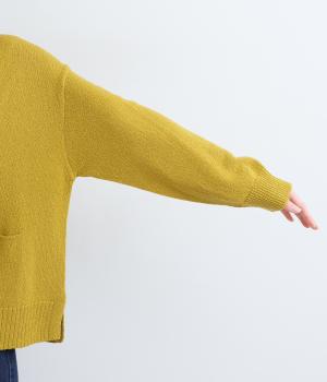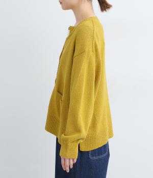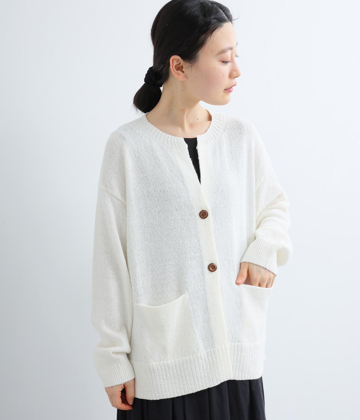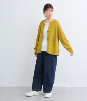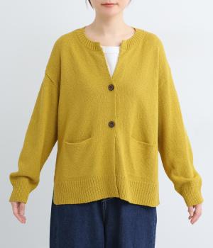サッと羽織るだけでこなれたレイヤードスタイルが完成する2ボタンのカーディガンです。フロントのウッドボタンがさりげないアクセントに。すっきりと開きのある首元やサイドスリットが抜け感を添えます。