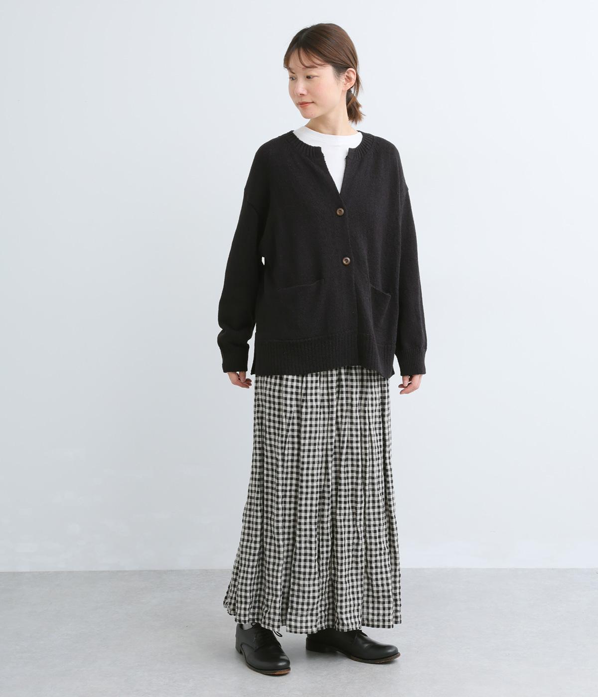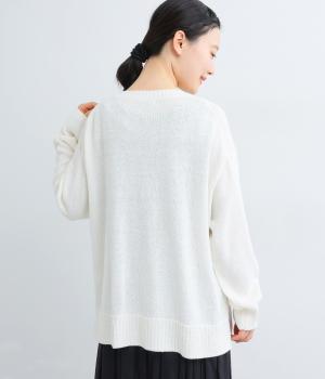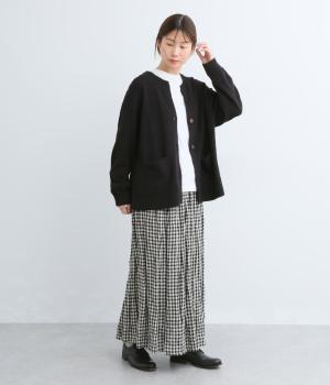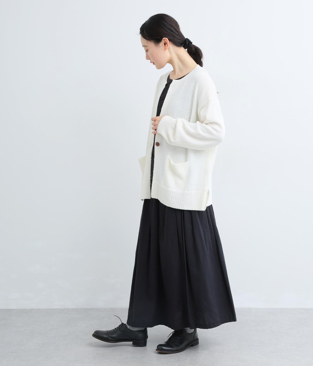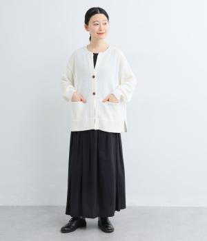 シャリッとした手ざわりでやわらかな着心地のニット生地です。さらりと軽やかで伸縮性があり、ふんわりと体にフィットする素材感です。